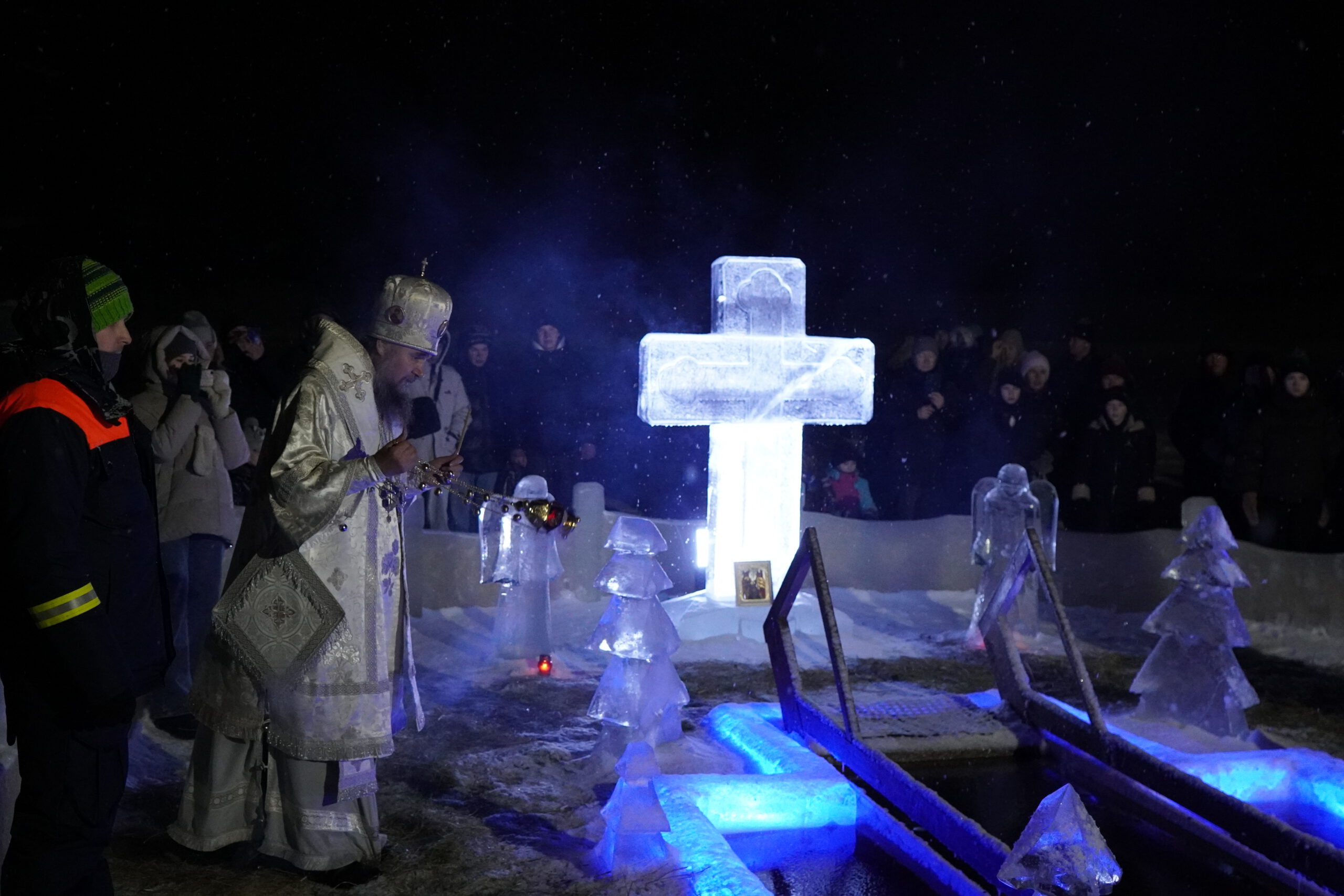 В Великом Устюге уже традиционно Великое Освящение воды происходит на прудах на Вотчине Деда Мороза. Организовать купель и оборудовать место помогает