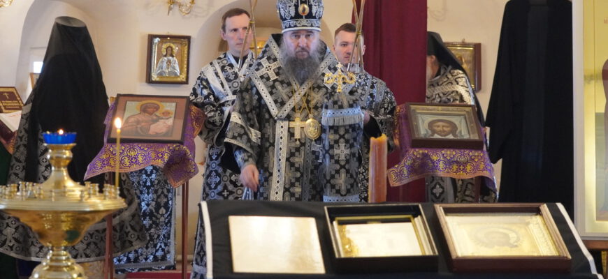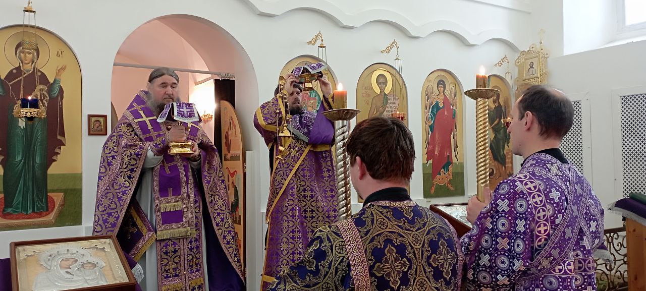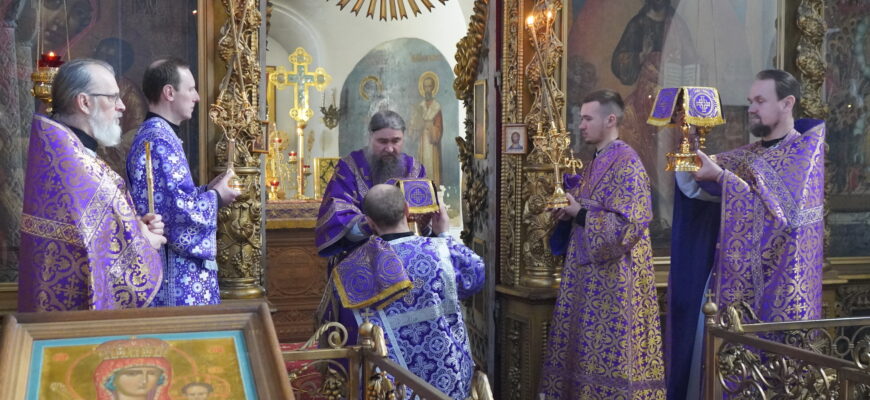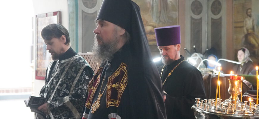 27 февраля епископ Великоустюжский и Тотемский Фотий совершил Литургию преждеосвященных Даров в Михайло-Архангельском монастыре Великого Устюга Владыке