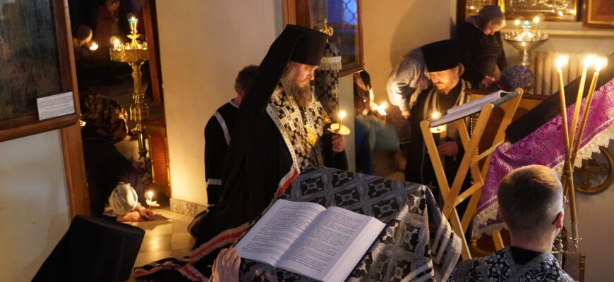 26 февраля епископ Великоустюжский и Тотемский Фотий молился за Великим Повечерием и возглавил чтение Покаянного канона преподобного Андрея Критского в