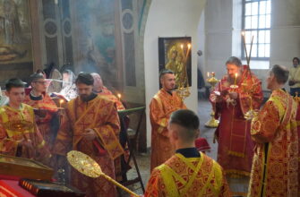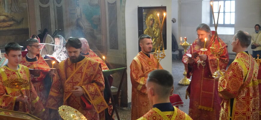 8 апреля в день Великой Среды епископ Великоустюжский и Тотемский совершил Литургию Преждеосвященных Даров в Кафедральном соборе святого праведного Прокопия Устюжского.