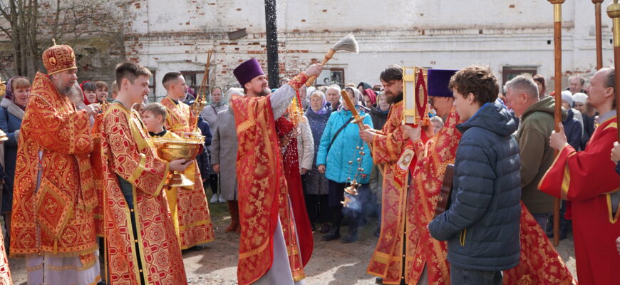 5 апреля в день Входа Господня в Иерусалим епископ Великоустюжский и Тотемский Фотий совершил Божественную Литургию в Спасо-Суморином монастыре в Тотьме.