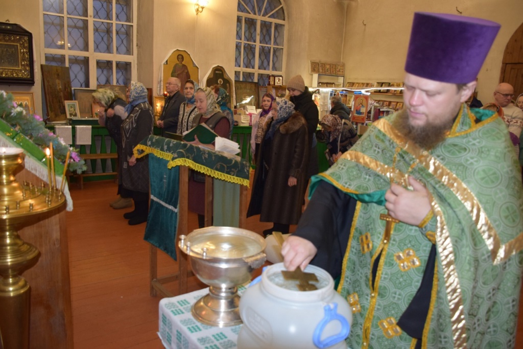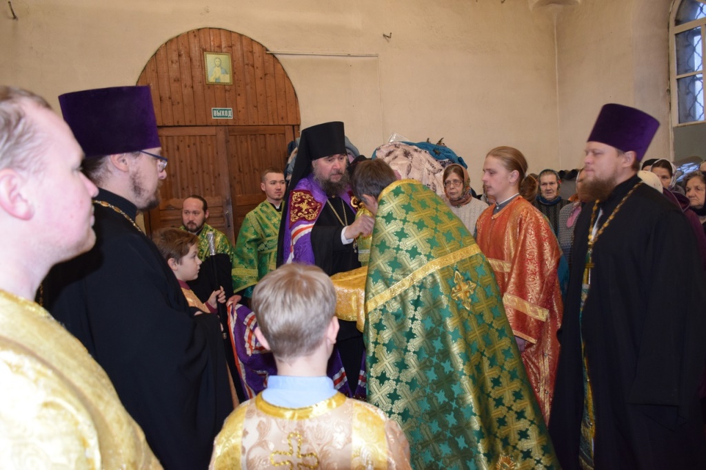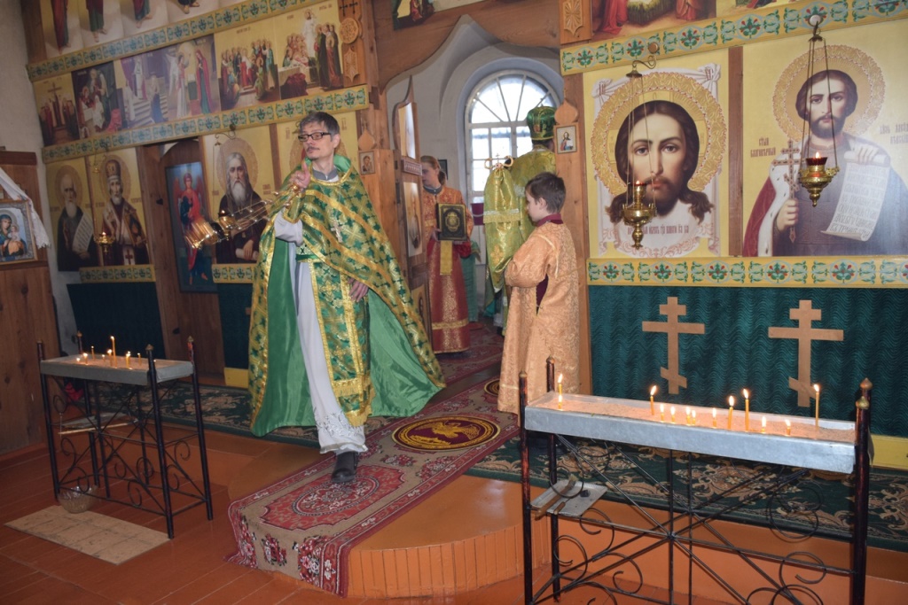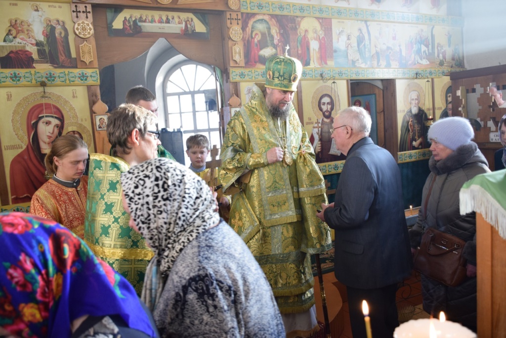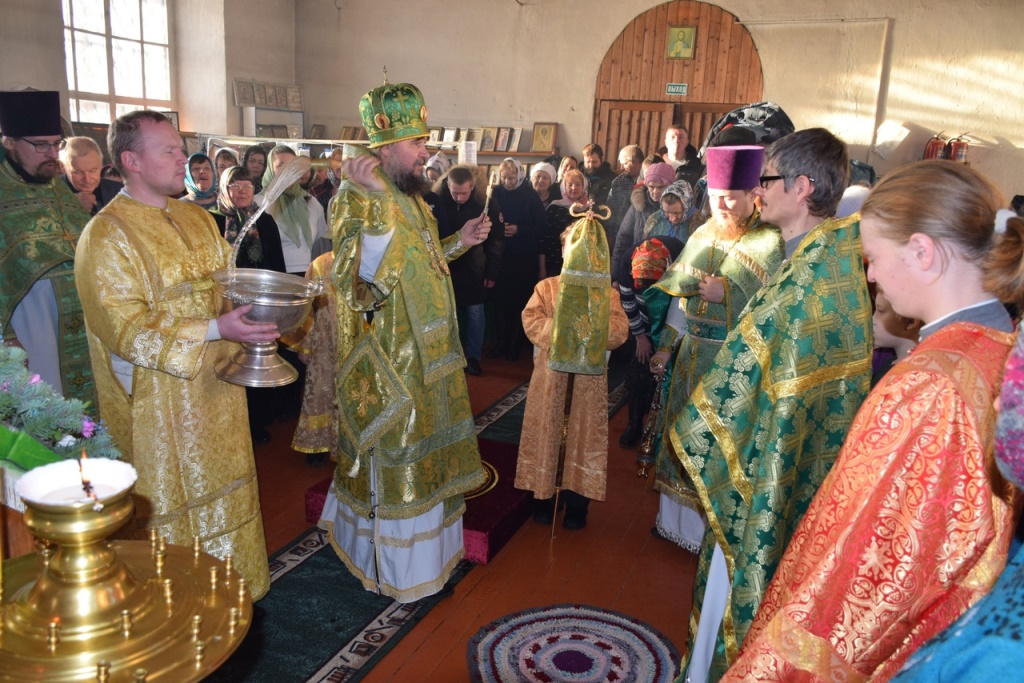 После завершения Литургии епископ Фотий и духовенство совершили молебен. Его Преосвященство окропил храм и прихожан святой водой.
