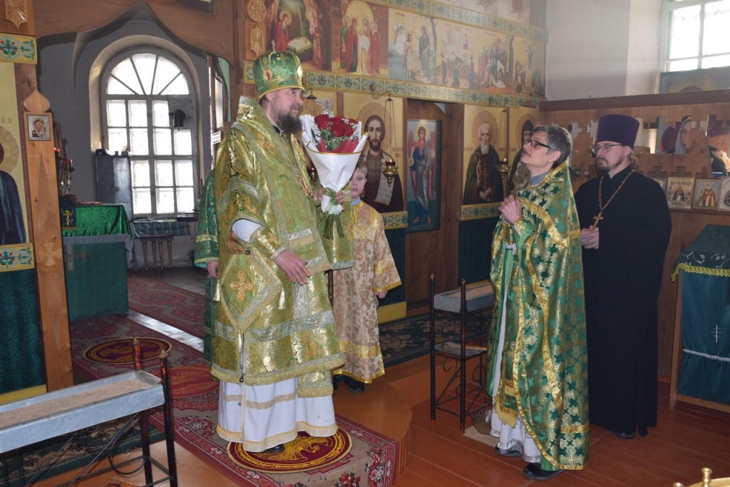 Епископ Фотий обратился со словами архипастырской проповеди к присутствовавшим на богослужении верующим. Наградил подарками и поздравил с Престольным праздником.