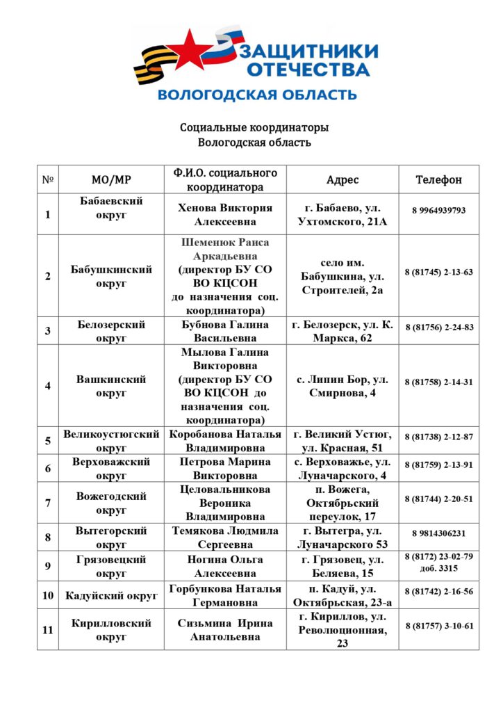 Главная » Новости Информация по социальным координаторам в рамках сотрудничества между Вологодской митрополией и Государственным фондом поддержки участников специальной военной операции «Защитники Отечества». Новости На чтение мин Просмотров 4 Опубликовано 28.12.2023