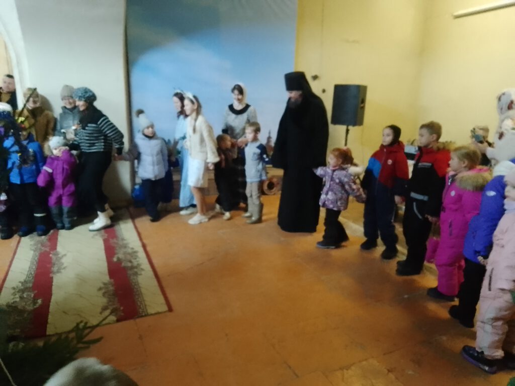 На улице мороз, а в храме Благовещения уютно и празднично. Детей ждали игры, хороводы у высокой нарядной елки.