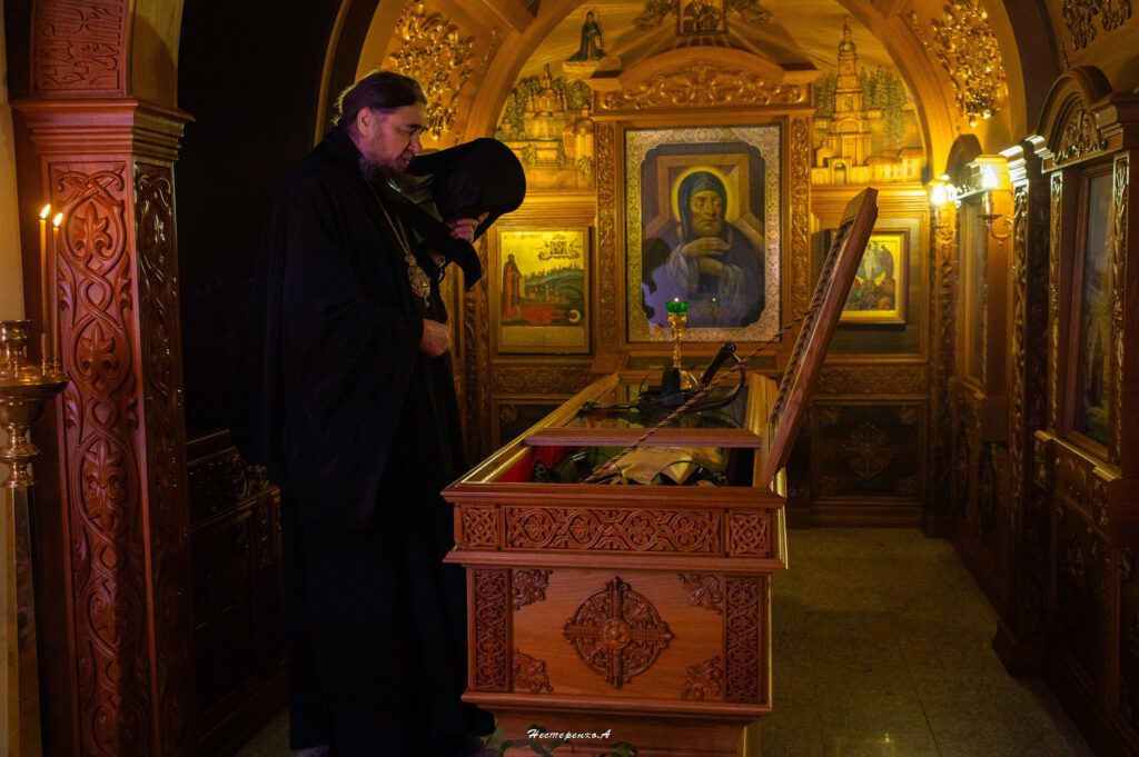 8 января в храме Киево-Печерских чудотворцев собора Вознесения Господня Спасо-Суморина монастыря состоялось вечернее богослужение епископа Великоустюжского и Тотемского Фотия. Оно началось со встречи архиерея. После поднесения Креста иеромонахом Феодосием владыка Фотий направился к раке с мощами преподобного Феодосия Тотемского, чтобы поклониться основателю монастыря. В зимнее время рака находится по левую сторону от алтаря в особо устроенной сени.