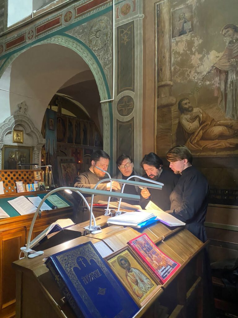 Песнопения исполнили певчие г. Вологды под управлением протодьякона Георгия Хоботова.