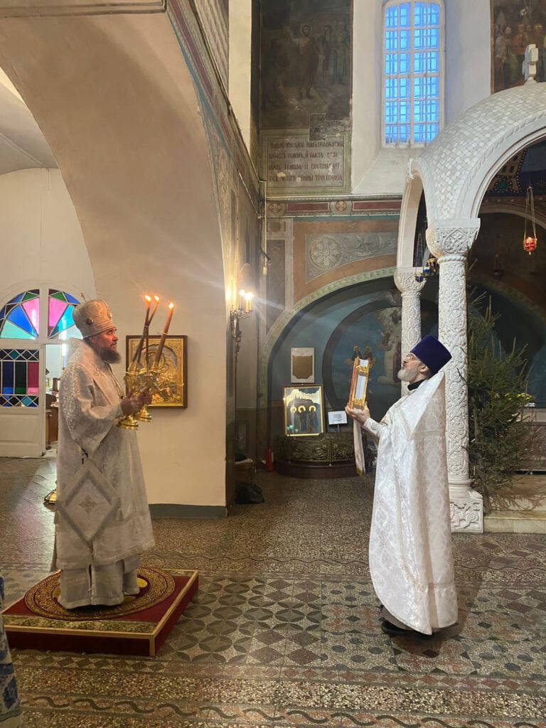 Его Преосвященству сослужил настоятель храма преподобномученика Симона Воломского иерей Димитрий Живаев.