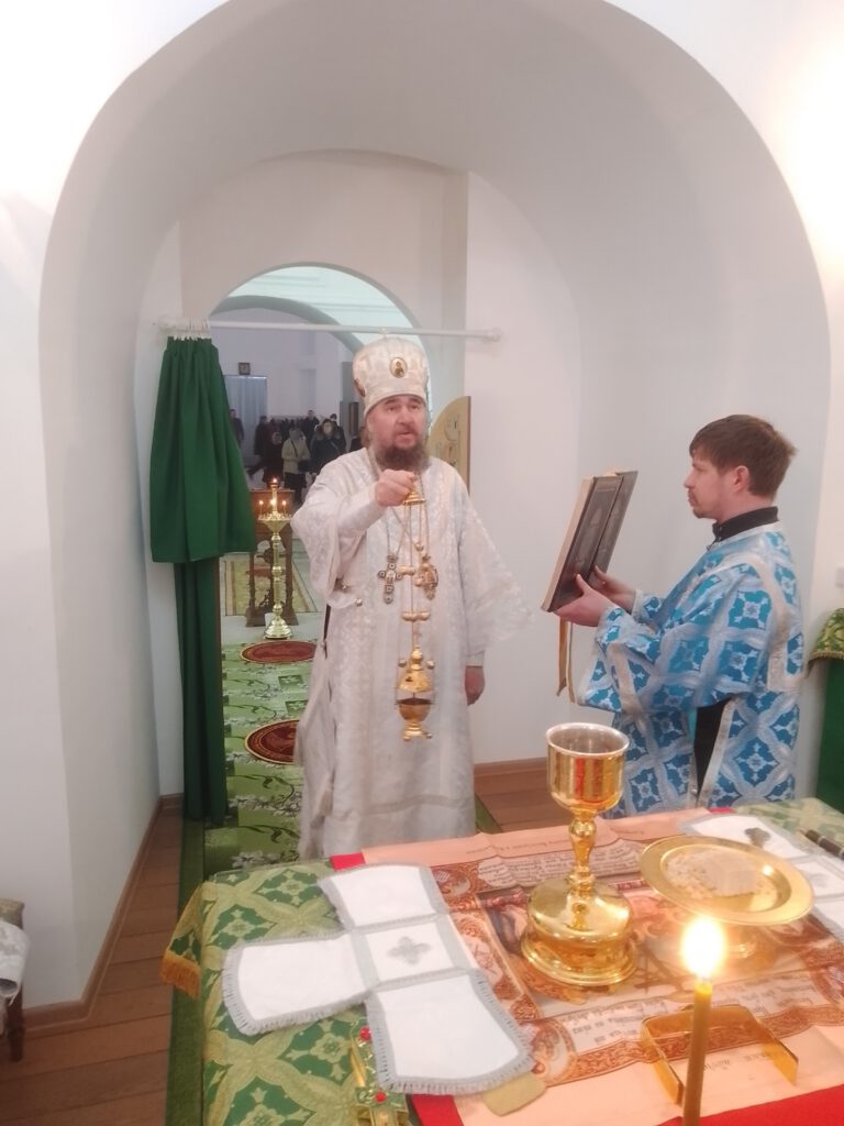 Владыке сослужил настоятель храма преподобномученика Симона Воломского иерей Димитрий Живаев.