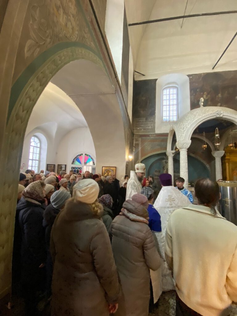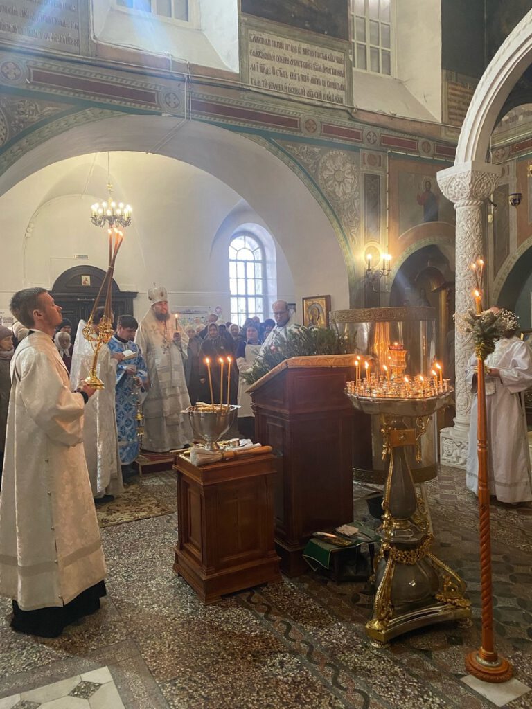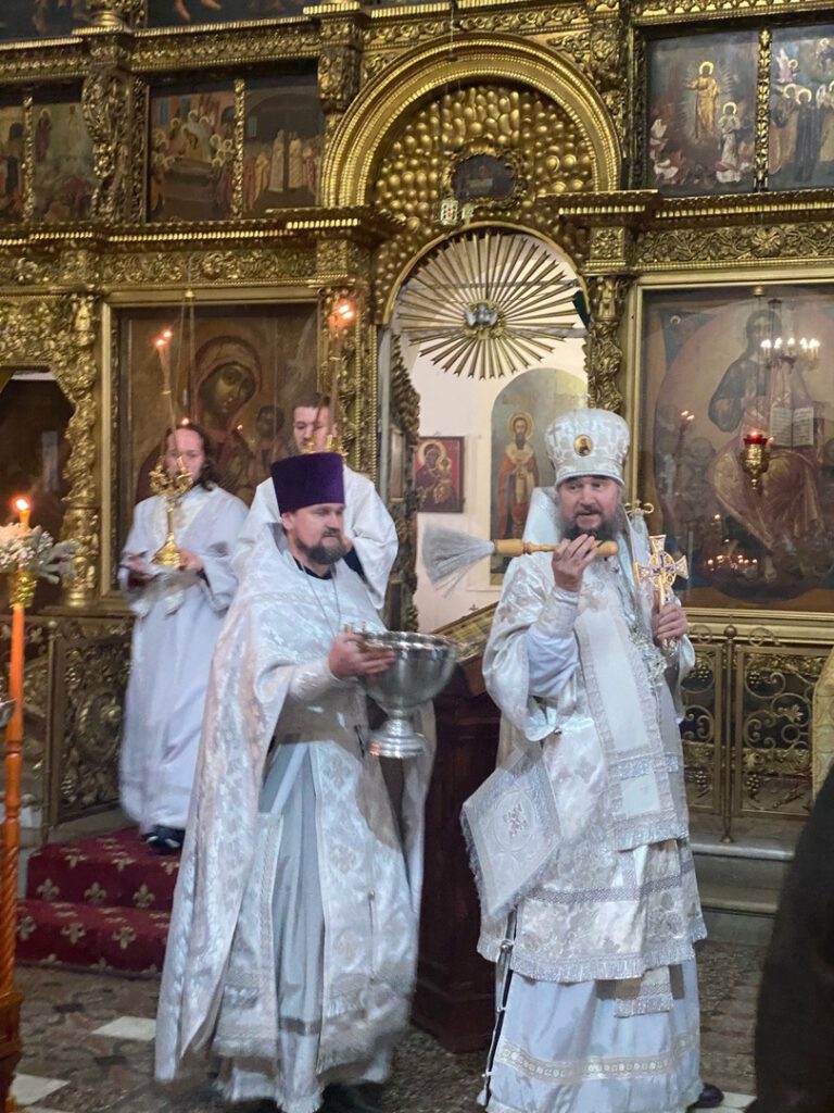 Его Преосвященству сослужили: иерей Вячеслав Бураков и иерей Андрей Игнатьев.