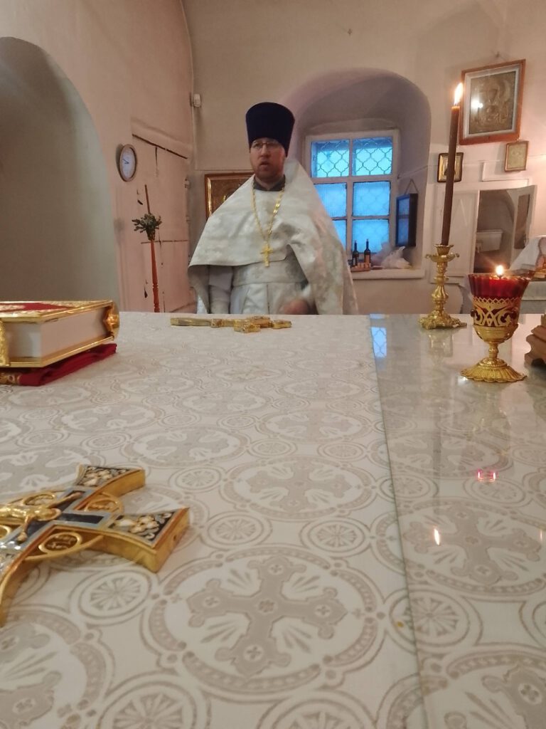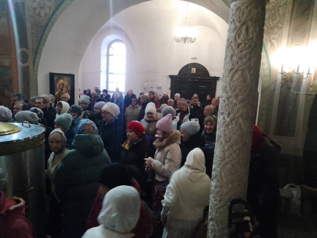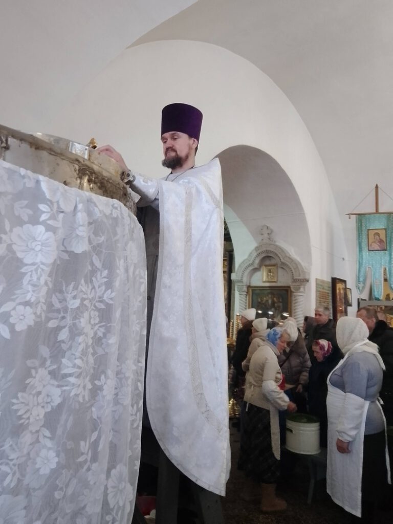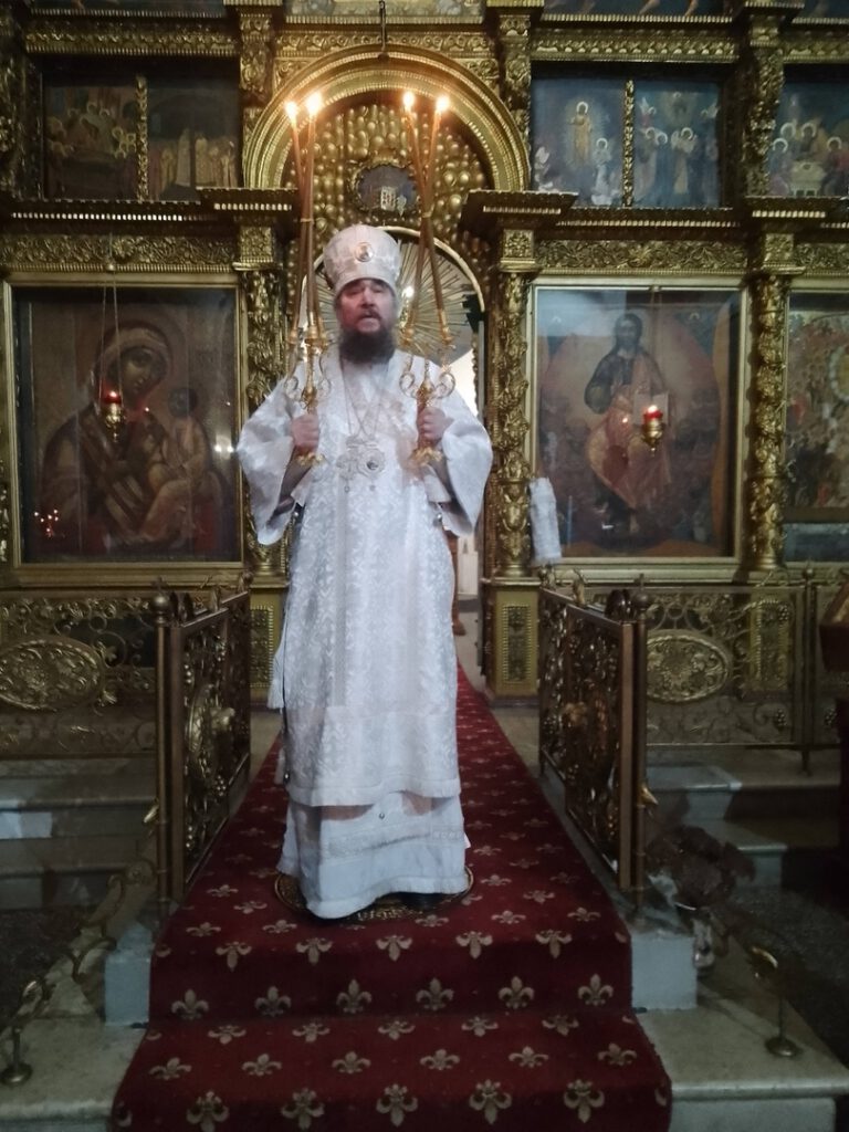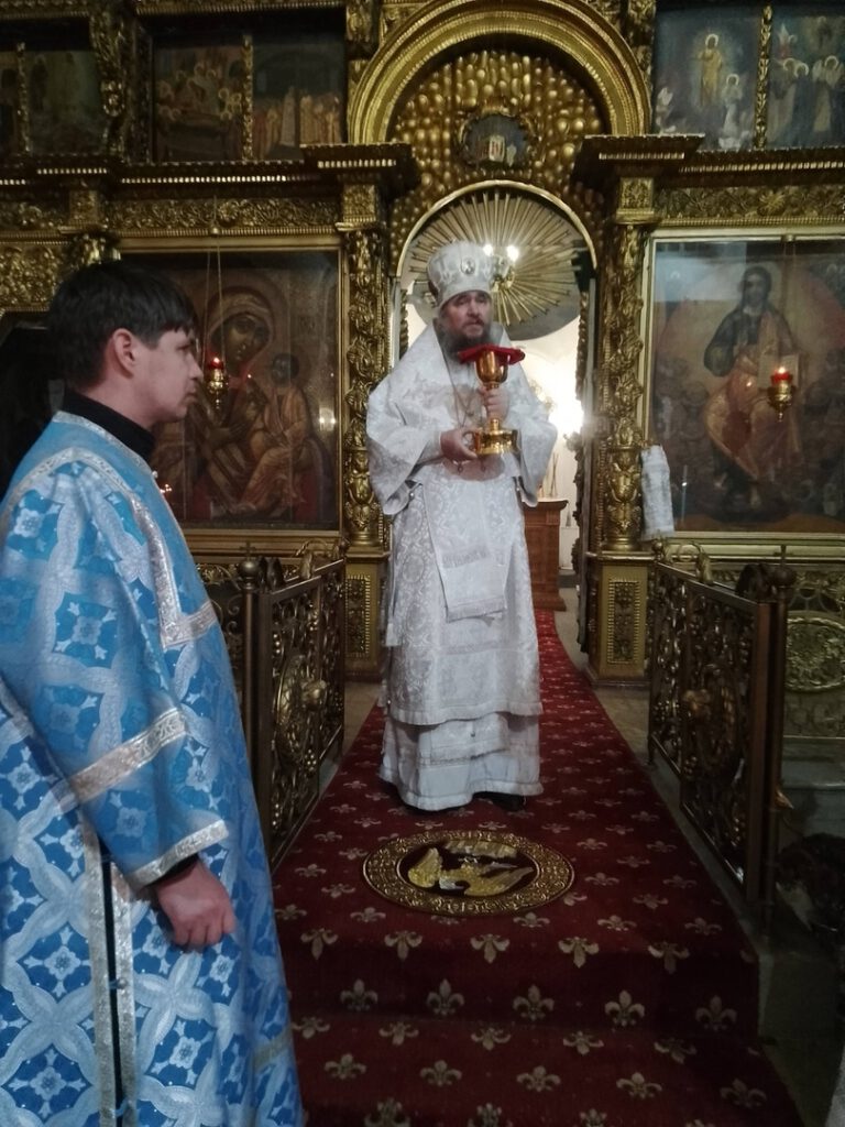 Его Преосвященству сослужили: иерей Вячеслав Бураков и иерей Андрей Игнатьев.