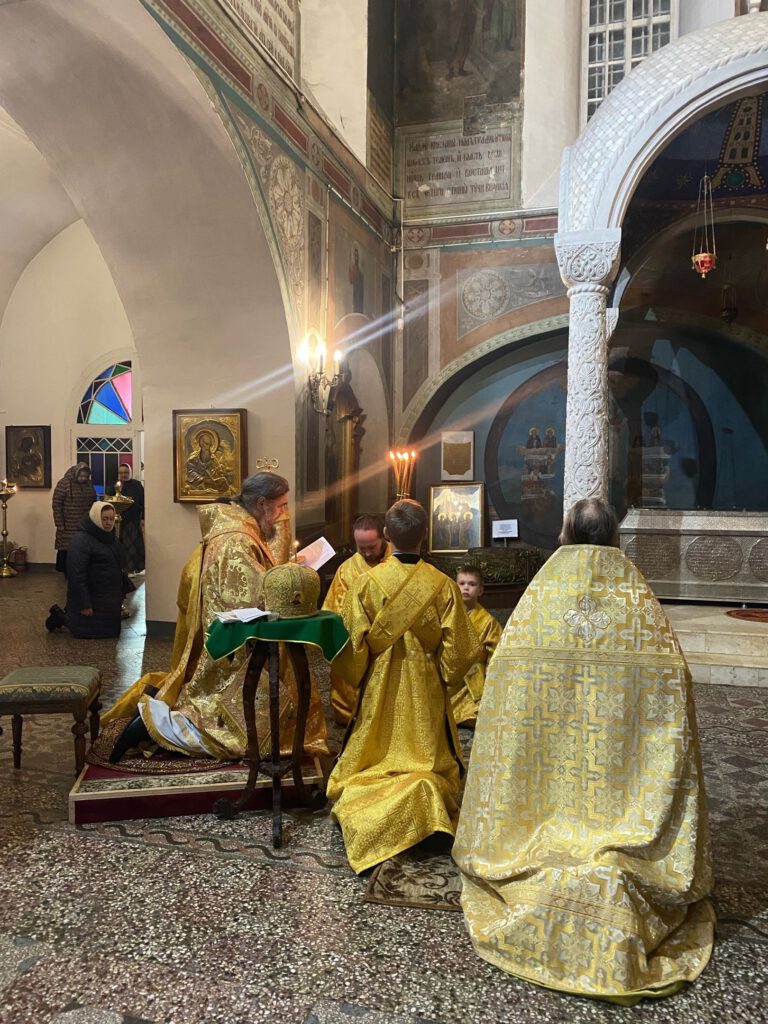 По завершении чтения акафиста епископ Фотий, духовенство и верующие коленопреклоненно вознесли молитву небесному покровителю Великого Устюга — святому праведному Прокопию.