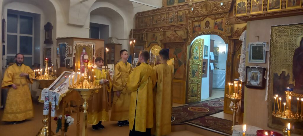 Его Преосвященству сослужили настоятель храма иер. Иоанн Алешин и священник Александр Андреев.