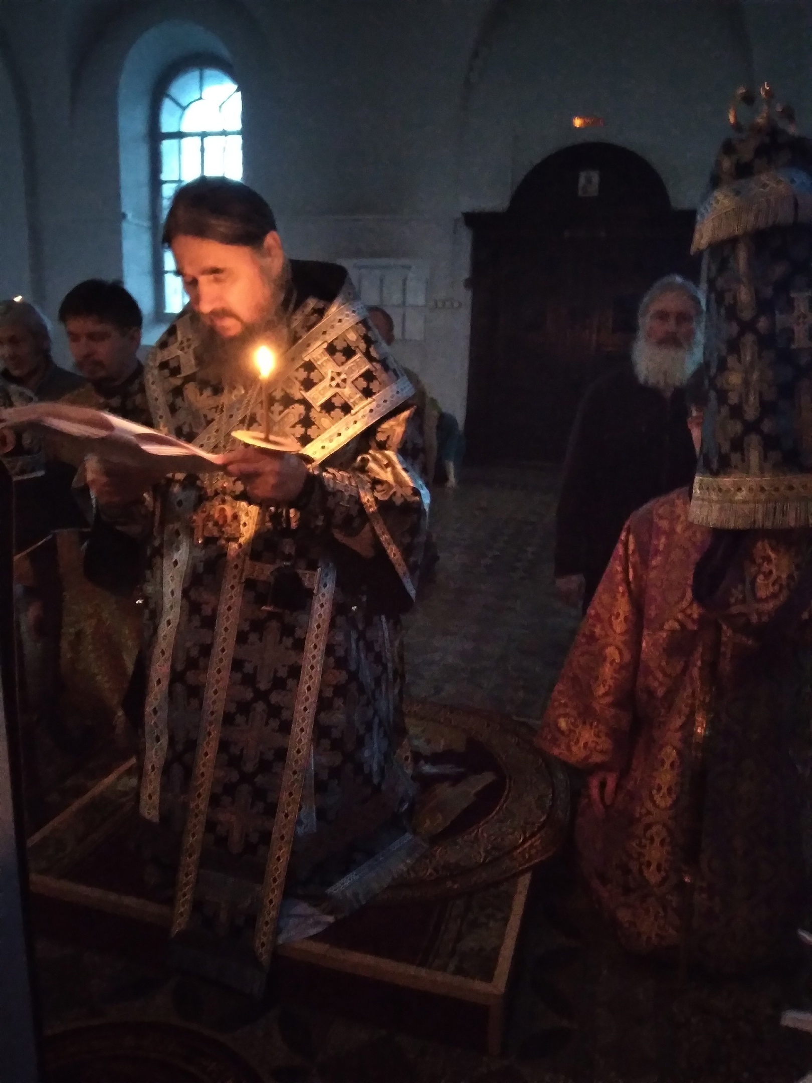 31 марта в кафедральном соборе святого праведного Прокопия Устюжского епископ Великоустюжский и Тотемский Фотий совершил вечернее богослужение с чтением акафиста и Евангелия Страстям Христовым (Пассию).