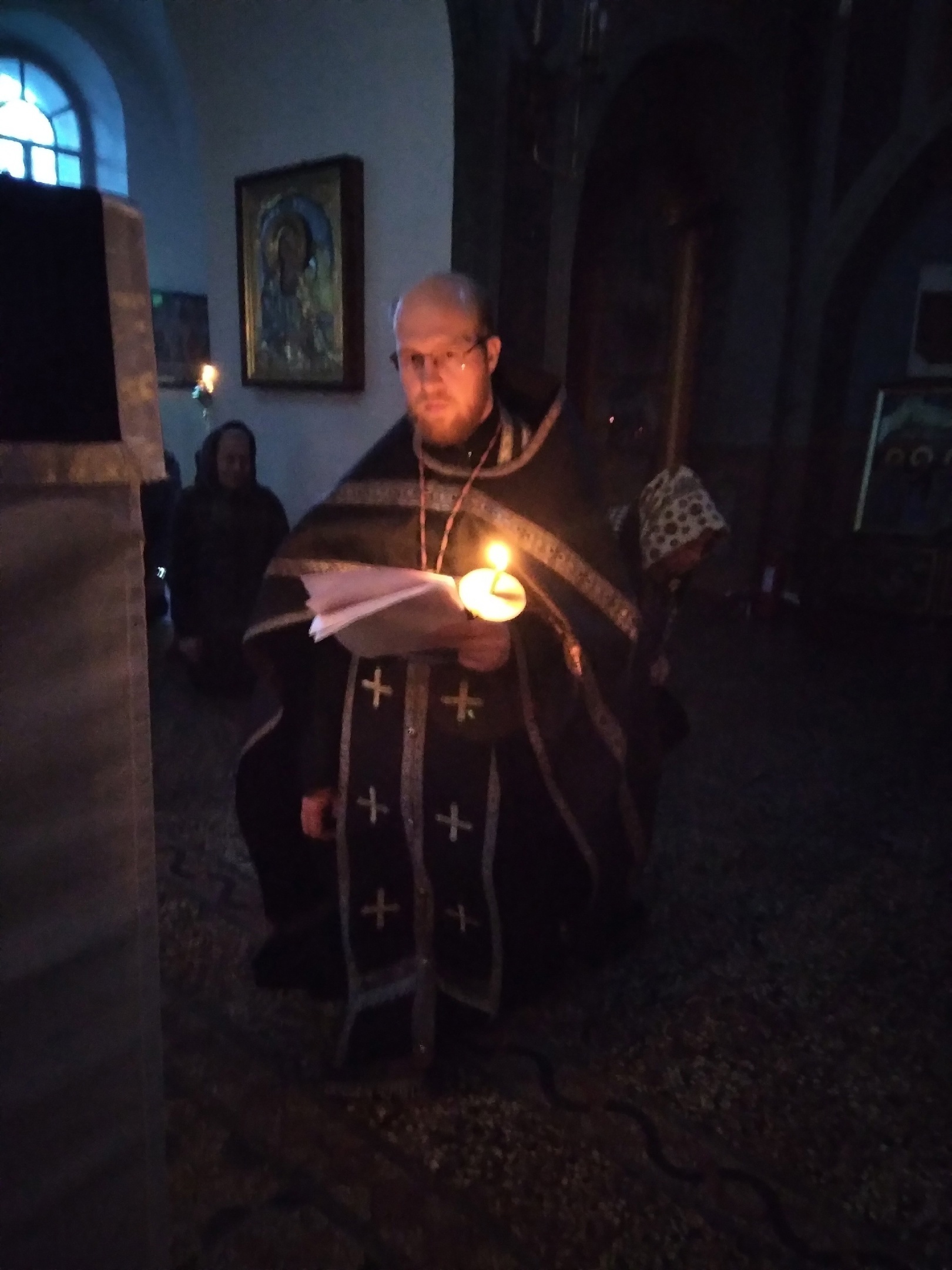 «Во имя отца, и сына и Святаго Духа! Возлюбленные отцы братья и сестры, сегодня мы совершаем первую особую молитву — чтение акафиста страстям Христовым с чтением Евангелия. В дни Великого поста служатся четыре таких пассии. Мы, стоя у Креста, и слушая о последних днях, о последних часах жизни Господа нашего Иисуса Христа, многое переосмысливаем в своей жизни.