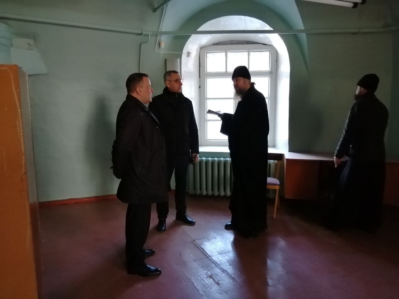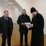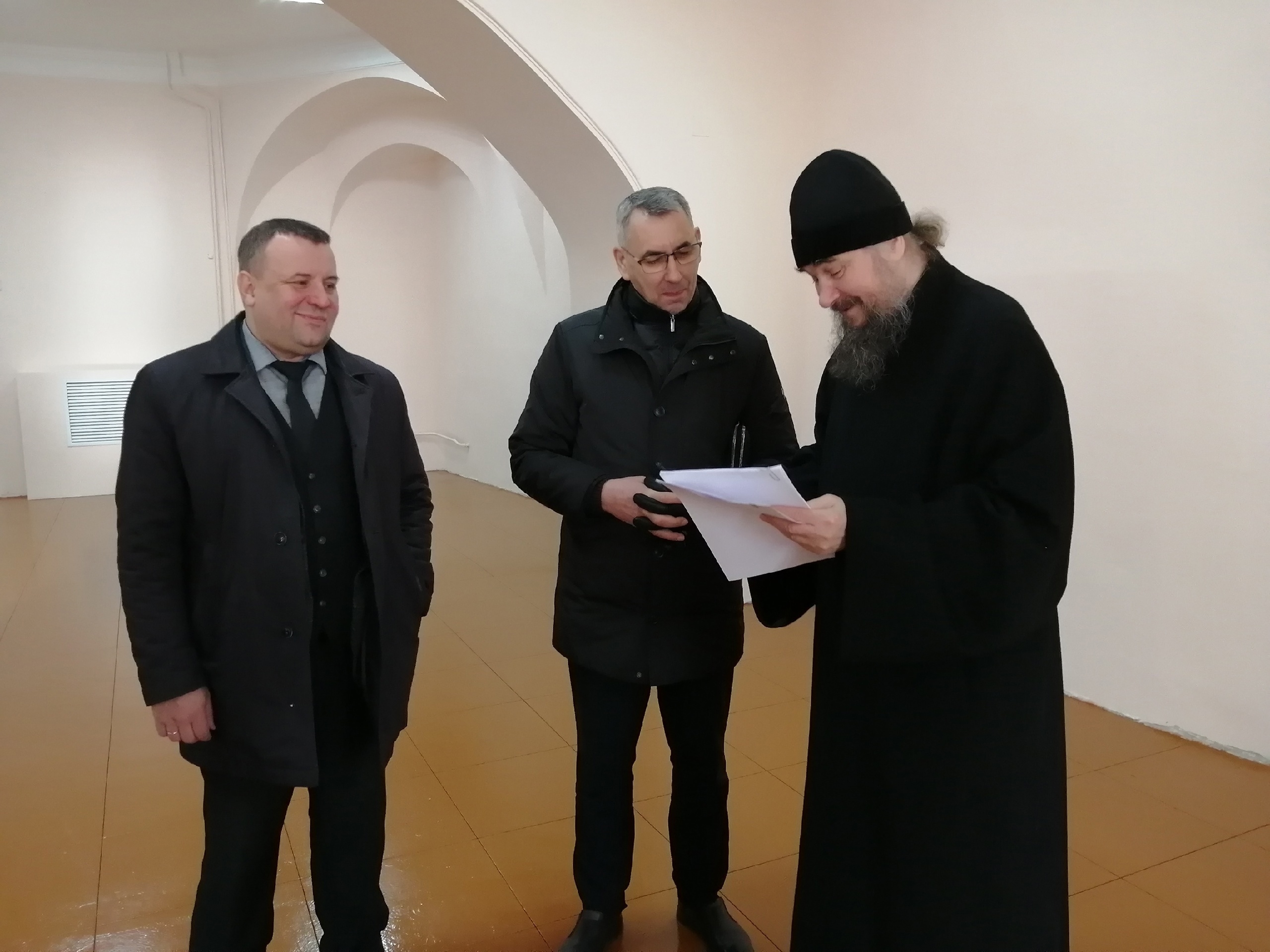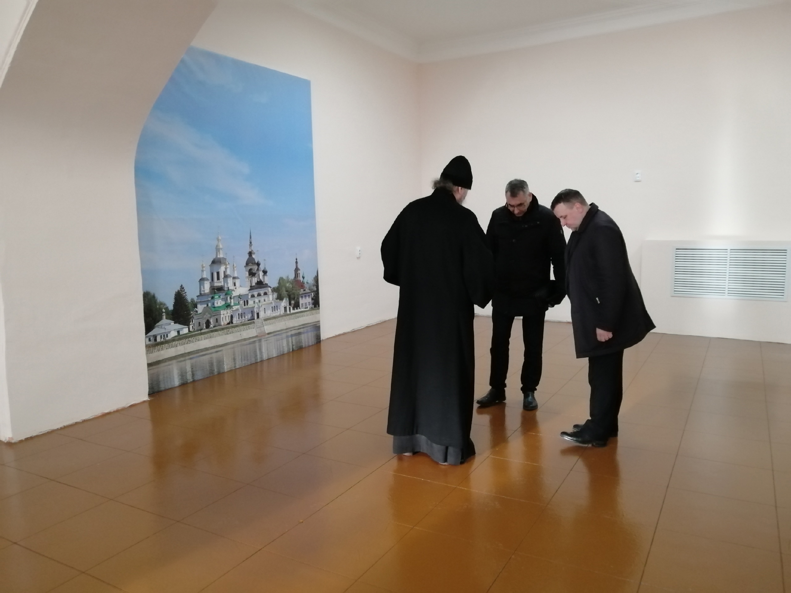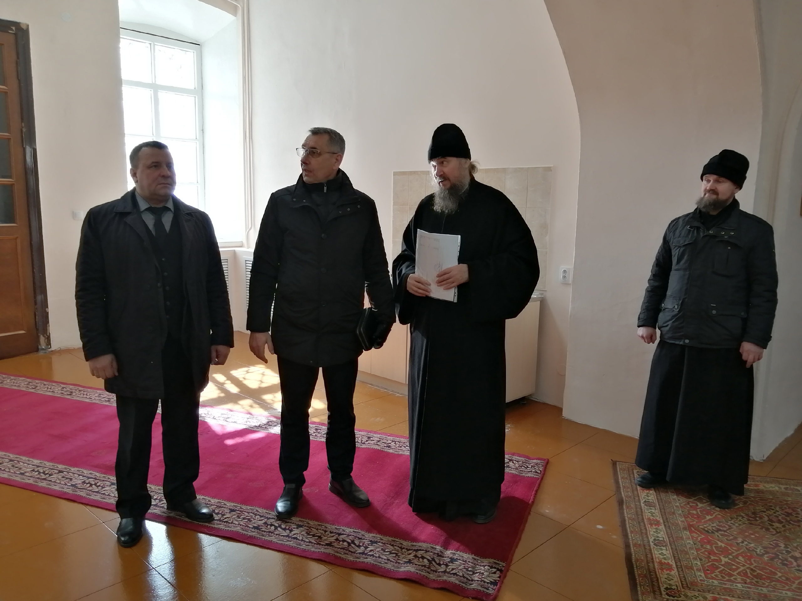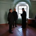 Владыка Фотий вместе с главой округа Иваном Алексеевичем Абрамовым, председателем Великоустюгской Думы Сергеем Анатольевичем Капустиным, и директором Великоустюгского музея-заповедника Антониной Борисовной Андреевой осмотрели Благовещенскую церковь Успенского собора Великого Устюга, где планируется размещение иконной лавки и трапезной для паломников и прихожан.