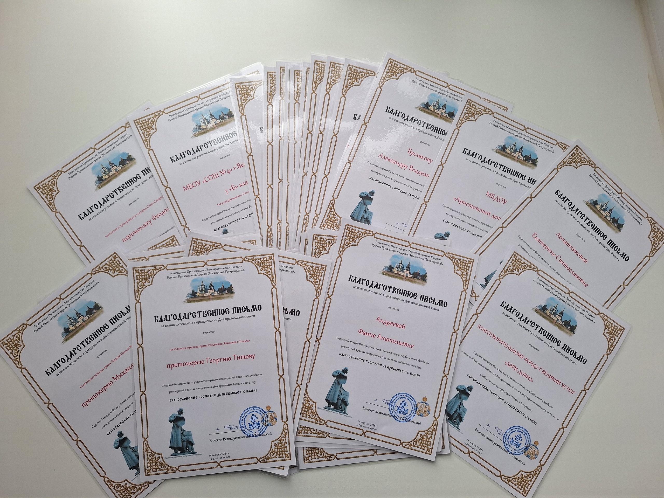 Епископ Великоустюжский и Тотемский Фотий выражает благодарность всем участникам епархиальной акции и приглашает на церемонию вручения благодарственных писем, которая состоится в Кафедральном соборе св.прав. Прокопия Устюжского 7 апреля 2024 года, после Божественной Литургии (начало в 08:30).