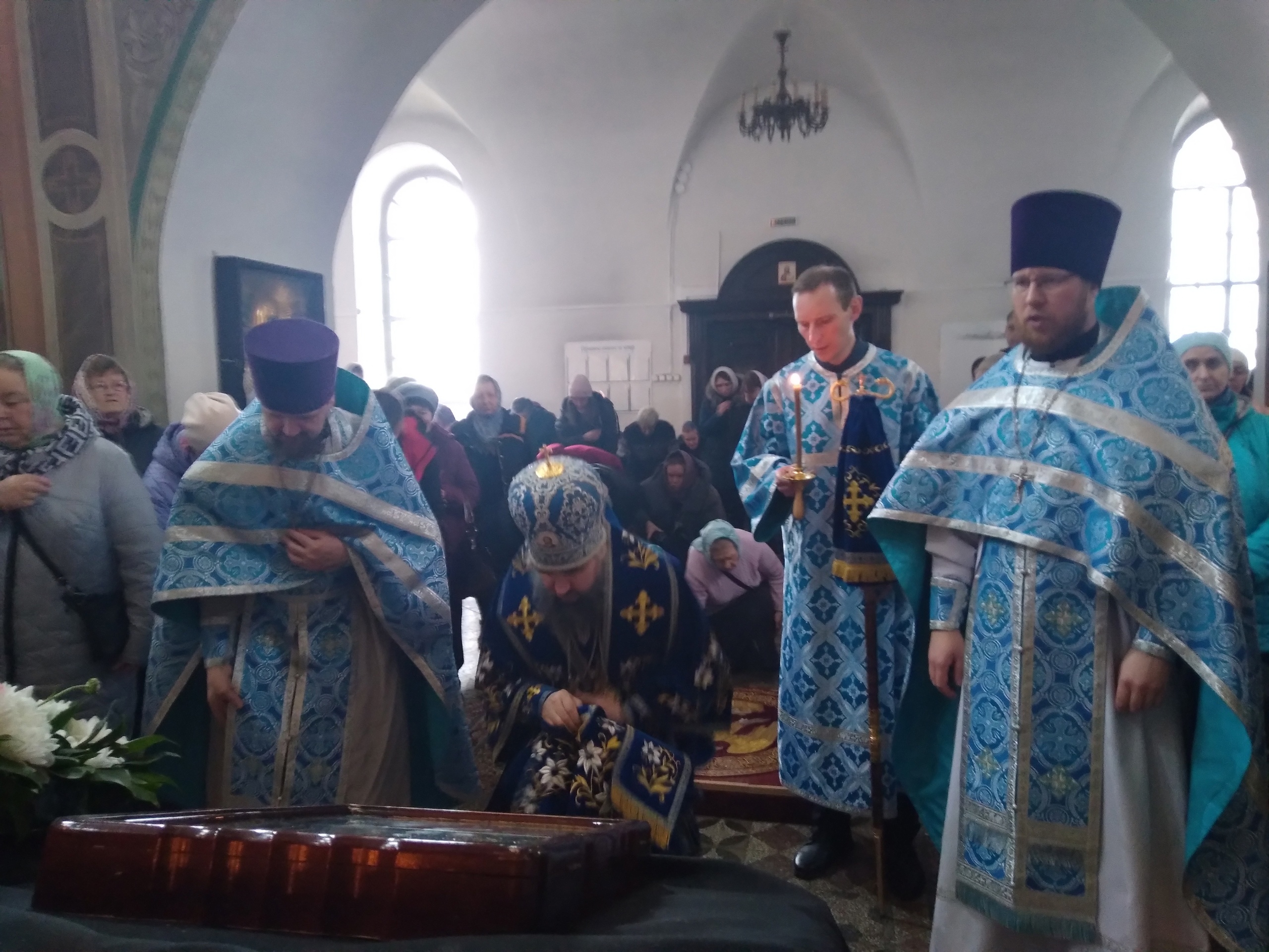 Владыке сослужили ключарь Кафедрального собора иерей Вячеслав Бураков и иерей Андрей Игнатьев.