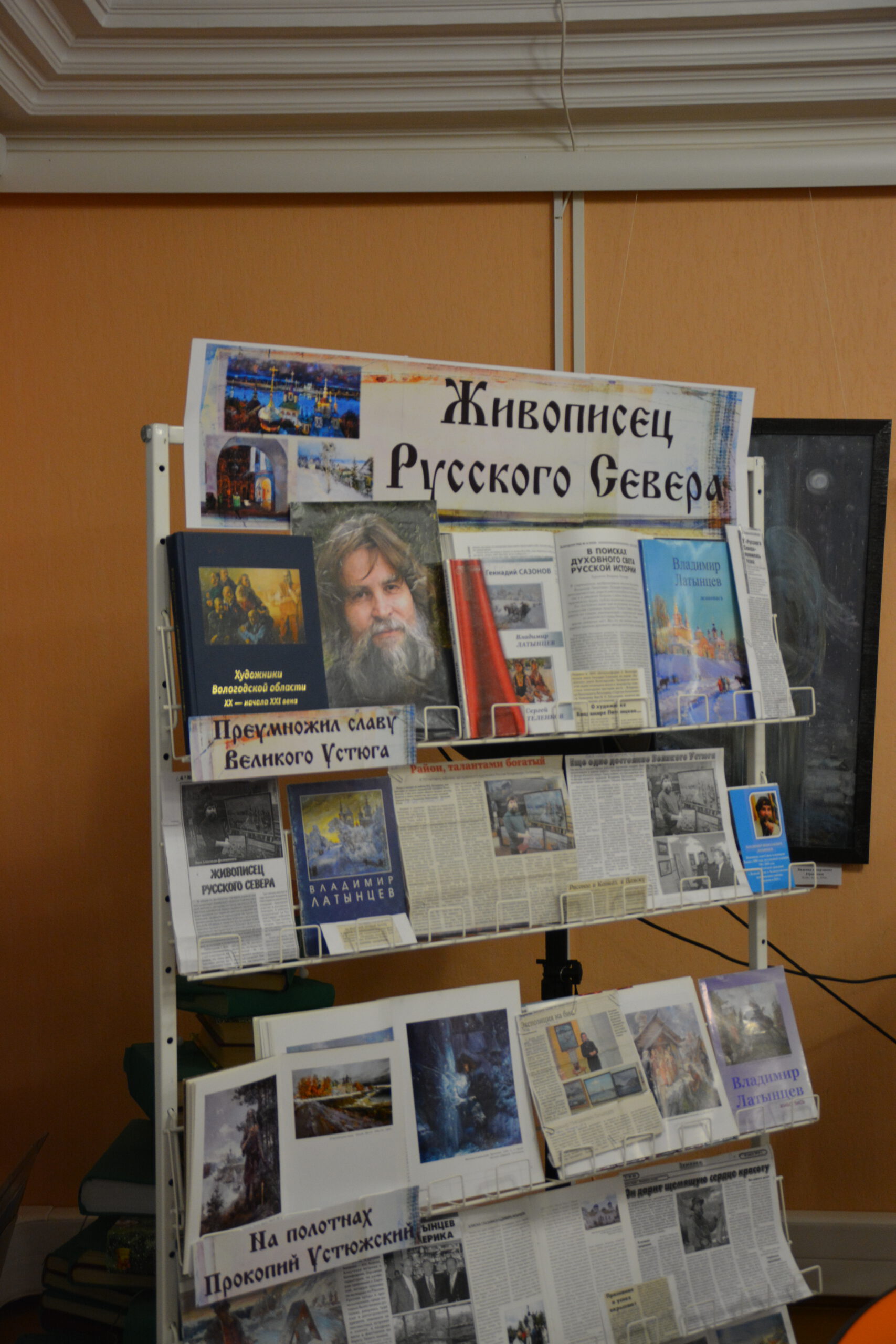 Девятого апреля в центральной библиотеке Великого Устюга прошла презентация книги Владимира Николаевича «Святой предок государей Российских». В своём труде Владимир Латынцев излагает свой взгляд на старинную теорию о том, что предком царской династии Романовых, и ещё нескольких дворянских родов, мог быть именно святой Прокопий Устюжский. Поздравить художника с писательским дебютом прибыл и епископ Великоустюжский и Тотемский Фотий. Владимиру Николаевичу владыка преподнёс в дар Библию.