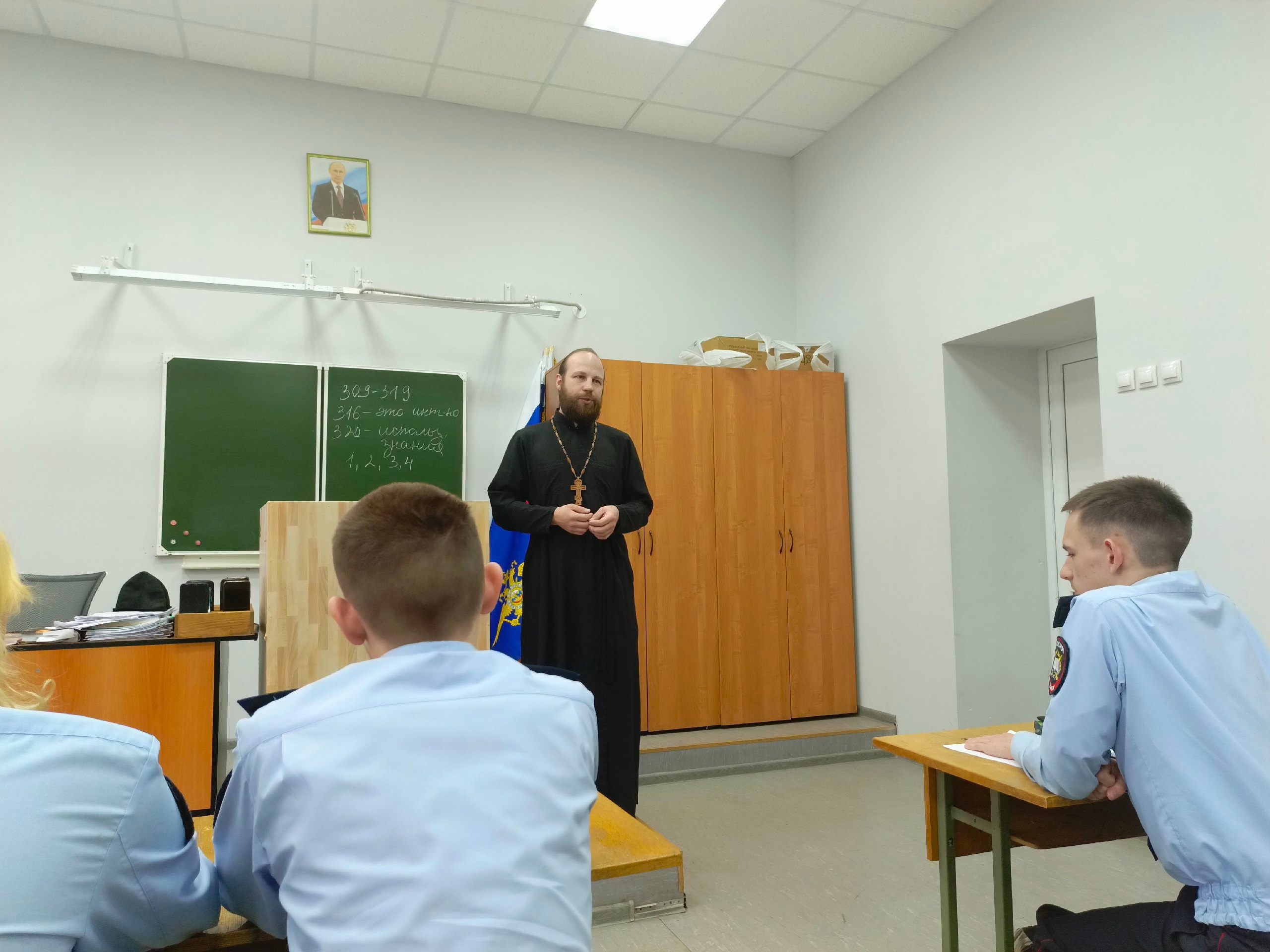 15 апреля в рамках сотрудничества молодёжного отдела Великоустюжской епархии с многопрофильным колледжем прошла встреча настоятеля храма св. вмч. Георгия Победоносца иерея Фёдора Фомина со студентами-первокурсниками специальности «Правоохранительная деятельность».