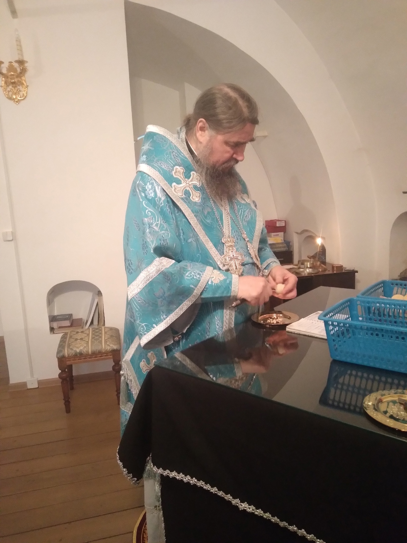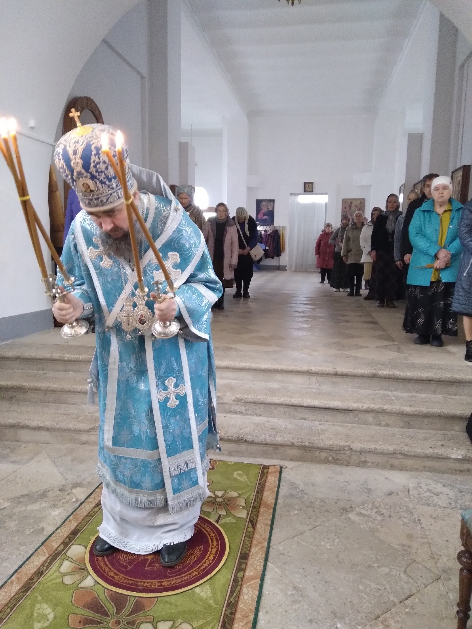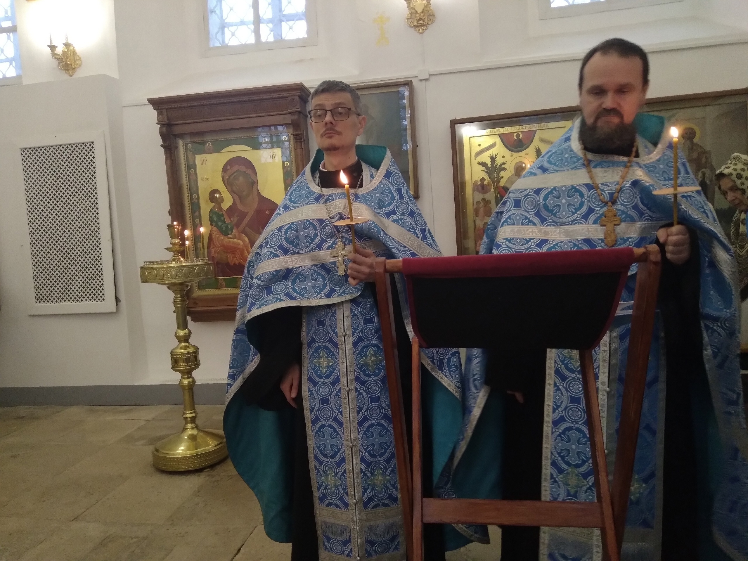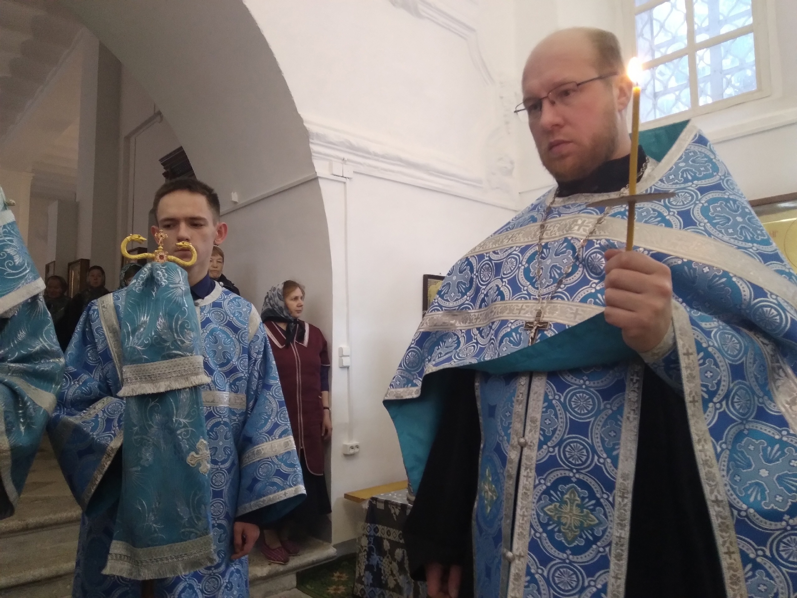 «Во имя Отца и Сына и Святаго Духа! Возлюбленные отцы, братья и сестры, заканчивается пятая седмица Великого поста, особая седмица. В четверг мы провели богослужение стояния Марии Египетской, где читалось житие преподобной Марии и полностью читался покаянный канон преподобного Андрея Критского. Это очень продолжительная и сугубо великопостная молитва. Сегодняшняя служба радостная и светлая, она посвящена Пресвятой Богородице. Суббота пятой седмицы называется Похвала Пресвятой Богородице. Для всех верующих это тёплый, светлый праздник. Священнослужители совершают богослужение в голубом праздничном облачение, с пением акафиста Пресвятой Богородице: «Радуйся, Невесто Неневестная». Вчера четырежды священнослужители выходили из алтаря на середину храма. Звучали замечательные гимны, прославляющие Божью Матерь.