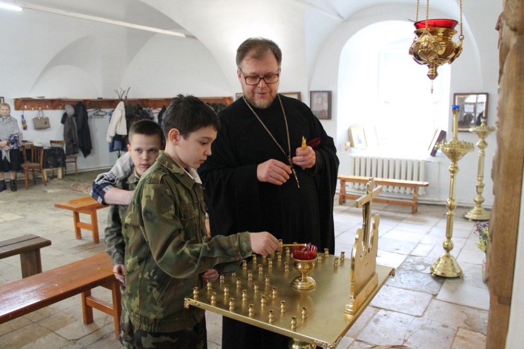 После завершения беседы батюшка раздал ребятам свечки и жалеющие поставили их у икон почитаемых святых.