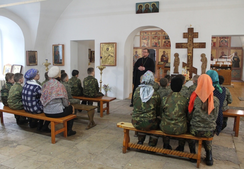 24 апреля в храме святителя Леонтия Ростовского состоялась встреча руководителя отдела образования и катехизации Великоустюжской епархии протоиерея Вадима Тяженкова с воспитанниками 4 кадетского класса школы №2.
