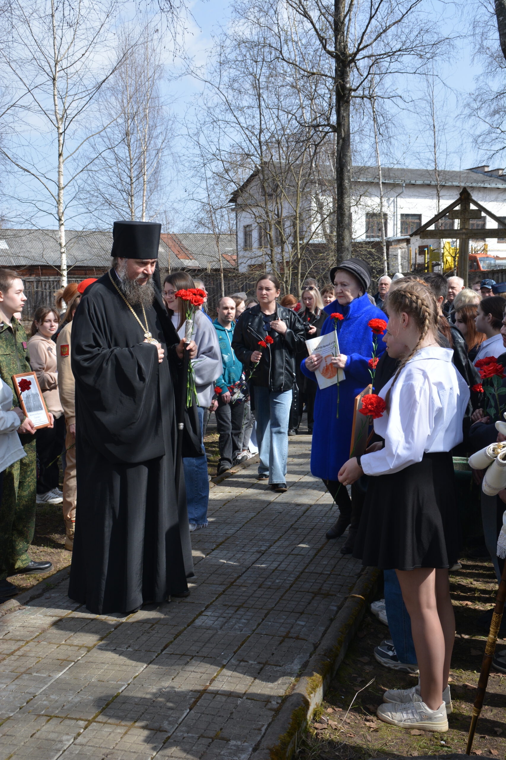 Памятную встречу посетил и епископ Великоустюжский и Тотемский Фотий. Владыка напомнил собравшимся слова Христа о том, что «нет больше той любви, как если кто положит душу свою за друзей своих» и обратился к собравшимся: