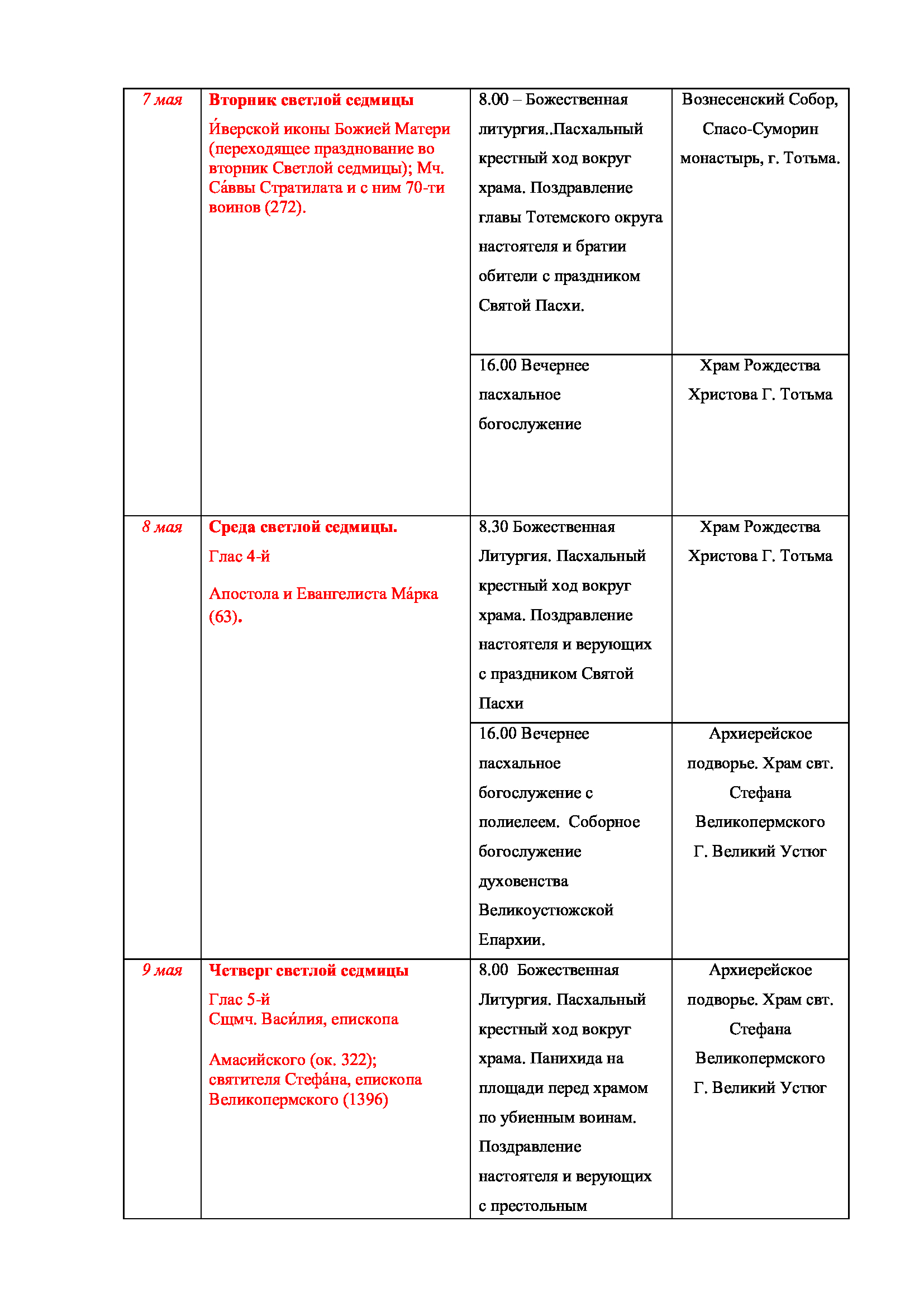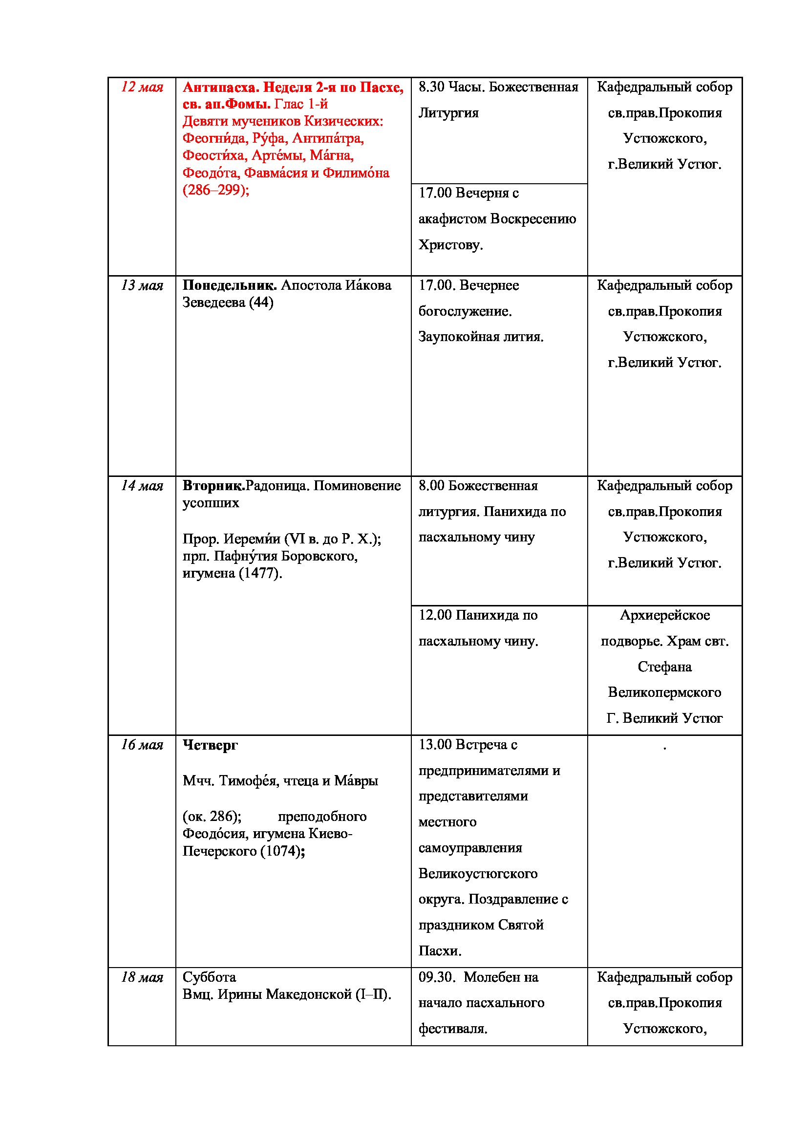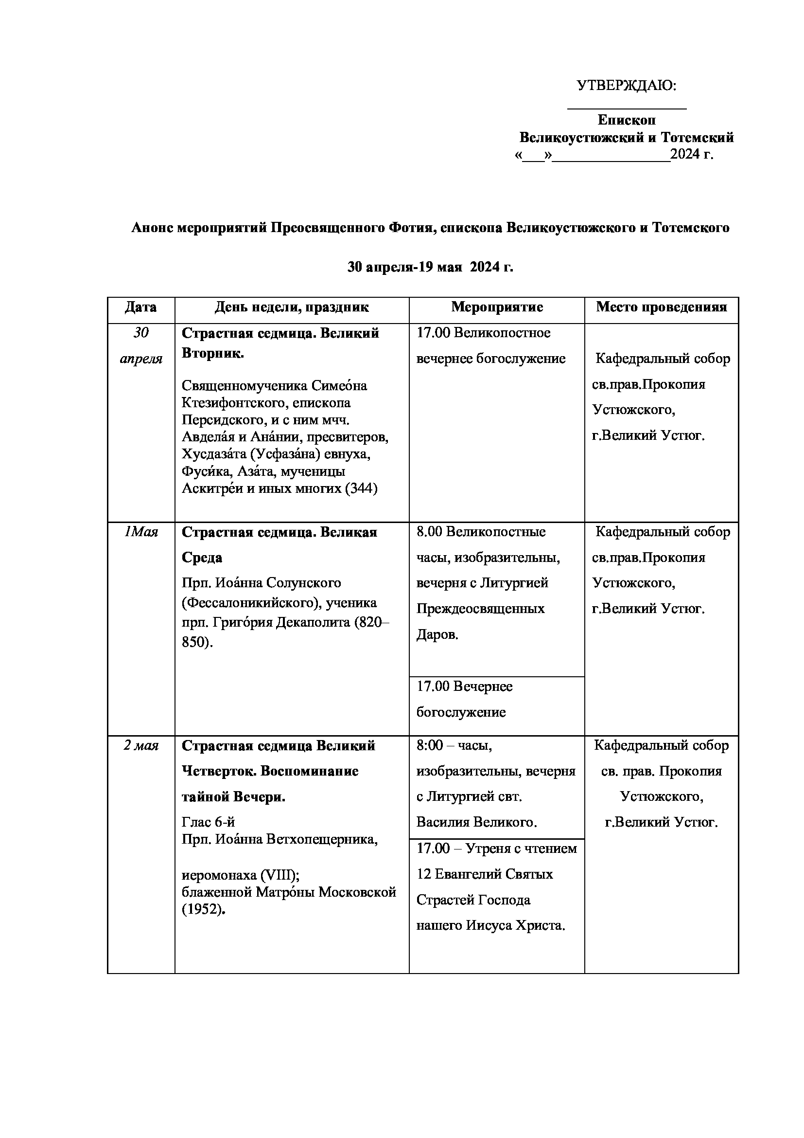 26 марта, в Четверток Великого Канона, епископ Великоустюжский