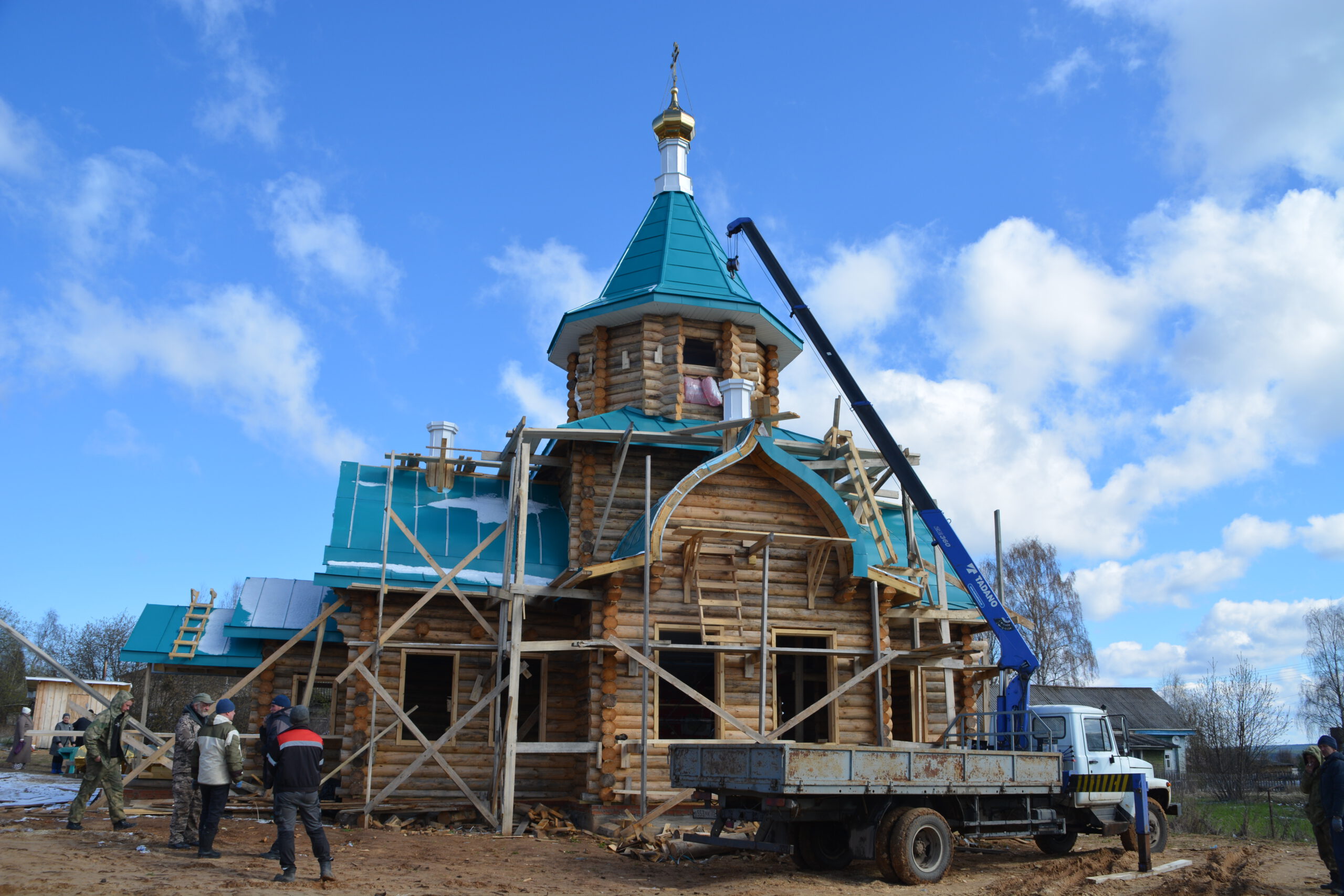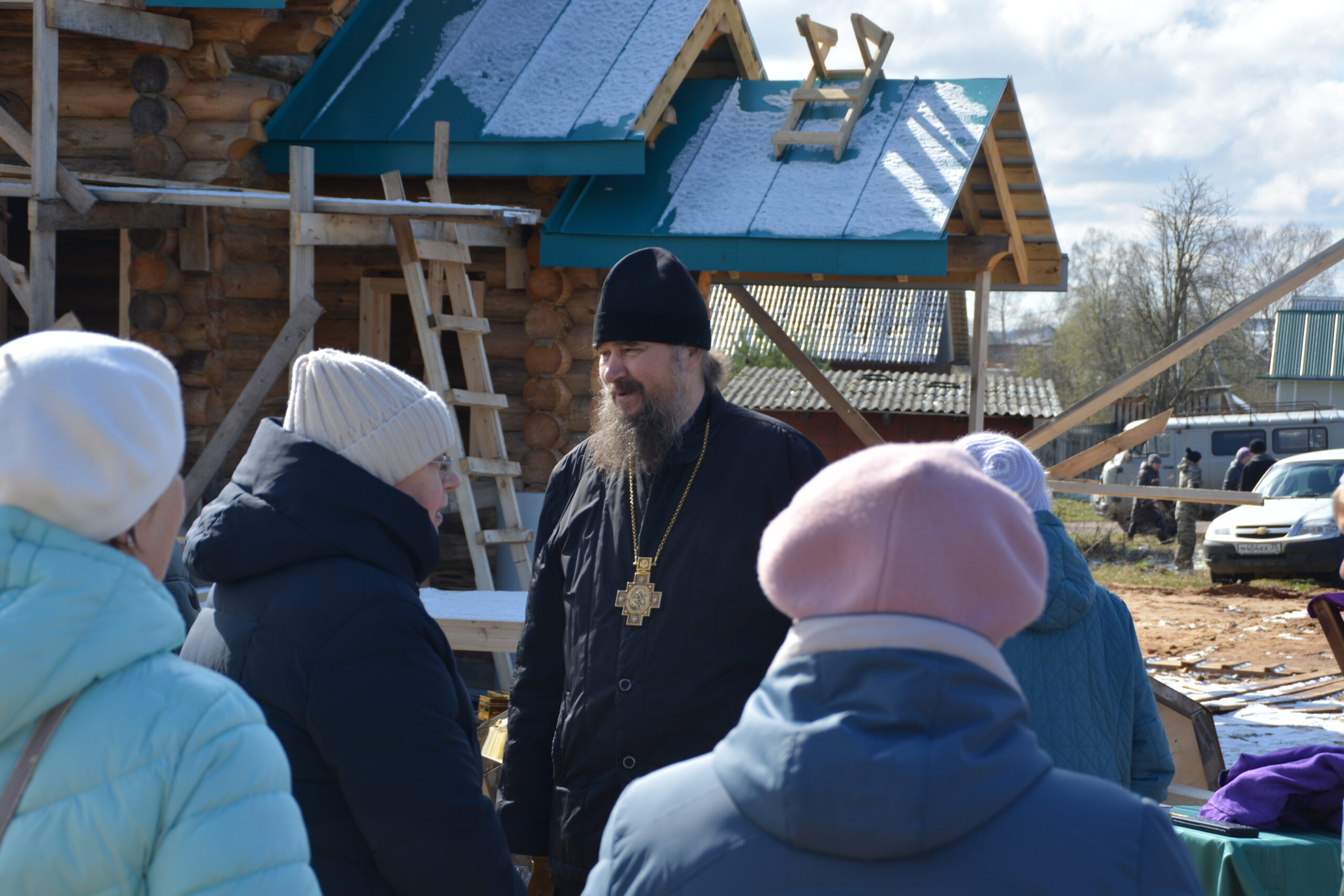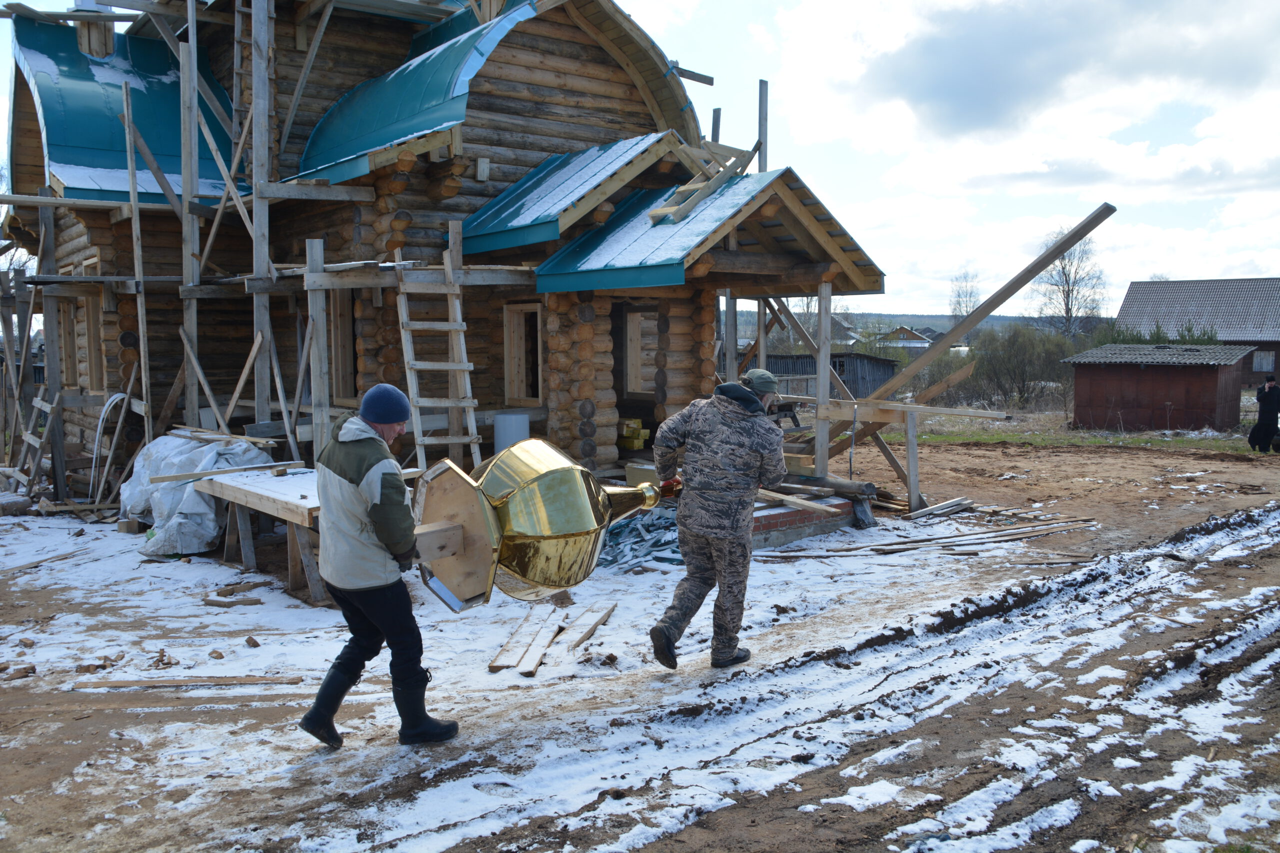 3 мая в посёлке Усть-Алексеево завершился ещё один этап строительства деревянной церкви в честь святых праведных Иоанна и Марии Устюжских — установка четырёх куполов. Епископ Великоустюжский и Тотемский Фотий утром в Великую пятницу прибыл в Усть-Алексеево и совершил освящение крестов и куполов Новостроящегося храма. Владыке сослужил иерей Вячеслав Бураков, ключарь Прокопьевского Собора. Архиерей освятил четыре купола, которые были установлены на крышу храма. День, когда жители Усть-Алексеева обретут свой собственный храм стал ещё ближе. Напомним, строительство церкви в честь святых праведных Иоанна и Марии Устюжских началось 3 августа 2023 года на средства мецената Василия Михайловича Перевалова. Надеемся, что уже в следующем году храм будет готов принять верующих. По словам автора проекта храма архитектора Эдуарда Наседкина, наблюдавшего за ходом установки куполов, в церкви смогут собраться на молитву около сотни прихожан.