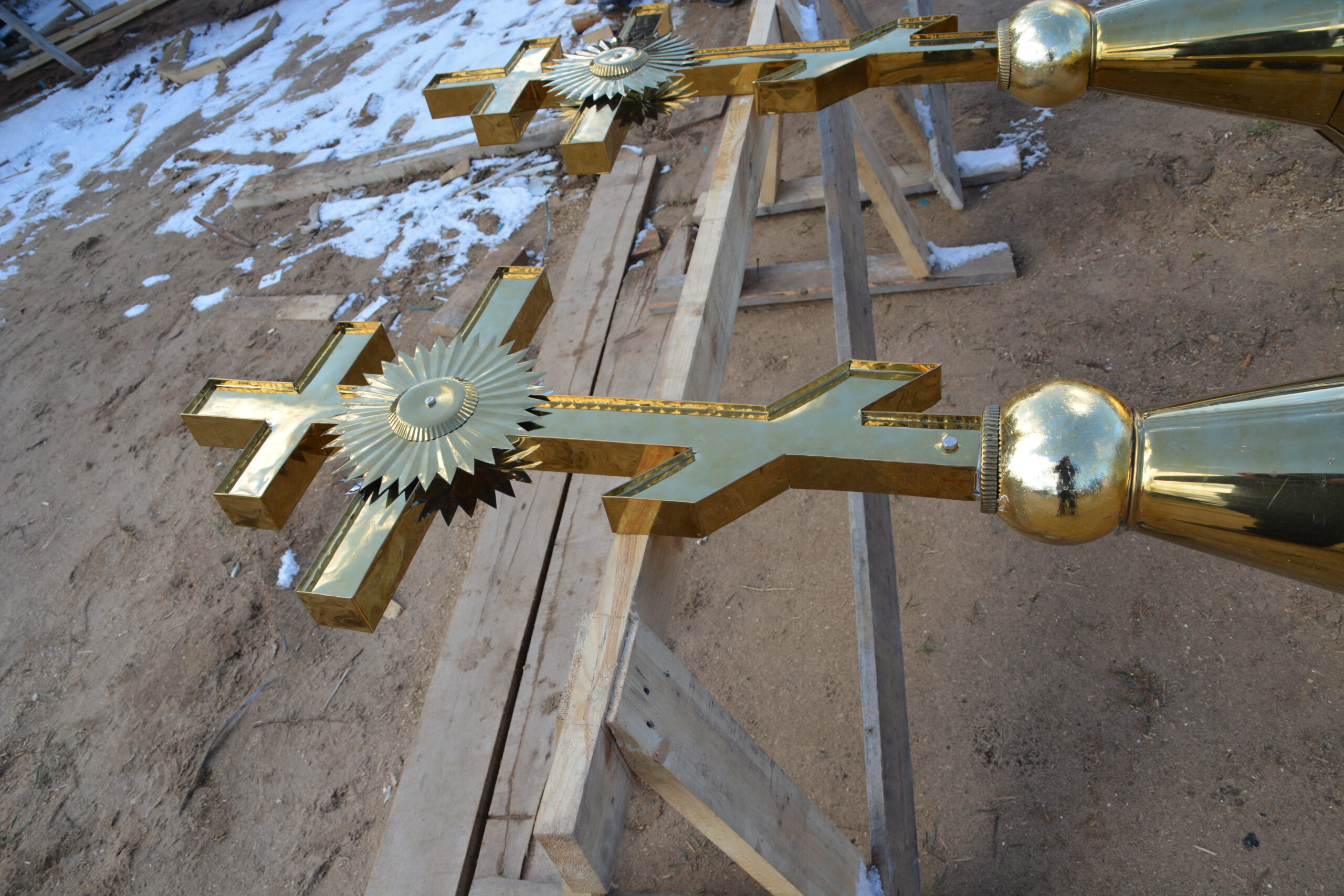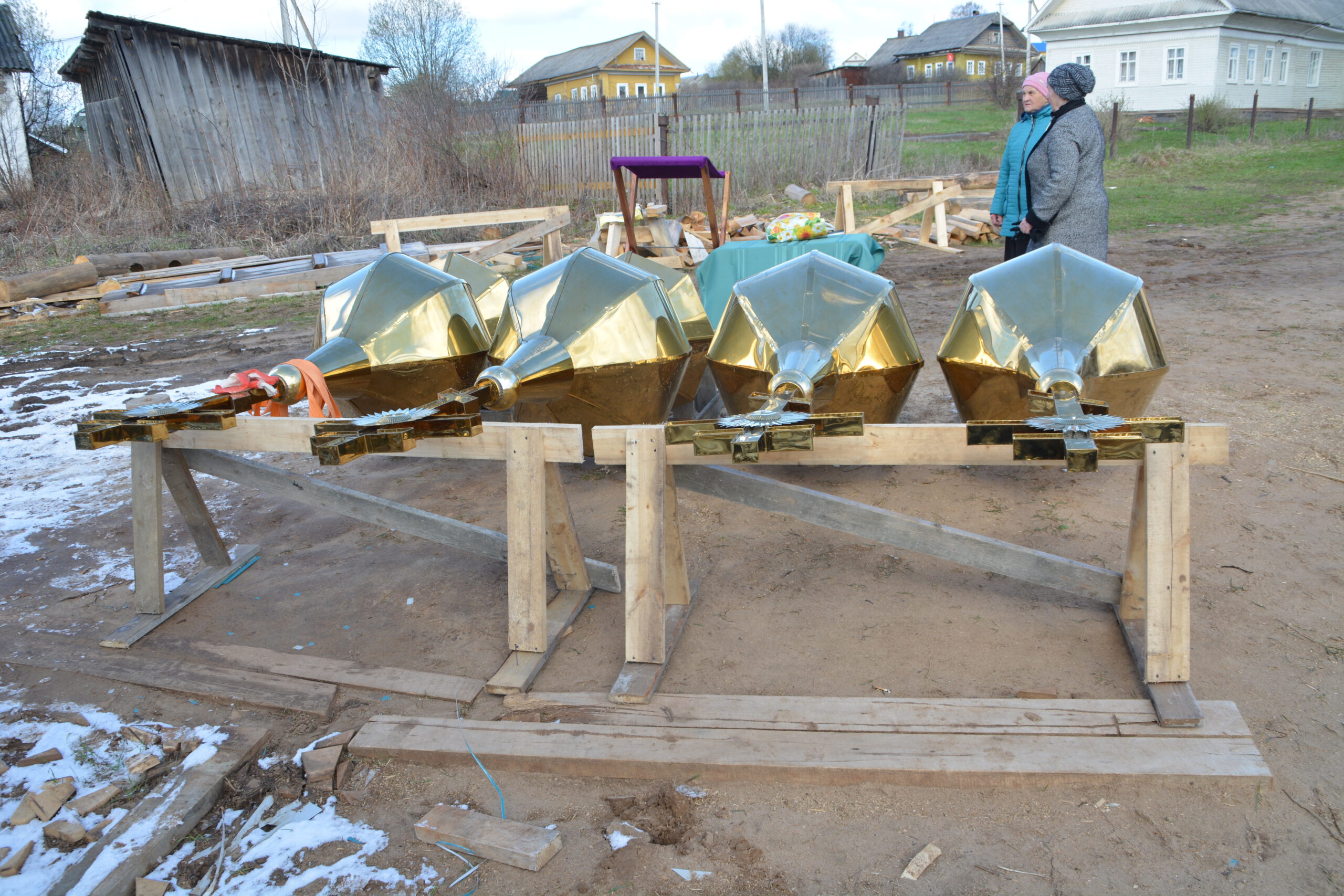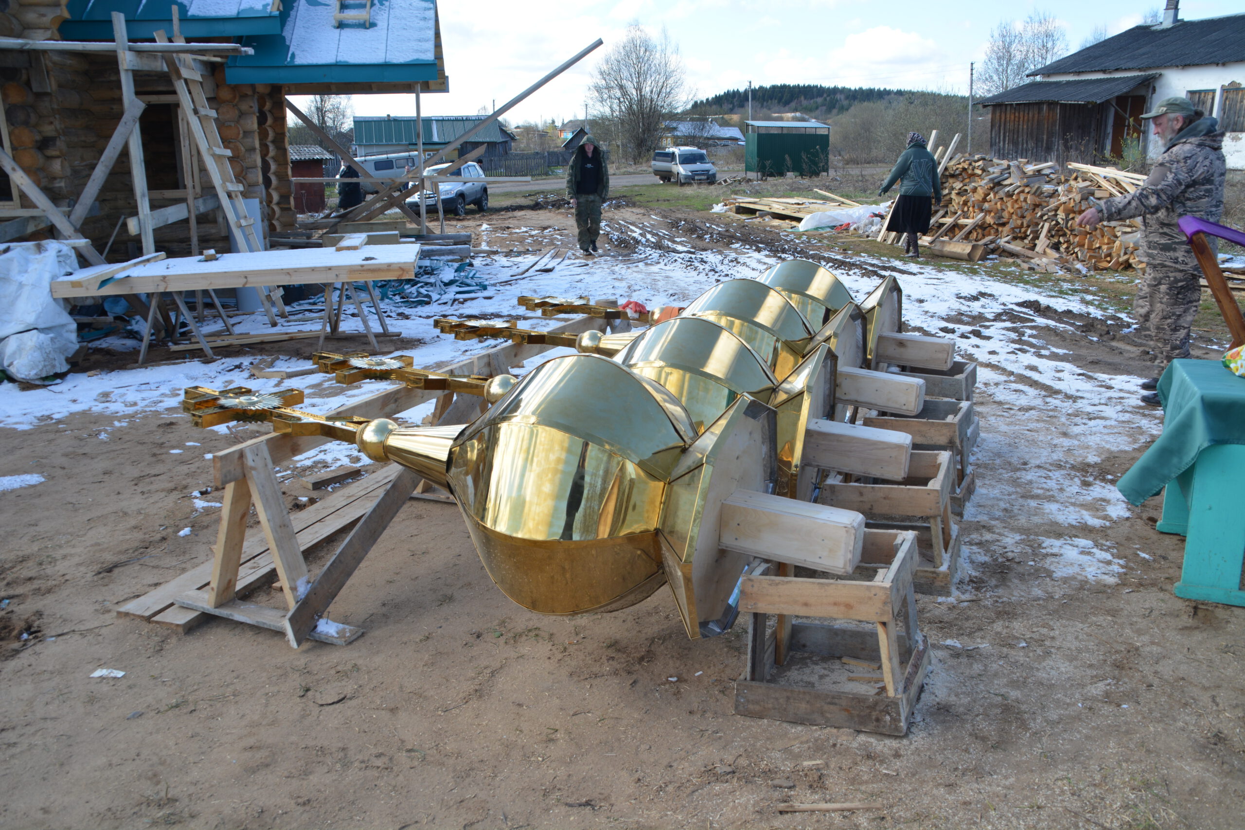 3 мая в посёлке Усть-Алексеево завершился ещё один этап строительства деревянной церкви в честь святых праведных Иоанна и Марии Устюжских — установка четырёх куполов. Епископ Великоустюжский и Тотемский Фотий утром в Великую пятницу прибыл в Усть-Алексеево и совершил освящение крестов и куполов Новостроящегося храма. Владыке сослужил иерей Вячеслав Бураков, ключарь Прокопьевского Собора. Архиерей освятил четыре купола, которые были установлены на крышу храма. День, когда жители Усть-Алексеева обретут свой собственный храм стал ещё ближе. Напомним, строительство церкви в честь святых праведных Иоанна и Марии Устюжских началось 3 августа 2023 года на средства мецената Василия Михайловича Перевалова. Надеемся, что уже в следующем году храм будет готов принять верующих. По словам автора проекта храма архитектора Эдуарда Наседкина, наблюдавшего за ходом установки куполов, в церкви смогут собраться на молитву около сотни прихожан.