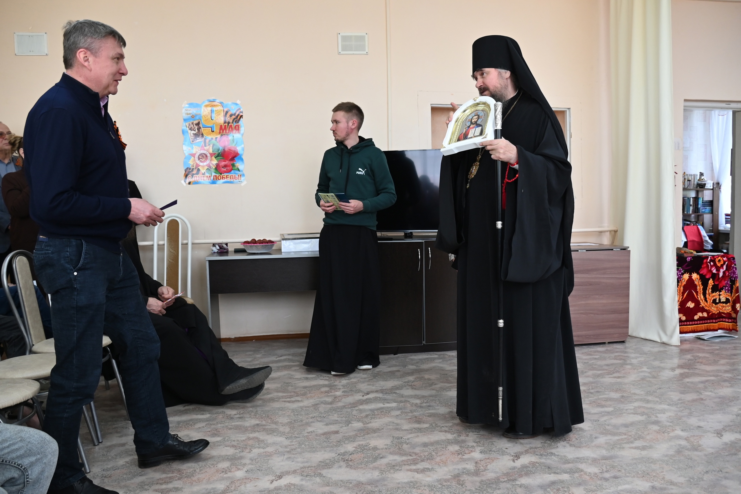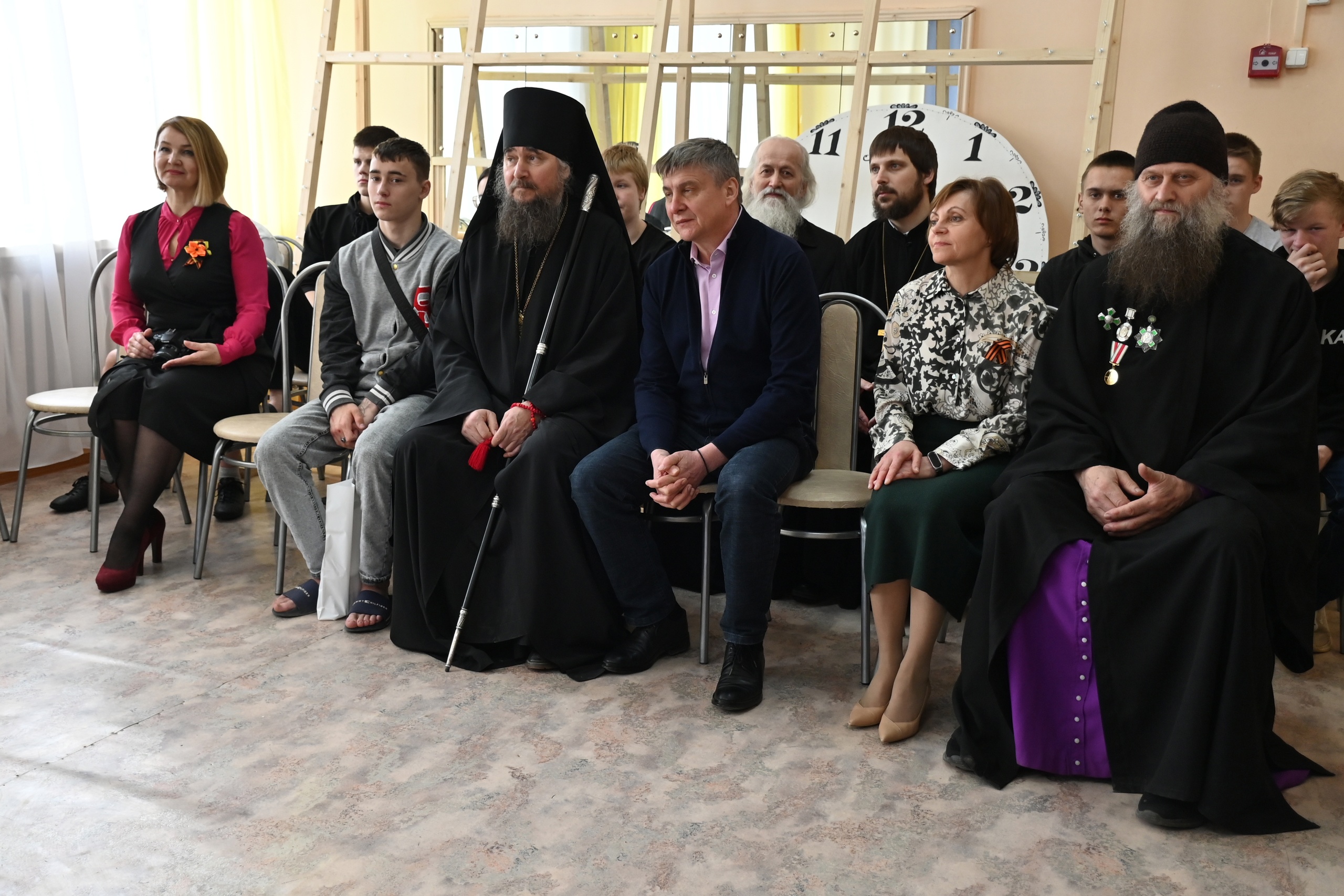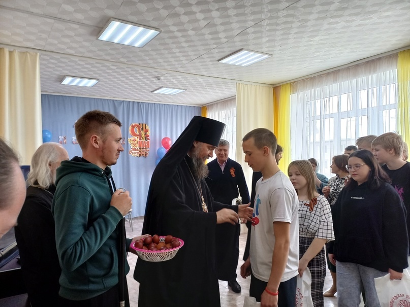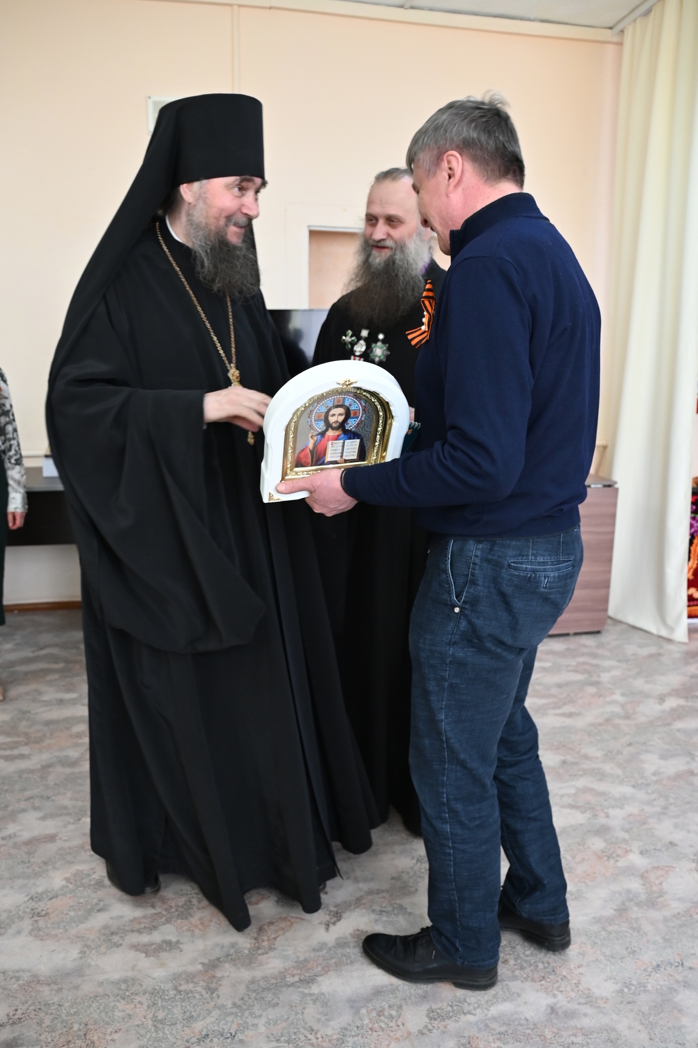 Епископ Великоустюжский и Тотемский Фотий подарил центру помощи образ Спасителя, и поздравил и детей и взрослых с праздником Пасхи, поблагодарил за показанный спектакль, отметил важность гражданско — патриотического воспитания молодого поколения, пожелал дальнейших успехов воспитанникам и педагогам центра.