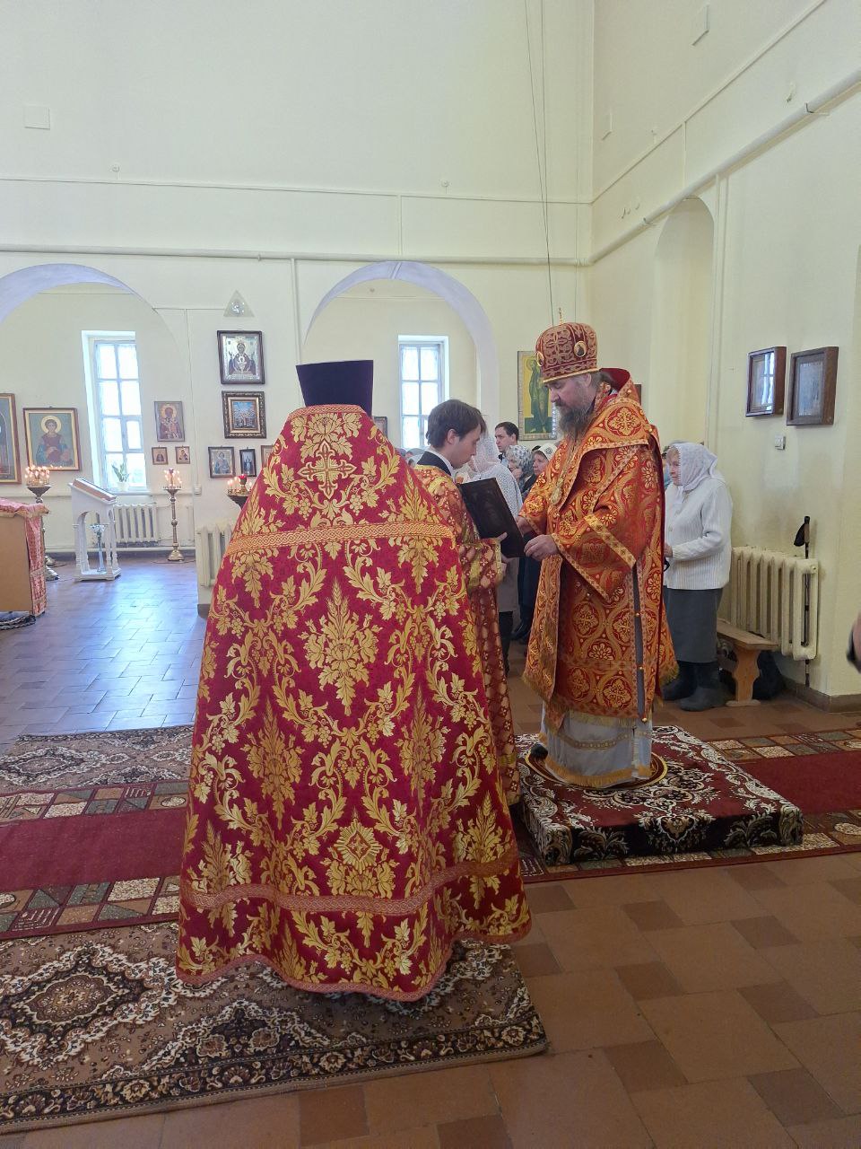 Преосвященный Фотий поздравил прихожан и настоятеля с Воскресением Христовым, и вручил верующим пасхальные подарки.