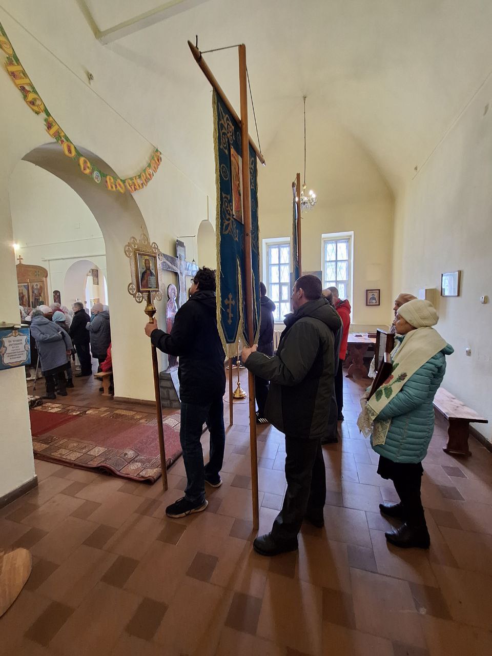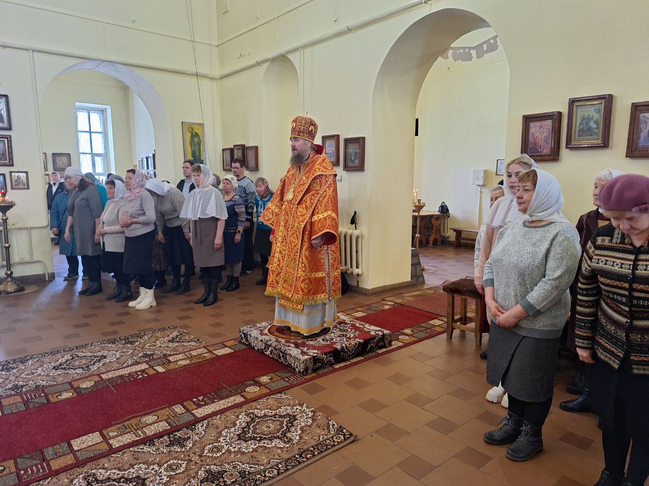 «Во имя Отца и Сына и Святаго Духа! Христос Воскресе! Возлюбленные отцы, братья и сестры, досточтимый отец настоятель, отец Михаил, сегодня мы соборно отслужили праздничную Божественную Литургию в храме святого равноапостольного князя Владимира г. Красавино. Давно мы не были в вашем древнем историческом храме и сегодня очень приятно разделить с вами эту соборную молитву. Наступил праздников праздников и торжество из торжеств день Святой Пасхи, и мы в радости духовной отмечаем Светлое Христово Воскресение. Даже у неверующих людей в эти светлые дни сердце наполняется духовной пасхальной радостью.