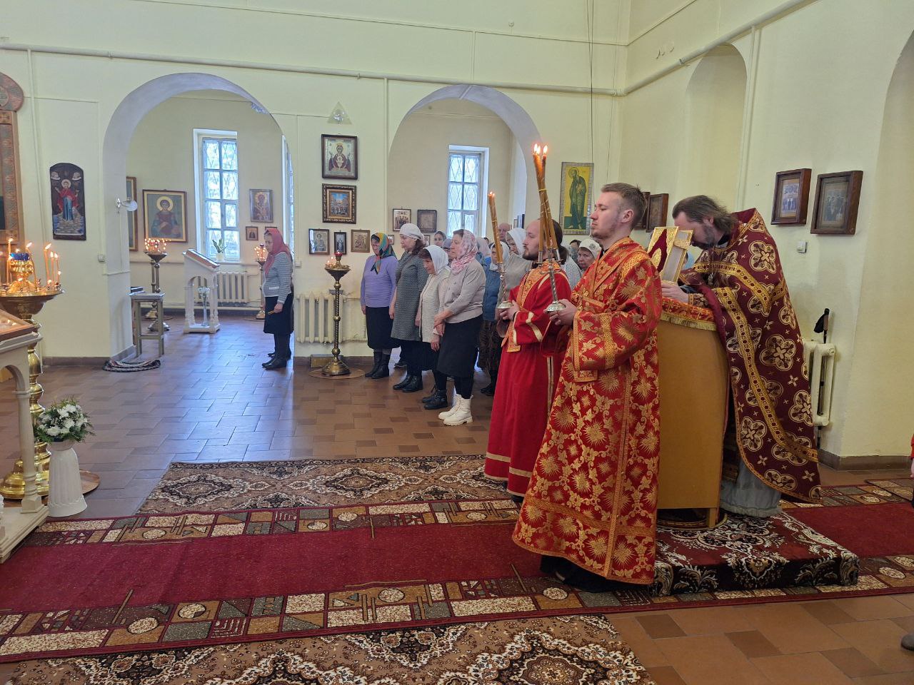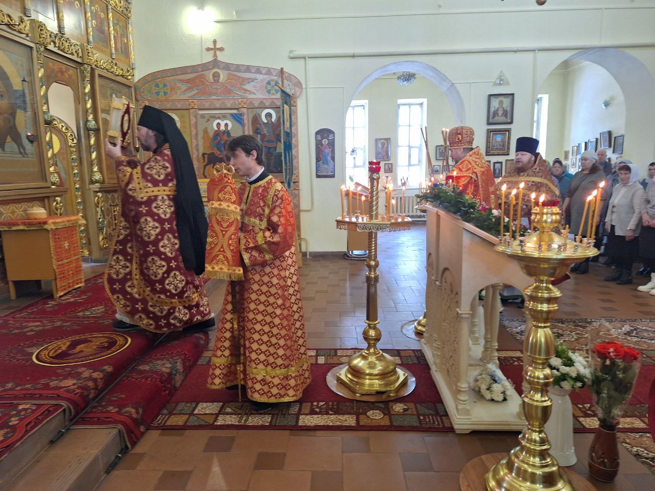 Владыке сослужили благочинный Великоустюжского округа протоиерей Дмитрий Фомин; иеромонах Леонид Конев, штатный клирик Архиерейского подворья храма свт. Стефана Великопермского г. Великий Устюг; протоиерей Вадим Тяженков, настоятель храма свт. Леонтия, епископа Ростовского г. Великий Устюг и настоятель Князь-Владимирского храма протоиерей Михаил Волков.