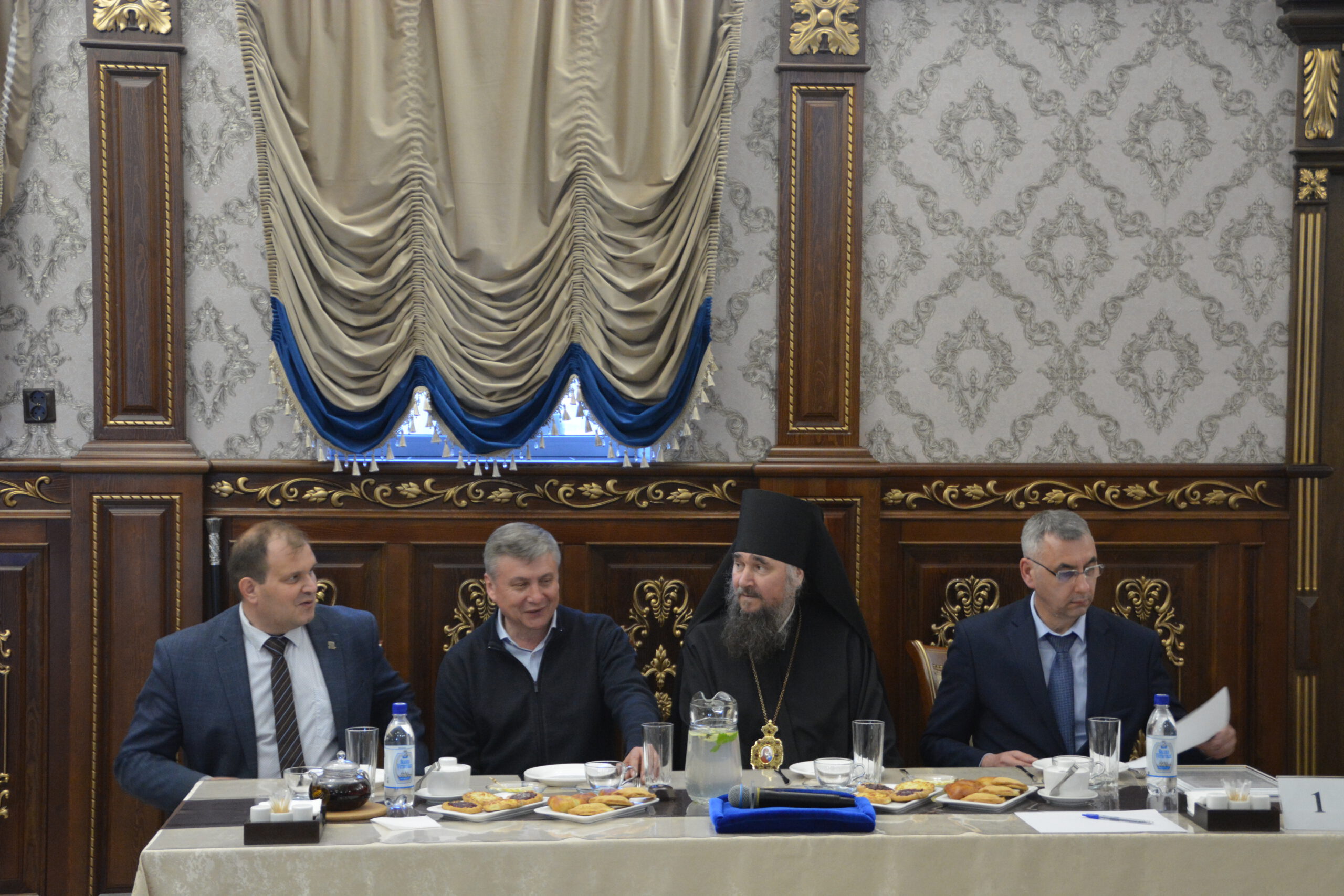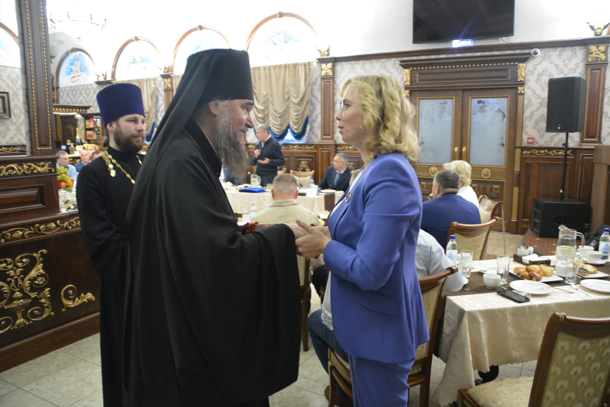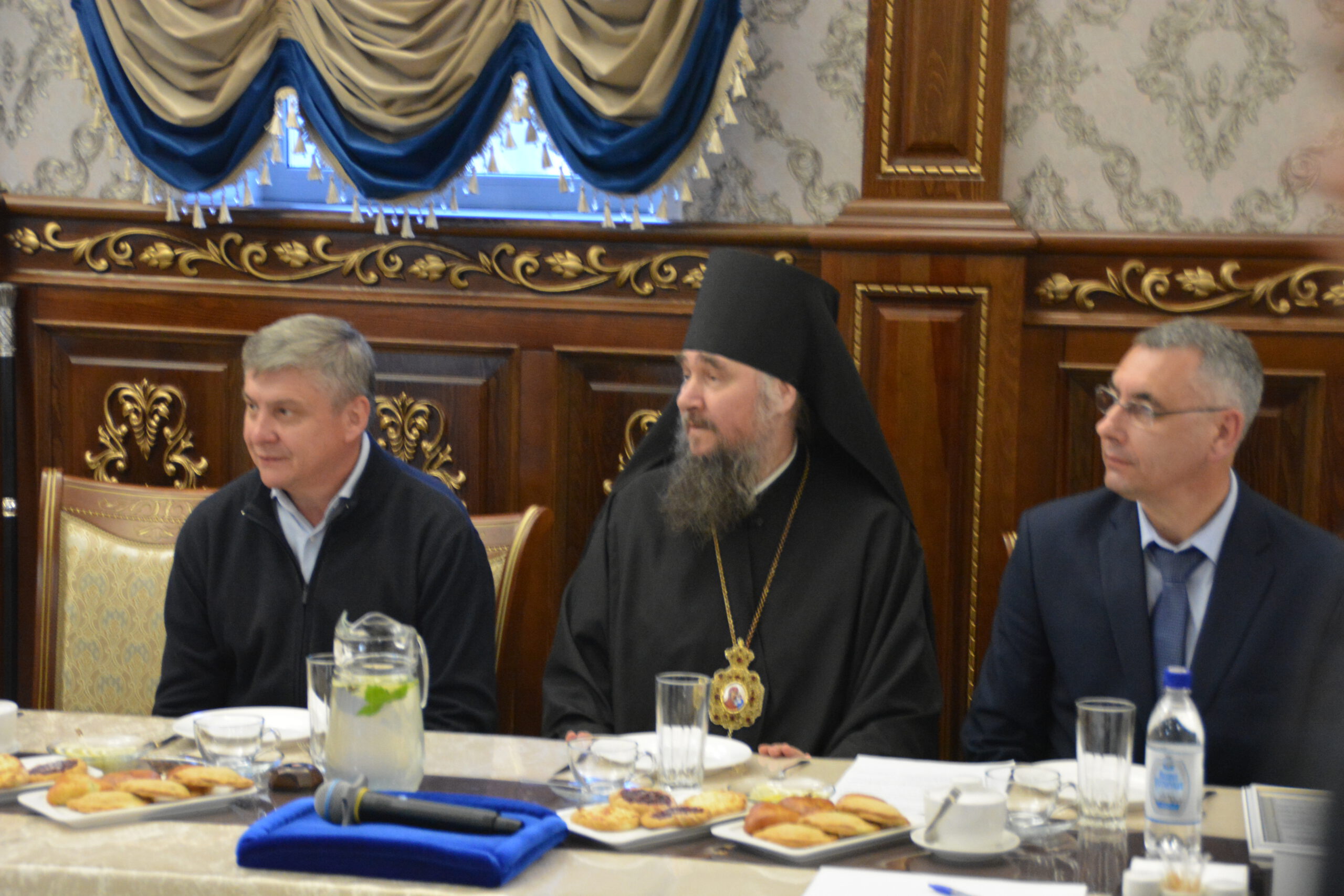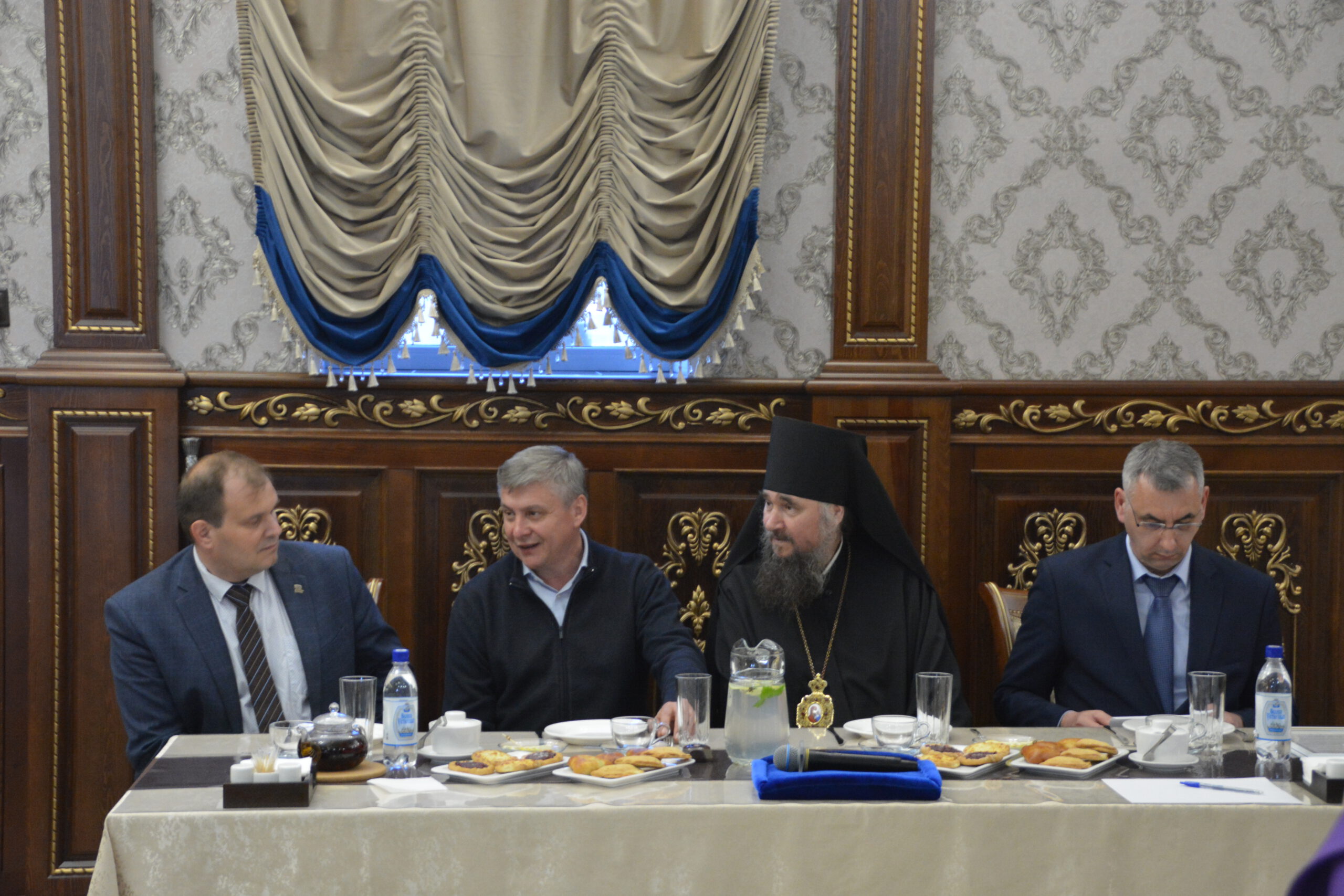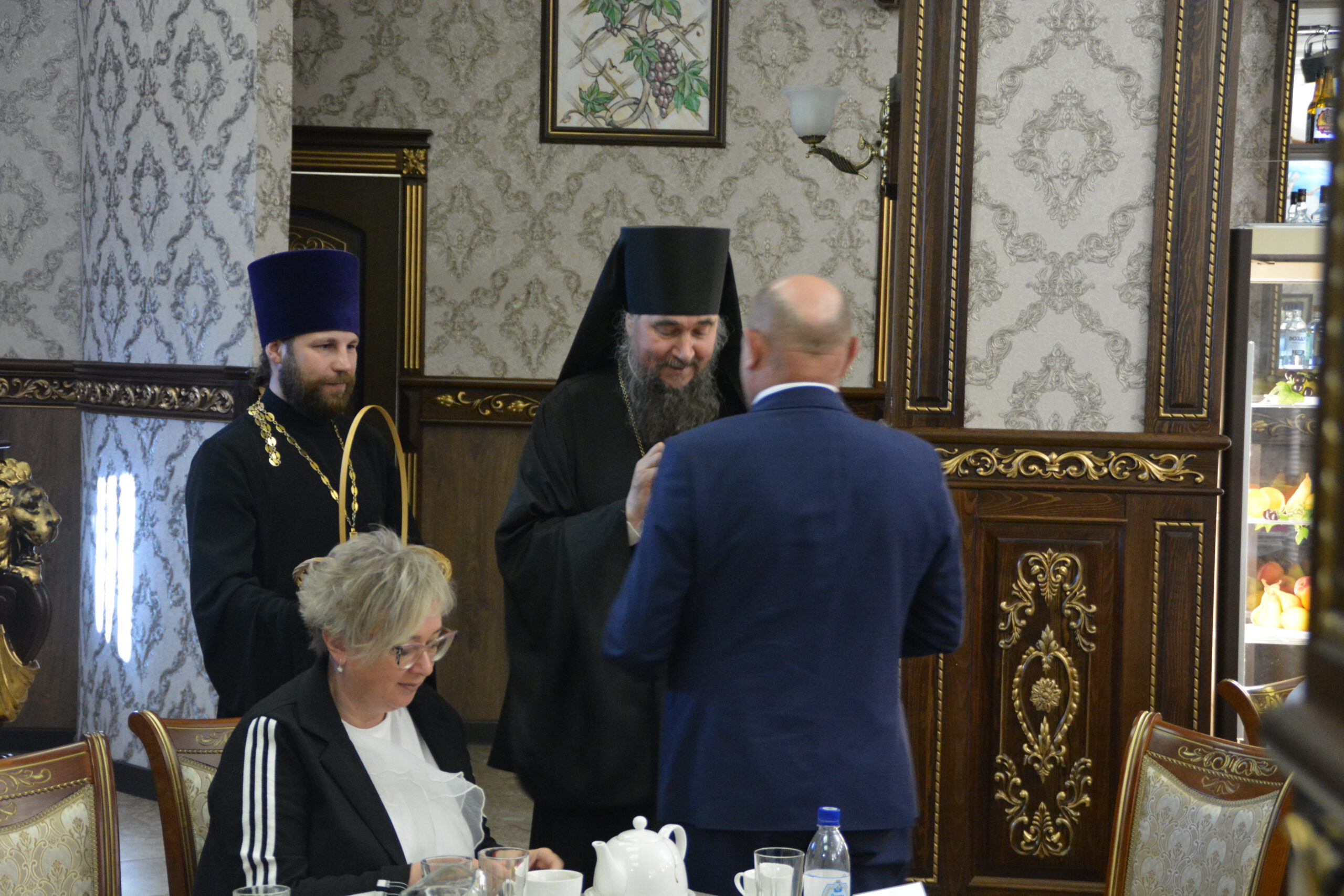 30 мая в ресторане «Любимый город» состоялась встреча представителей руководства округа и региона с духовенством Великоустюжской Епархии и местными предпринимателями. Делегацию Великоустюжской Епархии представили епископ Великоустюжский и Тотемский Фотий, а также протоиерей Дмитрий Фомин, благочинный Великоустюжского округа, и секретарь епархии иерей Фёдор Фомин.