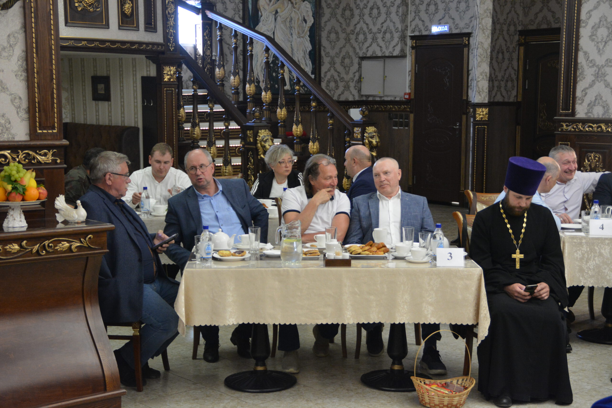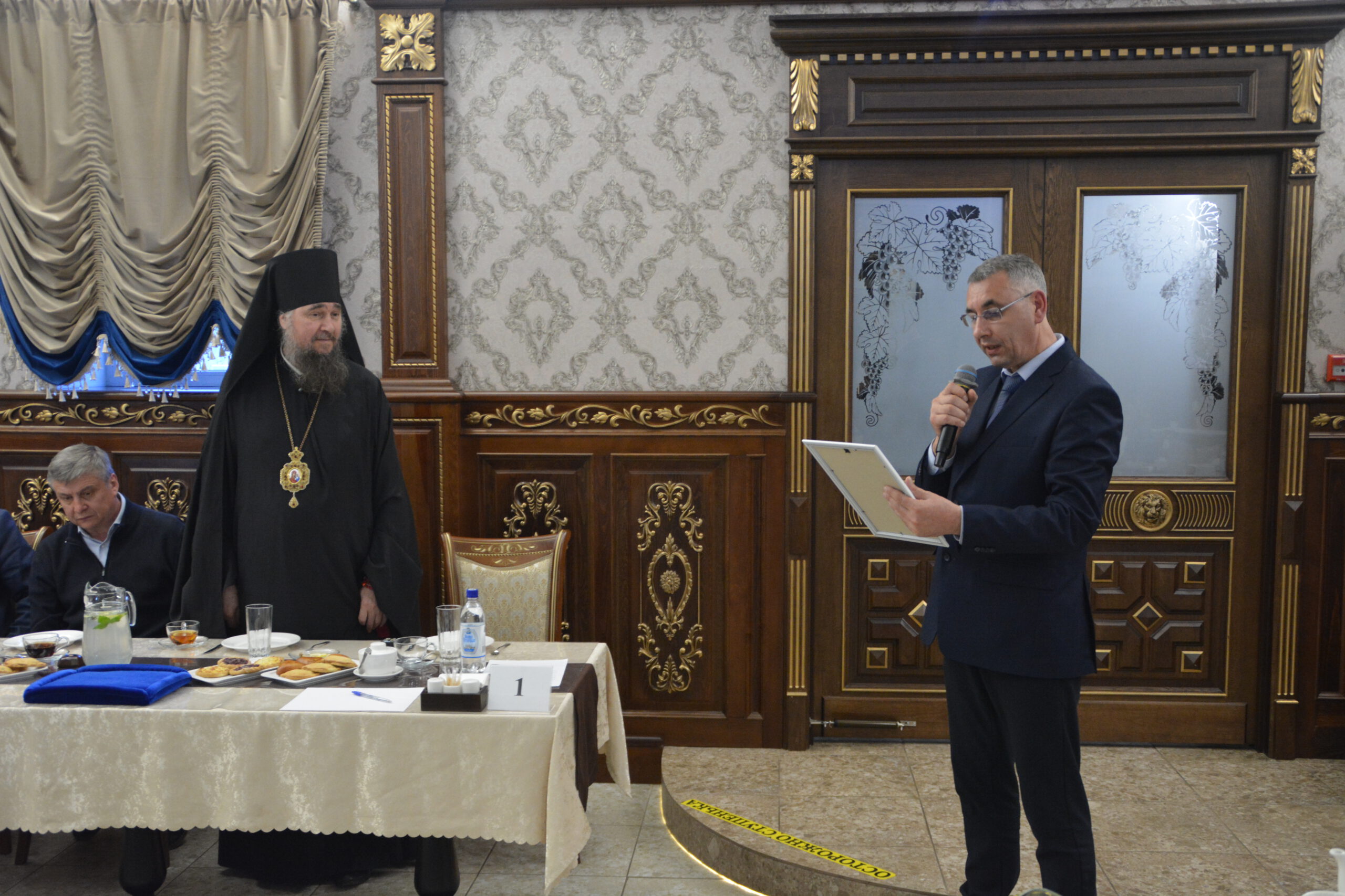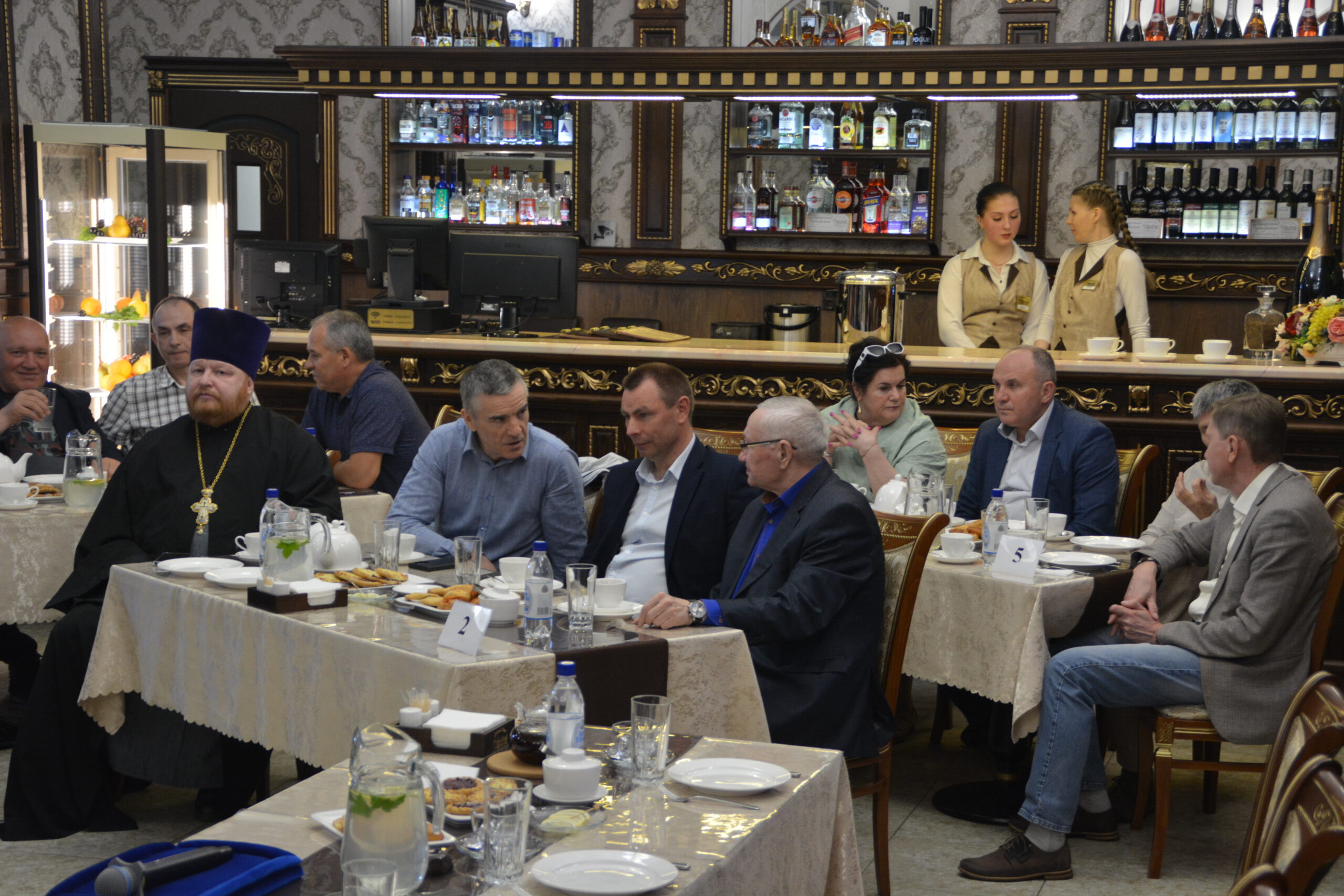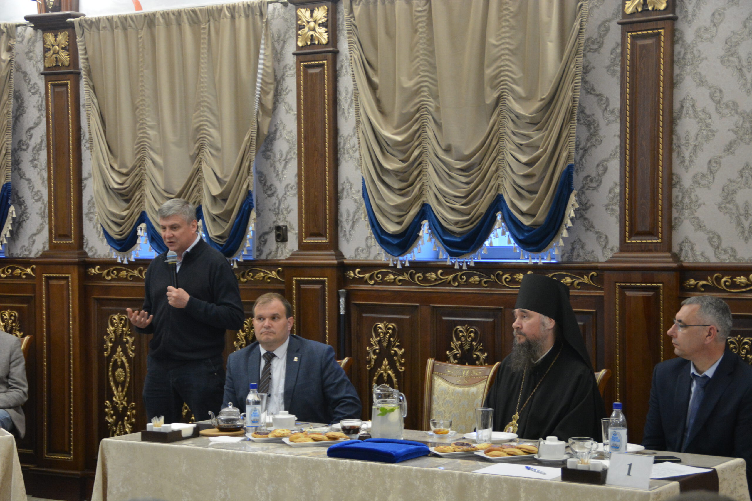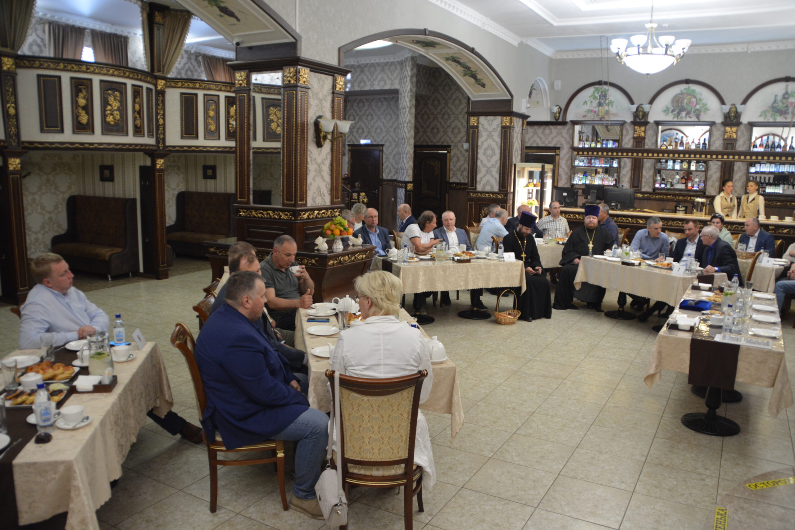 30 мая в ресторане «Любимый город» состоялась встреча представителей руководства округа и региона с духовенством Великоустюжской Епархии и местными предпринимателями. Делегацию Великоустюжской Епархии представили епископ Великоустюжский и Тотемский Фотий, а также протоиерей Дмитрий Фомин, благочинный Великоустюжского округа, и секретарь епархии иерей Фёдор Фомин.