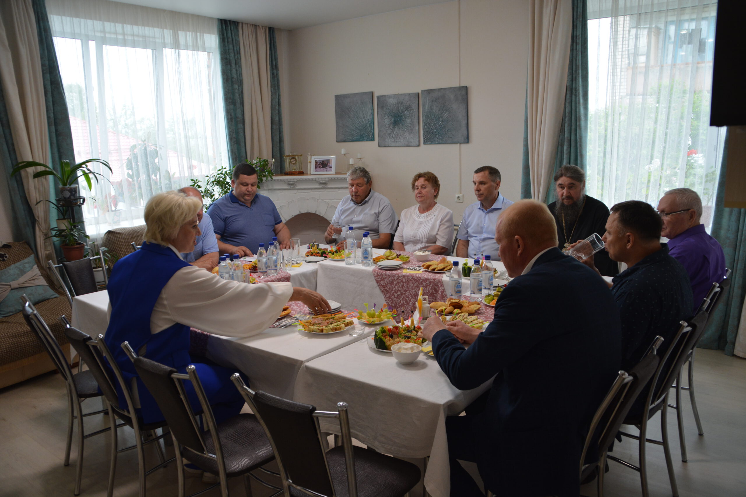 В пятницу 14 июня в городе Красавино состоялось заседание попечительского совета учреждения. Среди участников совета предприниматели Великого Устюга, и люди неравнодушные к судьбе опекаемых учреждения, в том числе и Епископ Великоустюжский и Тотемский Фотий. Вместе с руководителем Красавинского Дома социального обслуживания, Натальей Юрьевной Угловской, члены попечительского совета обсудили несколько проблемных вопросов деятельности Дома социального обслуживания и встретились с жителями Красавинского Центра реабилитации молодых инвалидов. Центр расположен в городе Красавино и представляет собой уютное общежитие с мастерскими и местами отдыха для молодёжи с ограниченными возможностями здоровья. У молодых инвалидов есть возможности реализовать свои таланты во многих областях трудовой деятельности, таких как гончарное дело, выпечка хлеба и кондитерских изделий, шитьё и кружевоплетение. Есть у опекаемых и собственный огород. Продукция, изготавливаемая красавинцами, пользуется спросом и в Великом Устюге. Многие из тех, кто проживает в центре реабилитации являются также и прихожанами красавинских храмов. Поэтому визиту архиерея молодые инвалиды были особенно рады и получили от владыки Фотия благословение и наставления.