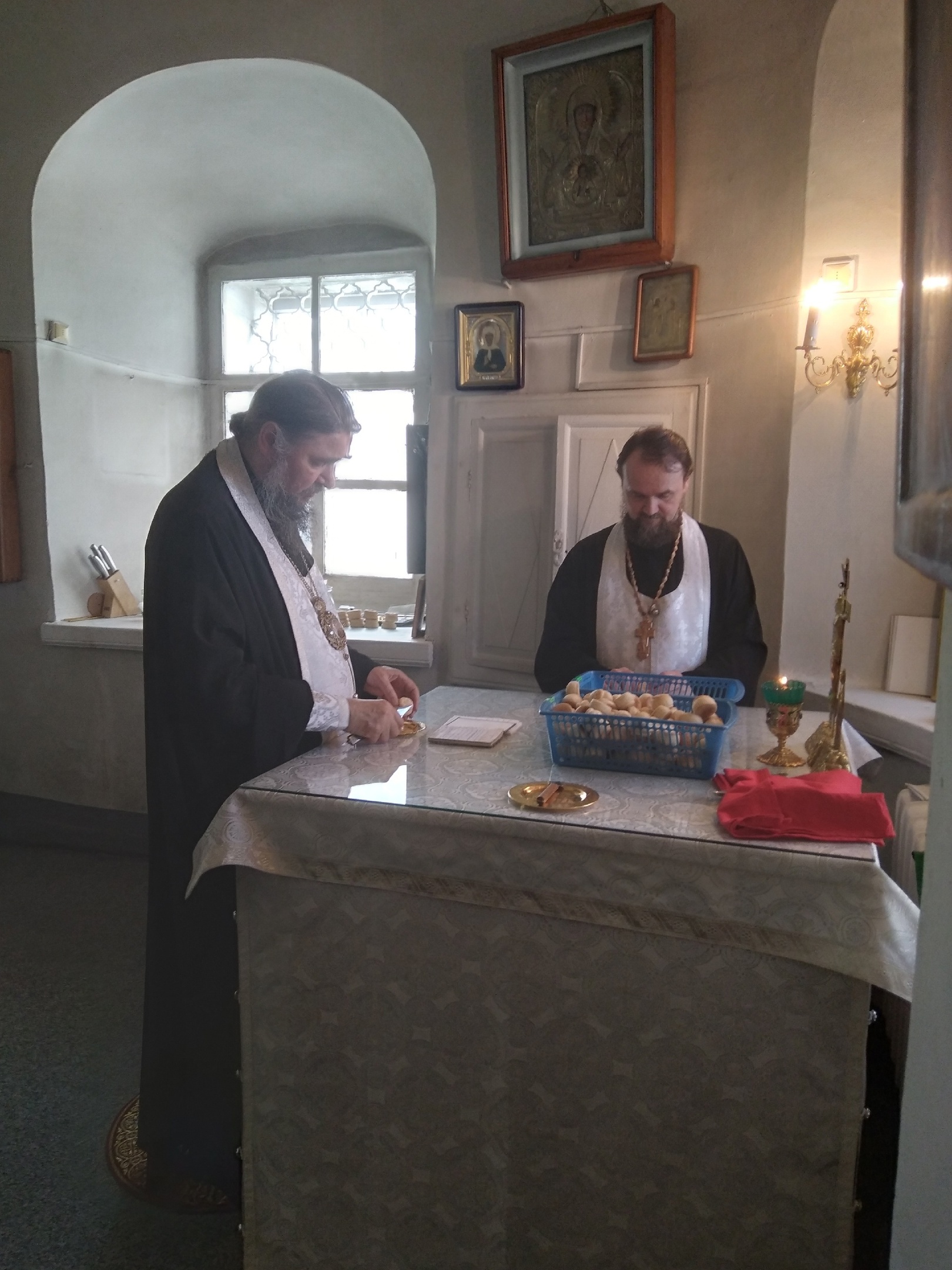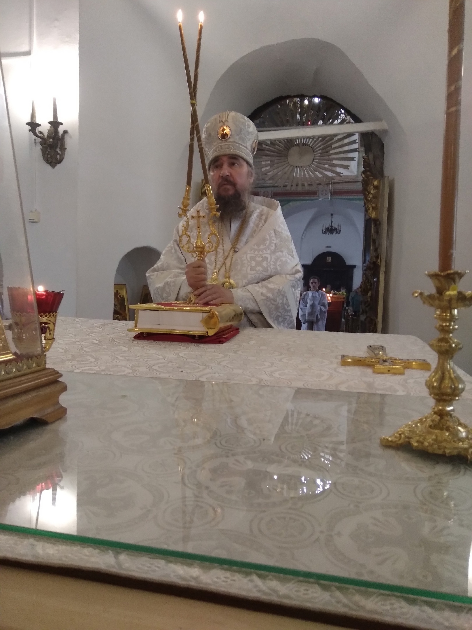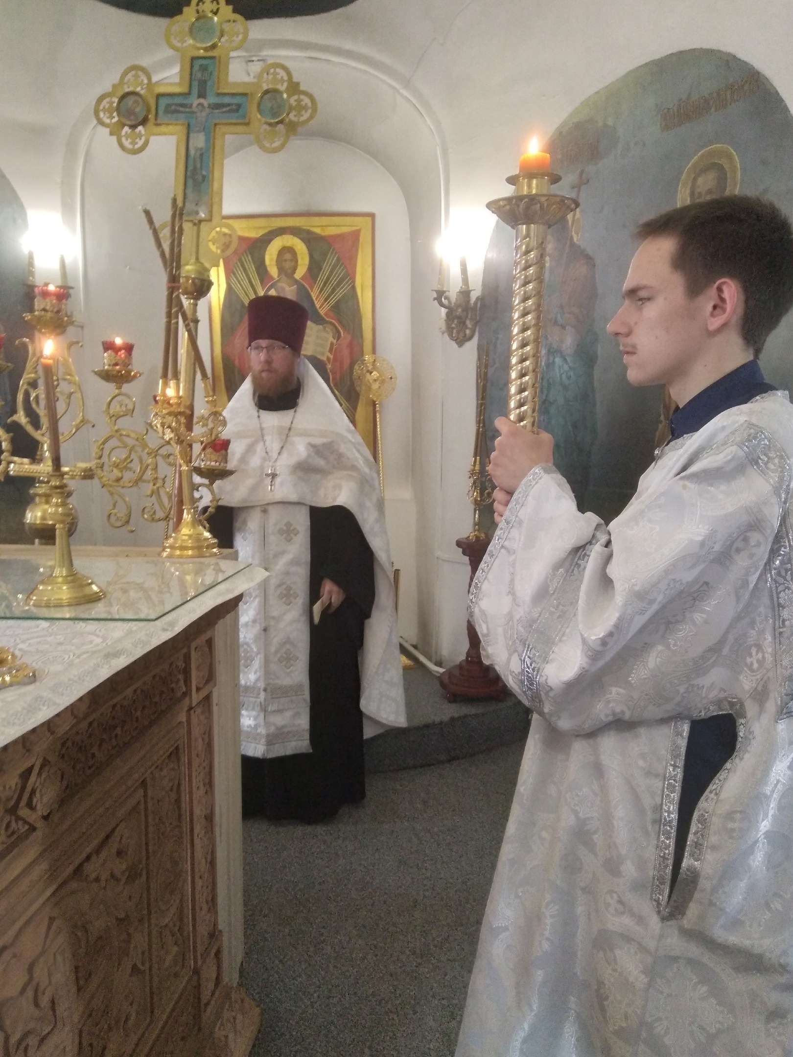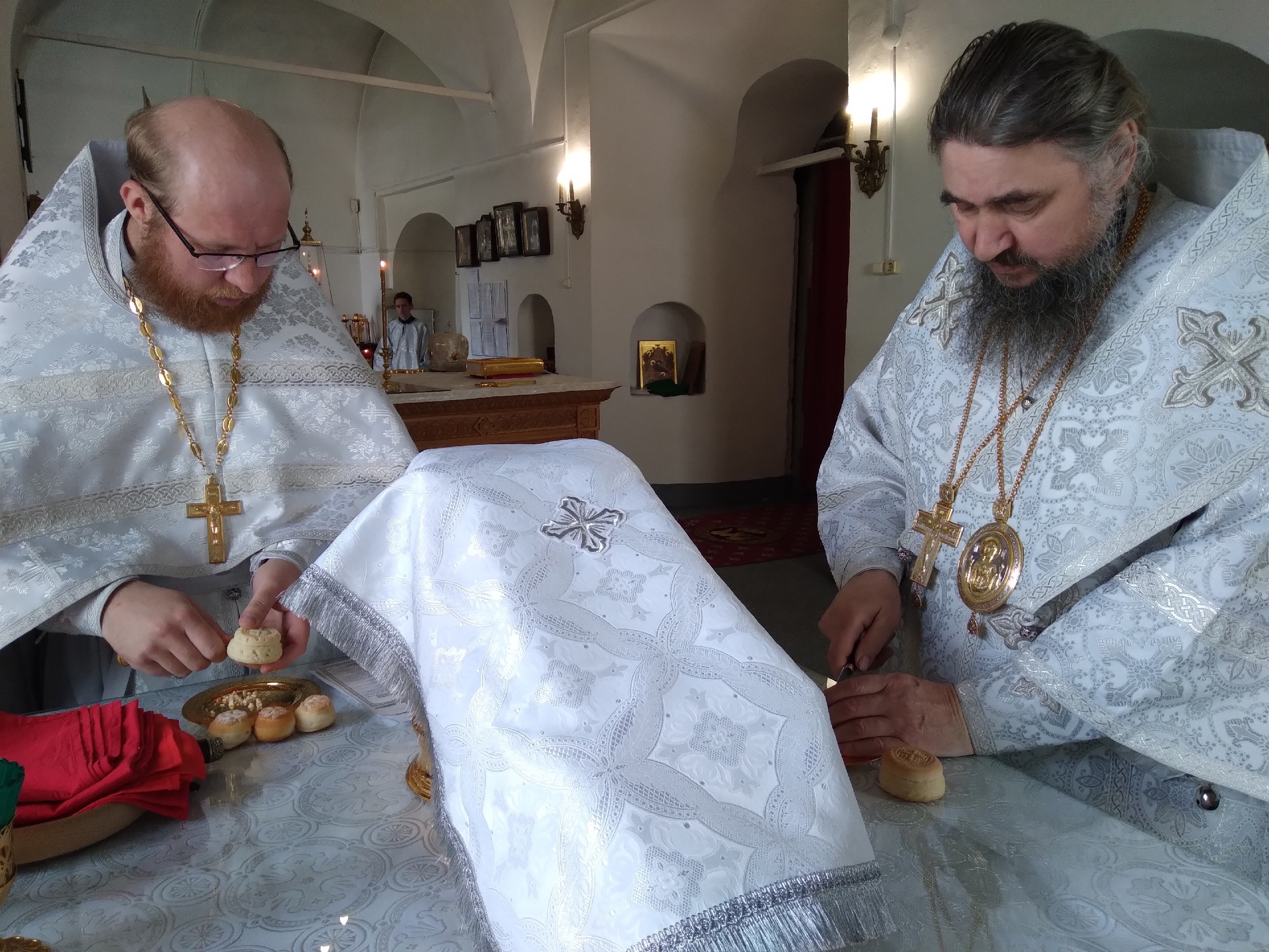 Владыке сослужили: ключарь Прокопьевского собора иерей Вячеслав Бураков и клирик Прокопьевского собора иерей Андрей Игнатьев. За богослужением пел праздничный хор Кафедрального собора под управлением регента Фоминой Л.А.