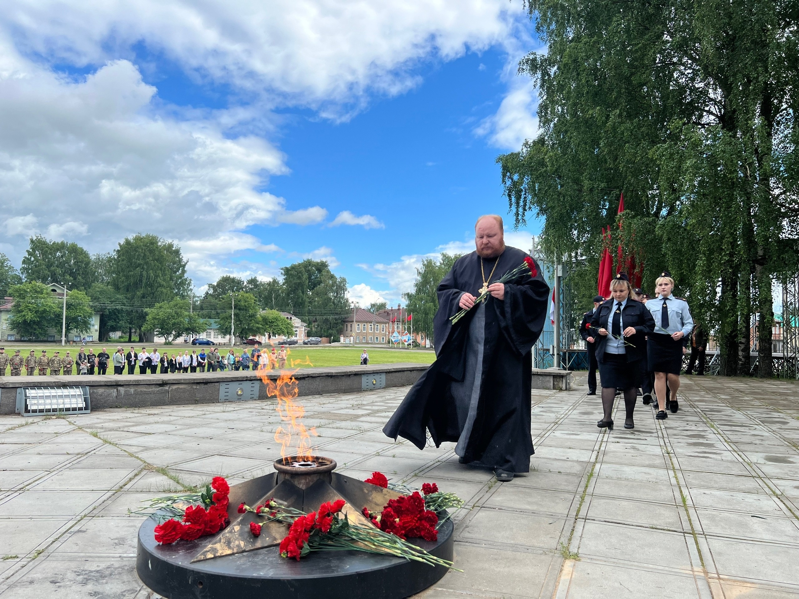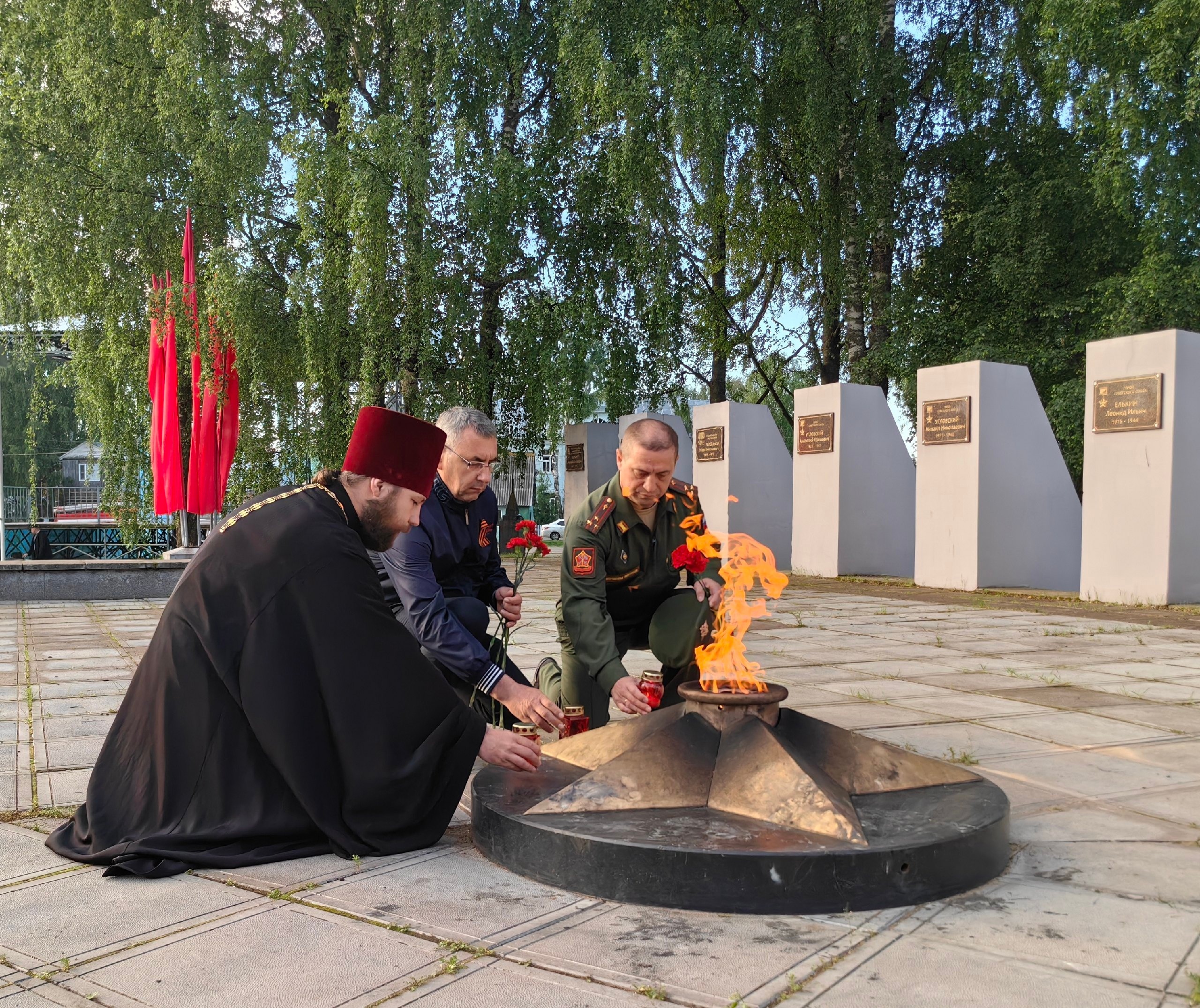 Почтить память тысяч устюжан не вернувшихся с Великой Отечественной Войны на площадь Славы к Вечному огню пришли сегодня благодарные потомки. Великоустюжскую епархию представляли благочинный Великоустюгского округа протоиерей Дмитрий Фомин, а также секретарь епархии иерей Фёдор Фомин.