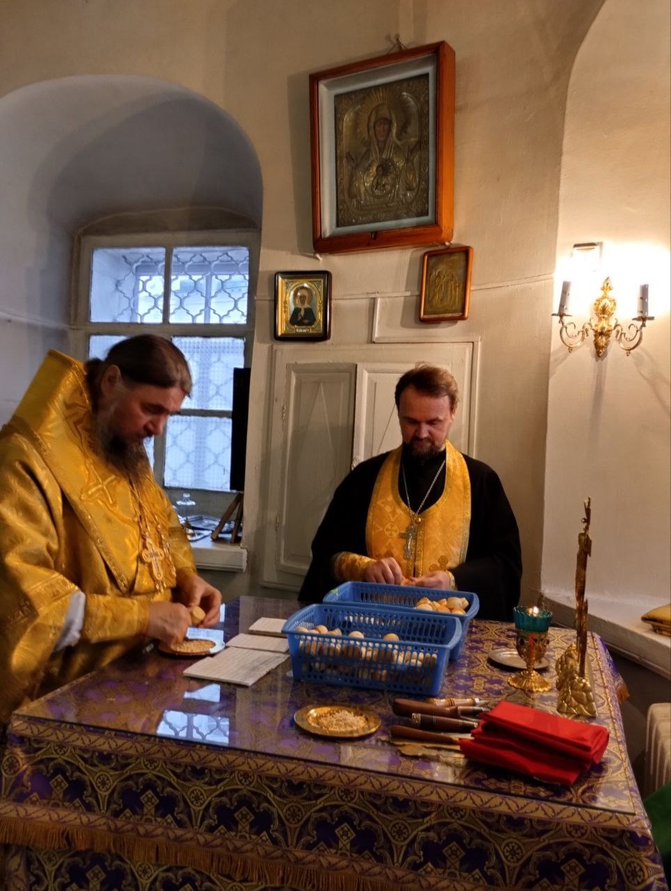 Владыке сослужили: ключарь Прокопьевского собора иерей Вячеслав Бураков, клирик Прокопьевского собора иерей Андрей Игнатьев, а также настоятель храма Симона Воломского в Полдарсе иерей Дмитрий Живаев.