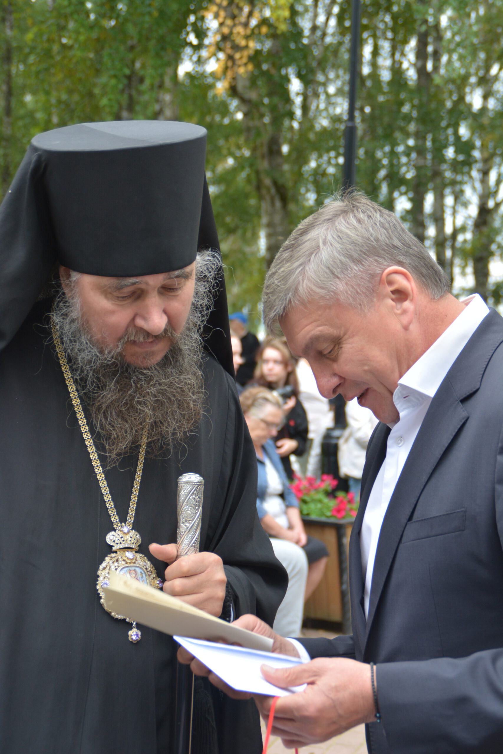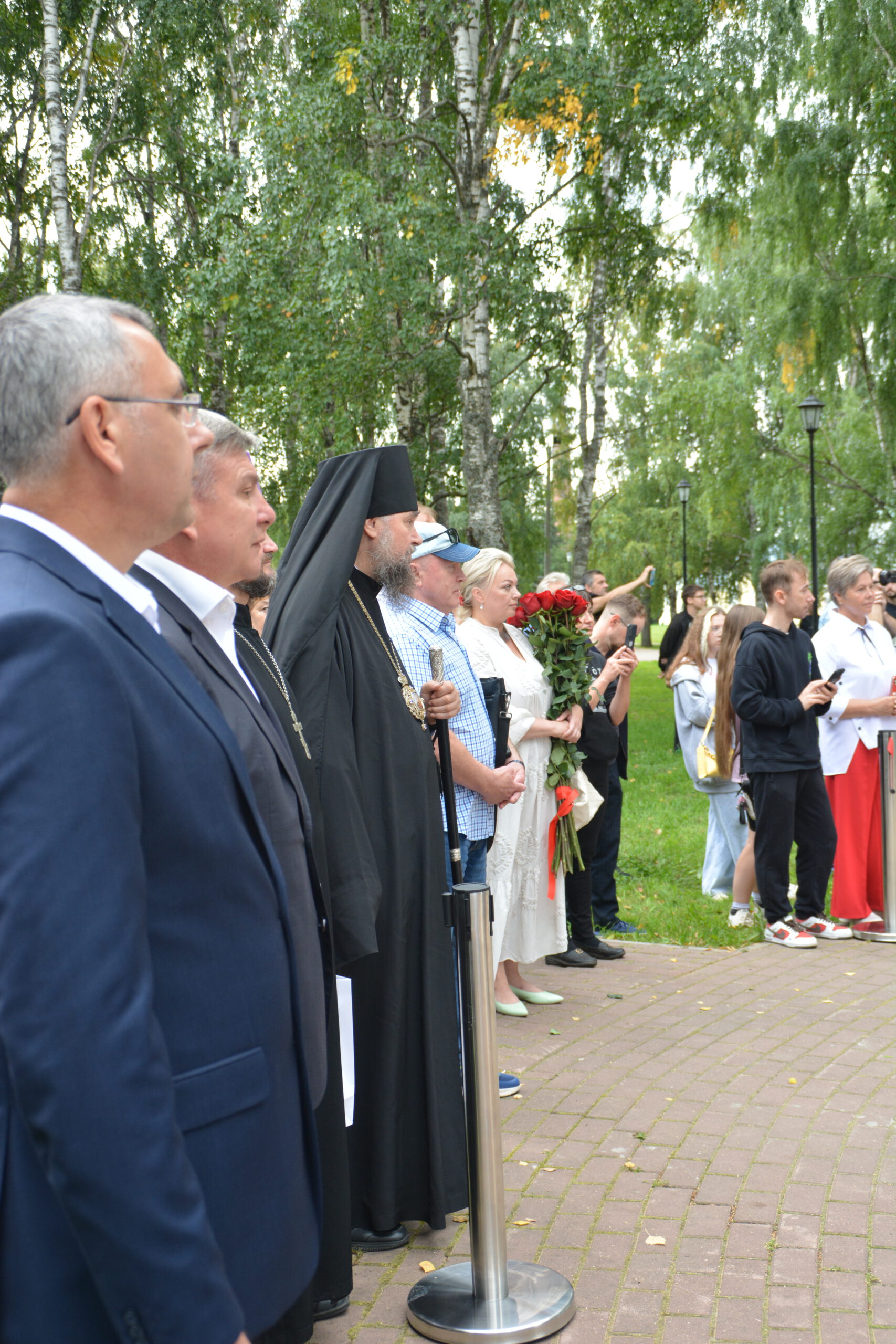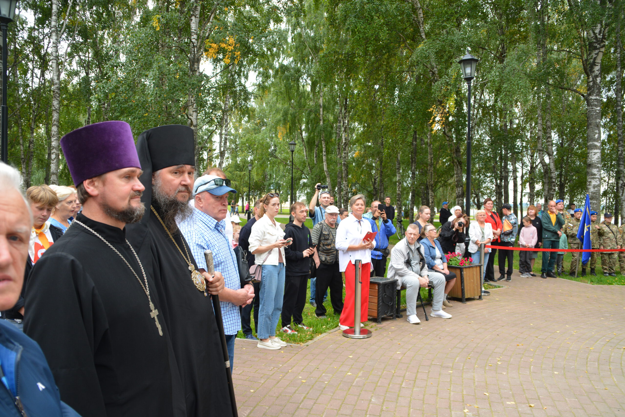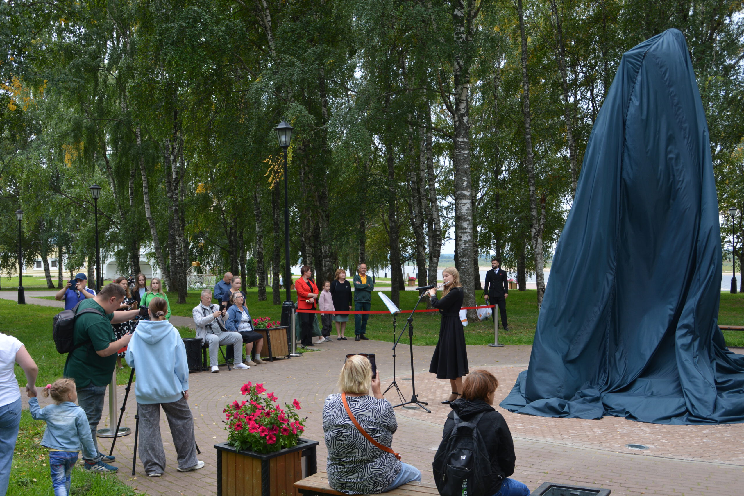 Субботним утром 24 августа множество устюжан собрались в сквере неподалёку от Никольской церкви. Здесь состоялась церемония открытия памятника императору Петру I. Пётр Великий несколько раз посещал Великий Устюг и организовал в Орловской роще посадку деревьев, подходящих для использования в качестве корабельных мачт. Инициатором установки памятника царю-реформатору стал устюжский предприниматель и меценат Василий Михайлович Перевалов. Почётным гостем церемонии стал Преосвященный Фотий. Владыка удостоился чести вместе с Василием Переваловым снять с памятника покрывало и явить его устюжанам.