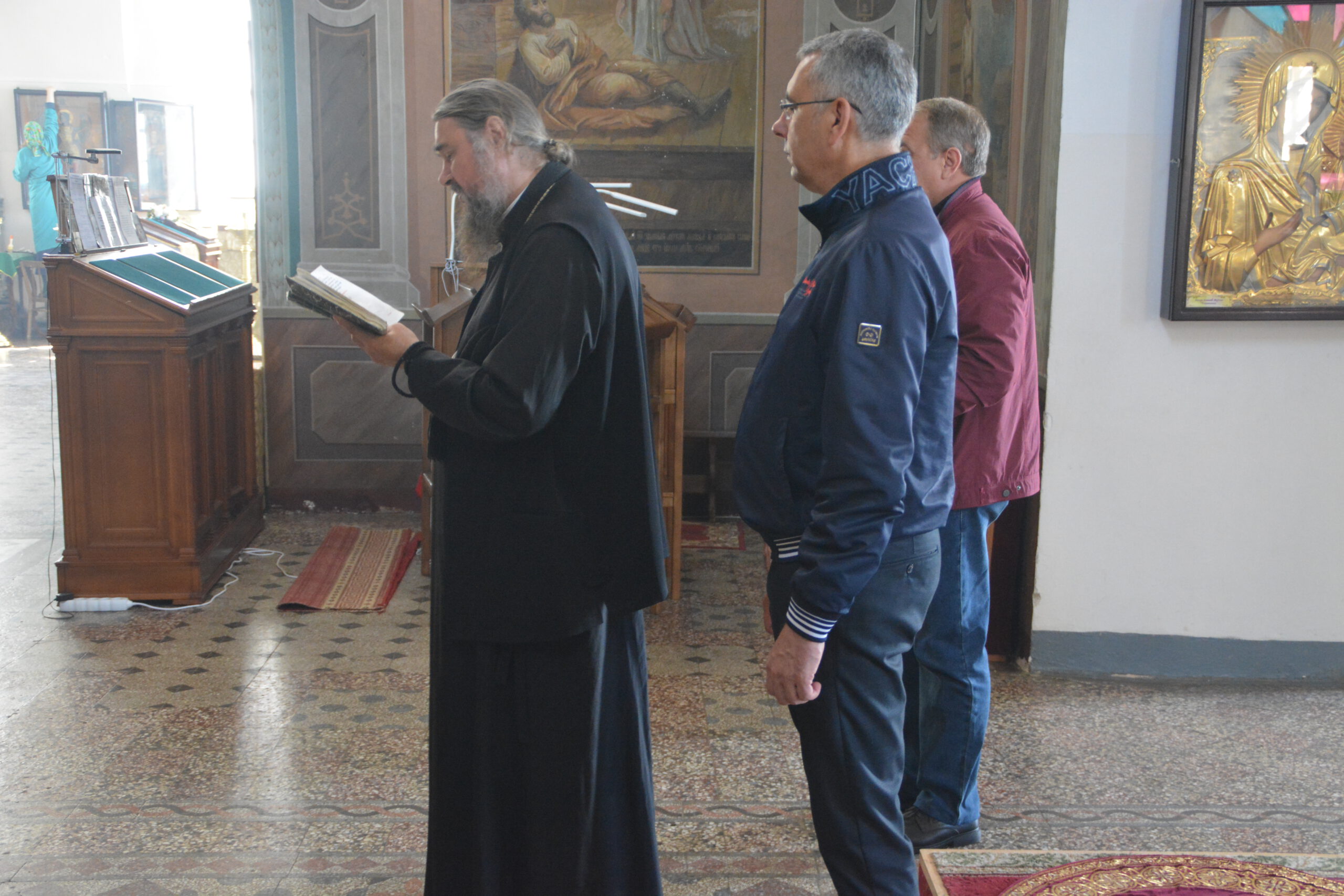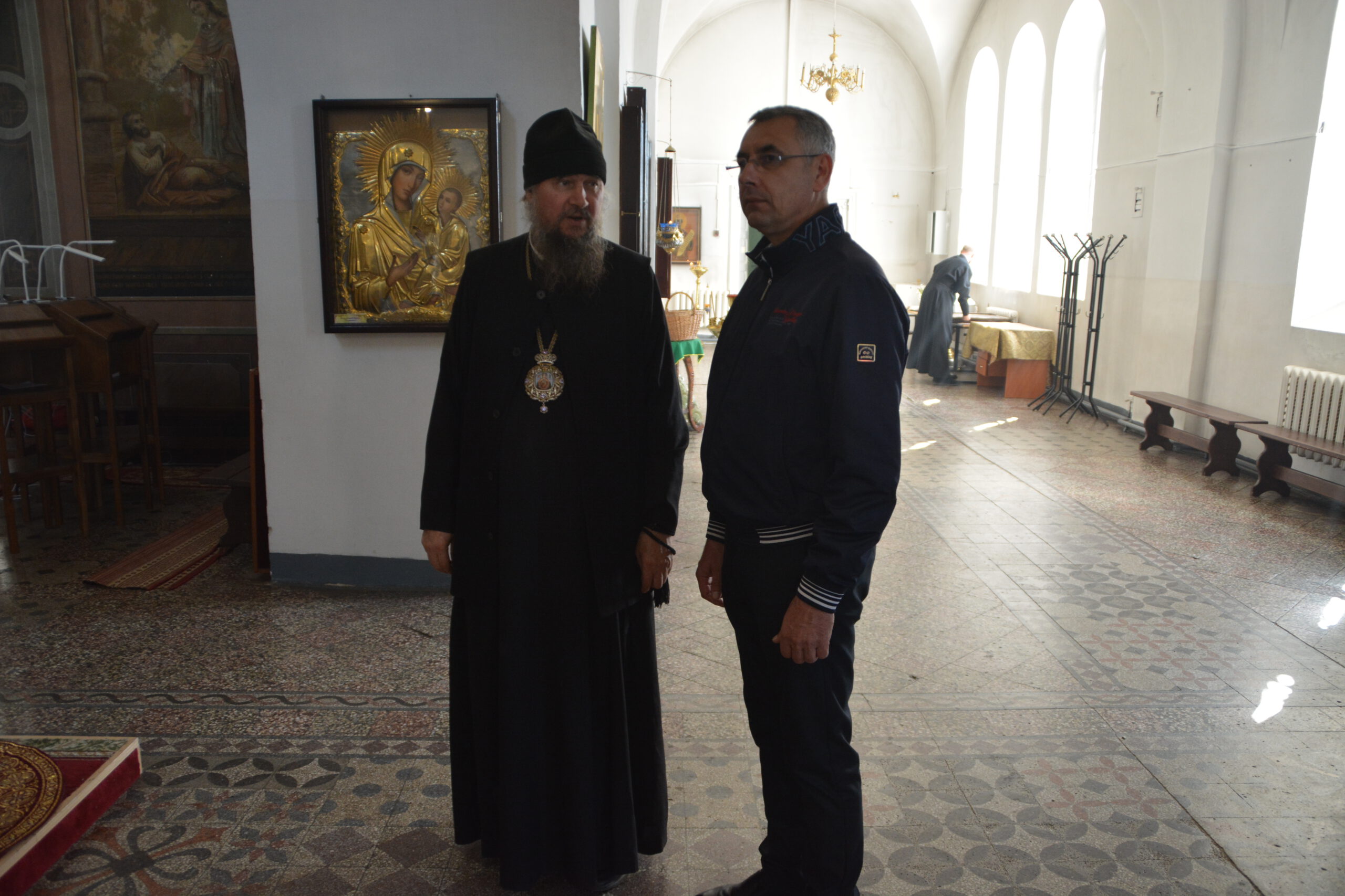 Затем владыка Фотий вместе с Иваном Алексеевичем отправились в Благовещенскую церковь Успенского Собора, где обсудили вопросы взаимодействия Великоустюжской епархии и окружных властей. В частности в деле сохранения и восстановления Михайло-Архангельского монастыря.