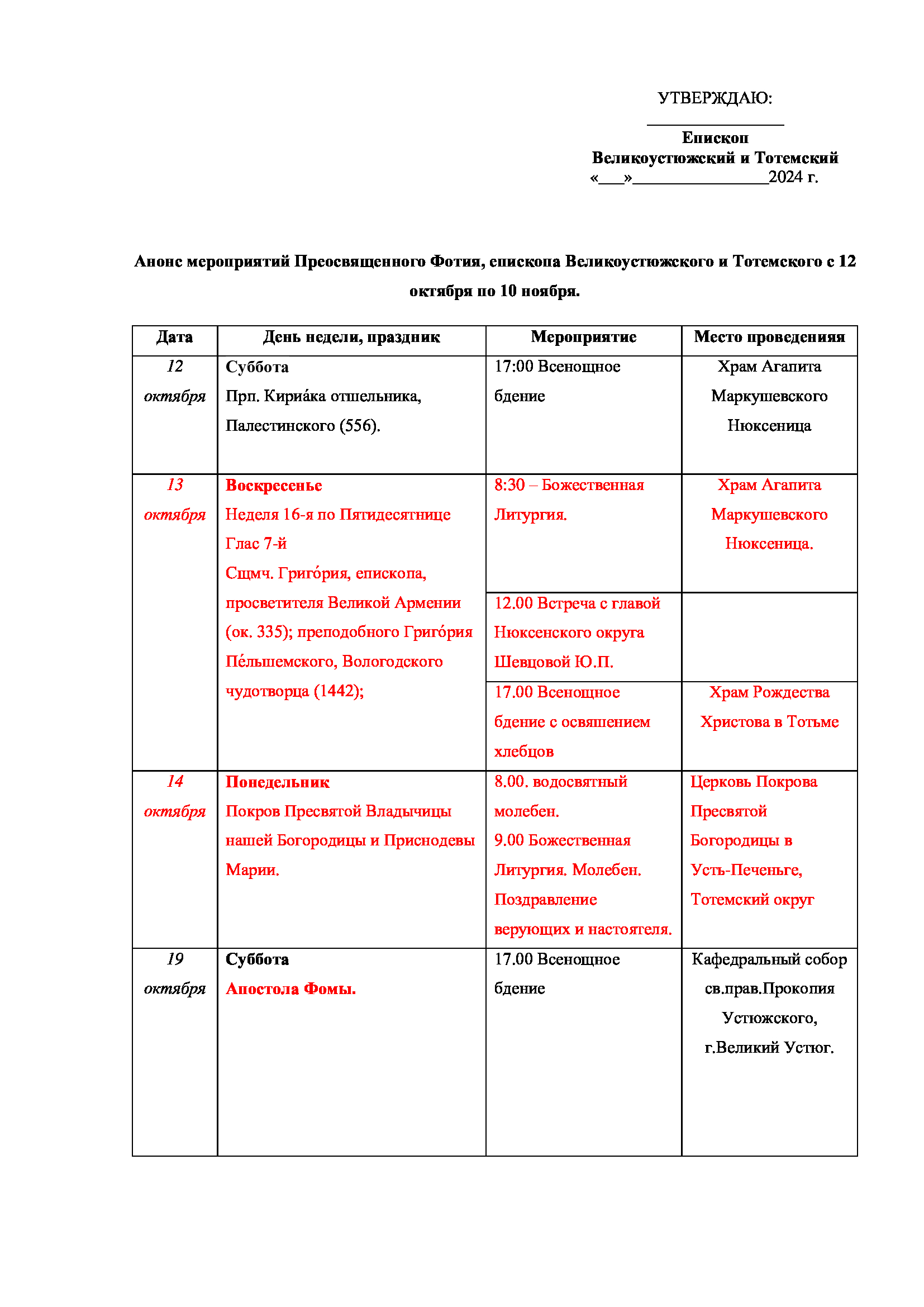 С 20 по 22 марта в Великом Устюге, по благословению