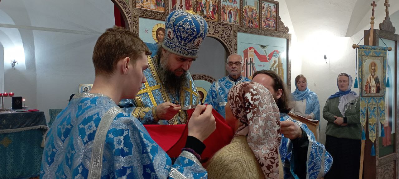 В субботу 26 октября в праздник Иверской иконы Божией Матери епископ Великоустюжский и Тотемский Фотий совершил Божественную Литургию в Благовещенском храме деревни Благовещенье. Владыке сослужил настоятель храма, иерей Андрей Игнатьев. После Литургии был совершён праздничный молебен.