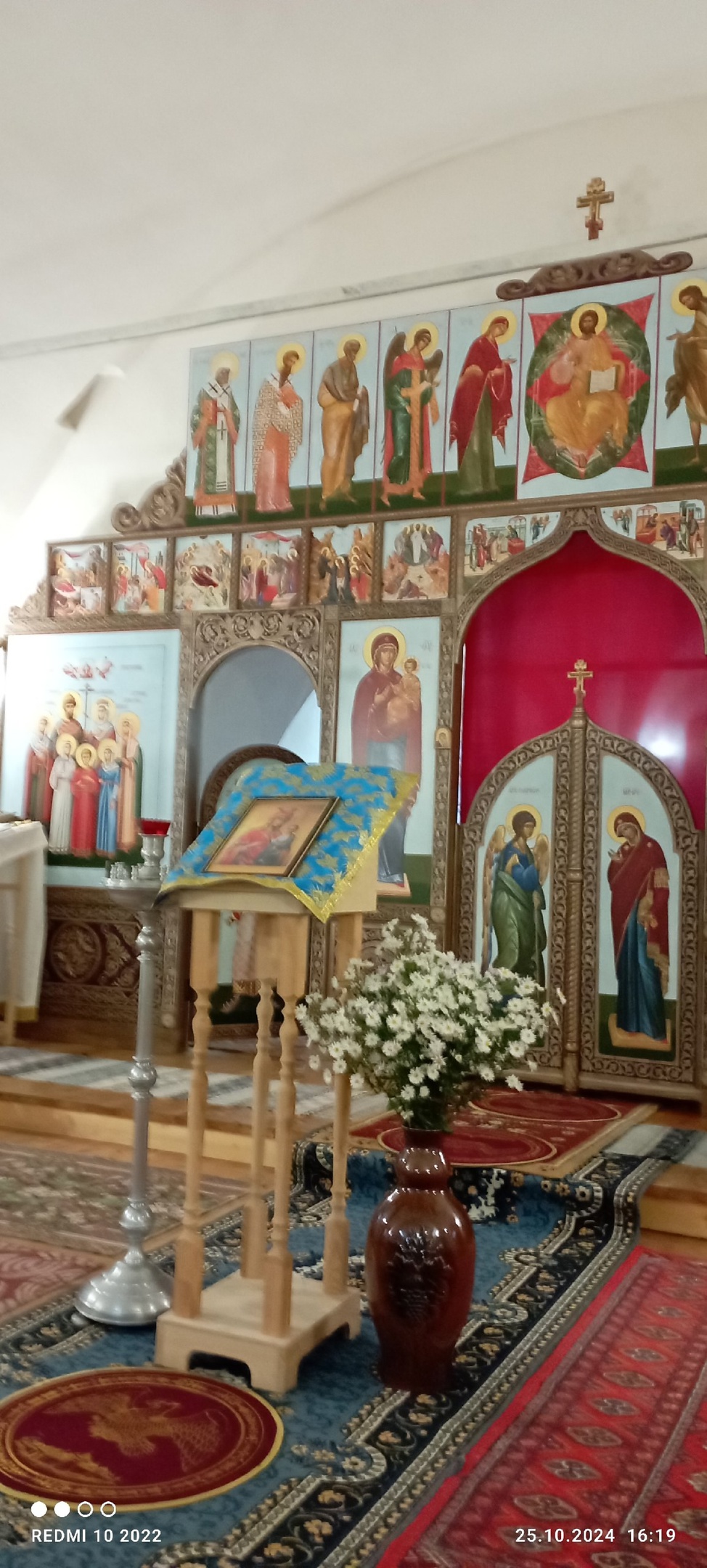 «Во имя Отца и Сына и Святаго Духа! Возлюбленные отцы, братья и сестры, досточтимый отец настоятель, отец Андрей, милостию Божией мы совершили сегодня Божественную Литургию в историческом храме Благовещенья Пресвятой Богородицы. Этот храм был освящён в 1747 году, он является четырёх престольным храмом. Нижний храм освящен в честь Введения во храм Пресвятой Богородицы, верхний в честь Благовещенья Пресвятой Богородицы, справа — придел в честь Святой Троицы и слева — придел в честь мучеников Флора и Лавра. Удивительно, как в столь давнее время здесь был построен столь большой и дивный храм. Как и многие храмы и этот храм пережил свою трагедию. Он был закрыт в 1931 году, первоначально здесь размещалась школа, потом зернохранилище и в последнее время клуб. Сегодня Святая Русь возвращается к своим истокам и этот храм вновь обретает своё лицо. Я искренне благодарю отца настоятеля и местных жителей, которые любят этот храм, и приложили к его возрождению немало усилий. С возрождением храма возрождается и душа человеческая, душа деревни. В этом храме два придела в честь Пресвятой Богородицы. Сегодня мы празднуем образ Иверской иконы Божией Матери. Благовещенская церковь была освящена в 1747 году, а за сто лет до этого в 1648 году в Москву с Афона была принесена эта чудотворная икона Божией Матери. Я недавно был в Москве и посетил Иверскую часовню у Воскресенских ворот, которые располагаются между храмом Казанской иконы Божией Матери и Историческим музеем. Постоял, послушал акафистное пение, которое там совершается ежедневно, часовня была полна народа. К нам на Русь эта икона пришла в непростые времена, когда Русской Православной Церковью управлял патриарх Никон. Афонские монахи обретшие Иверскую икону на водах поставили её в алтарь, но она чудесным образом перенеслась и оказалась над вратами. Монахи вернули икону в алтарь, а она на следующий день вновь оказалась над вратами. Так повторялось несколько раз, пока сама Богородица не явилась монахам, и сообщила, что она хочет не чтобы они её охраняли, а чтобы она хранила монастырь. Вот и сейчас список чудотворного образа хранится в сердце нашей страны, оберегая Святую Русь, наше Отечество. Пресвятую Богородицу мы называем «Благой вратарницей, райские двери нам отверзающей», «Столпом огненным, наставляющим сущия во тьме». Часто мы обращаемся с молитвами к Богородице. Сам я не раз слышал в детстве как моя мать обращалась к Божией матери. Нас было девять детей, и я верил, что именно предстательство Богородицы хранит нашу семью. Когда коленопреклонно наш русский народ со слезами обращался к Богородице, она не оставляла наших предков без внимания в годы испытаний. Будем же любовь, подобную любви Божией Матери к нам прививать нашим детям. «Много бо может моление матернее…», когда мы обращаемся к нашей заступнице усердной, Матери Божией, матери всех матерей, она слышит нас и помогает. Пресвятая Богородица, помогай нам! Аминь!»