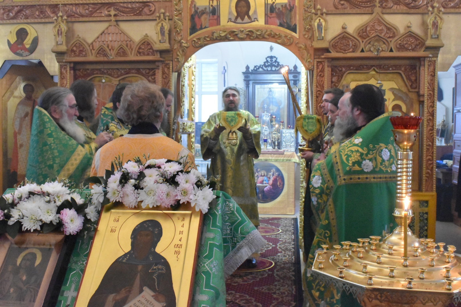 17 декабря в день памяти великомученицы Варвары и прп. Иоанна Дамаскина епископ Великоустюжский и Тотемский Фотий совершил Божественную Литургию в храме Происхождения честных древ Животворящего Креста Господня в с. им. Бабушкина. Накануне архиерей совершил полиелейное богослужение. Владыке сослужили: настоятель храма Происхождения честных древ Животворящего Креста Господня иерей Иоанн Алешин, благочинный Тотемского округа иерей Серафим Розин настоятель храма прп. Вассиана Тиксненского пос. Юбилейный, протоиерей Георгий Титов настоятель храма Рождества Христова г. Тотьмы, духовник Великоустюжской епархии, настоятель Спасо-Суморина монастыря в Тотьме иеромонах Феодосий (Писарев), иерей Михаил Мелентьев настоятель храма Святой Троицы г. Тотьмы, иерей Иоанн Жирохов настоятель храма безсребренников Космы и Дамиана в Логдузе, иерей Николай Денисов клирик Спасо- Суморина монастыря г. Тотьмы. Священнослужители, а также прихожане храма поздравили с Днём Тезоименитства священника Спасской Леденгской церкви отца Иоанна Алёшина. Батюшке были вручены подарки и сказаны добрые слова. По окончании богослужения о. Иоанну было провозглашено многолетие.