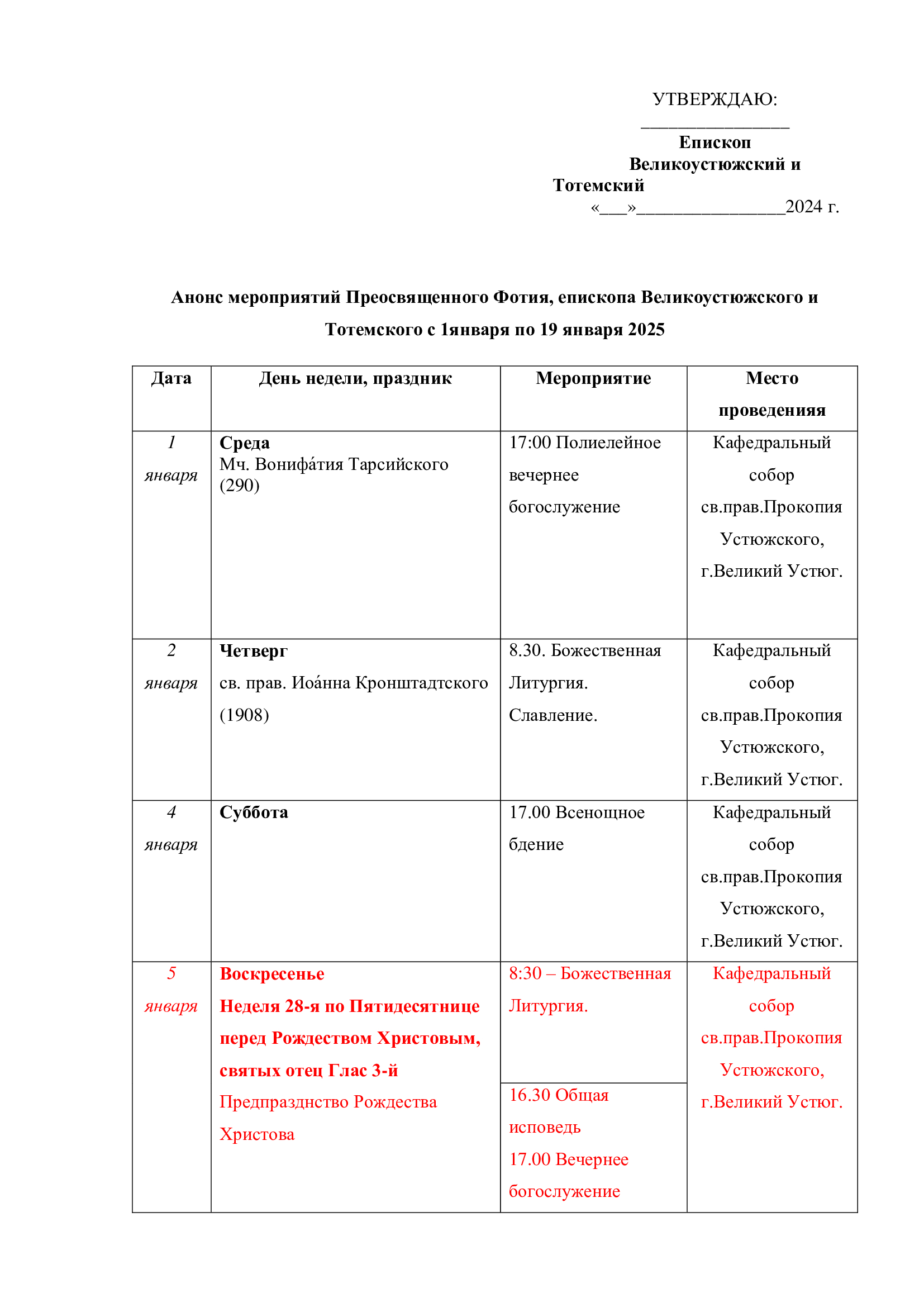 С 20 по 22 марта в Великом Устюге, по благословению