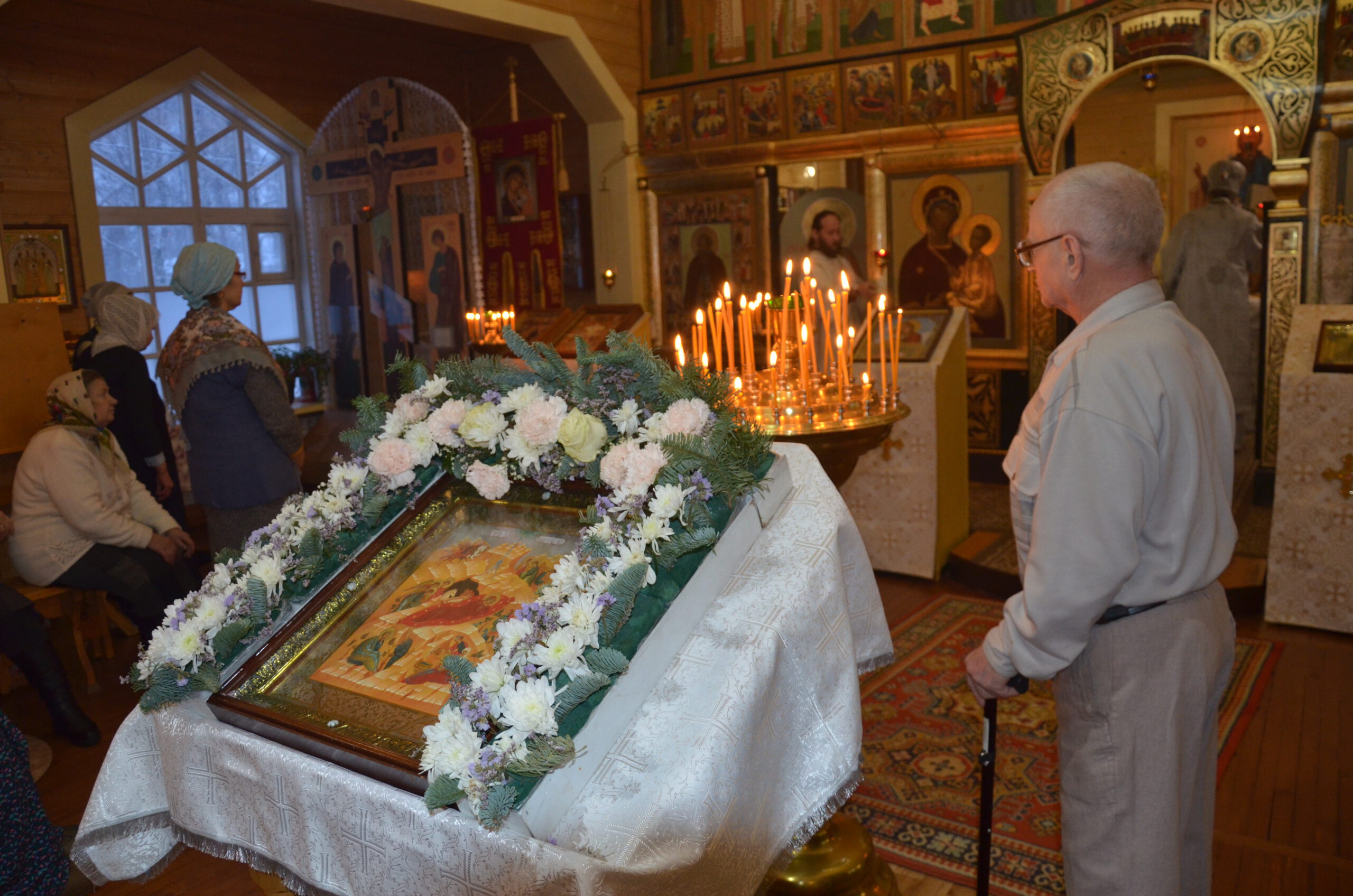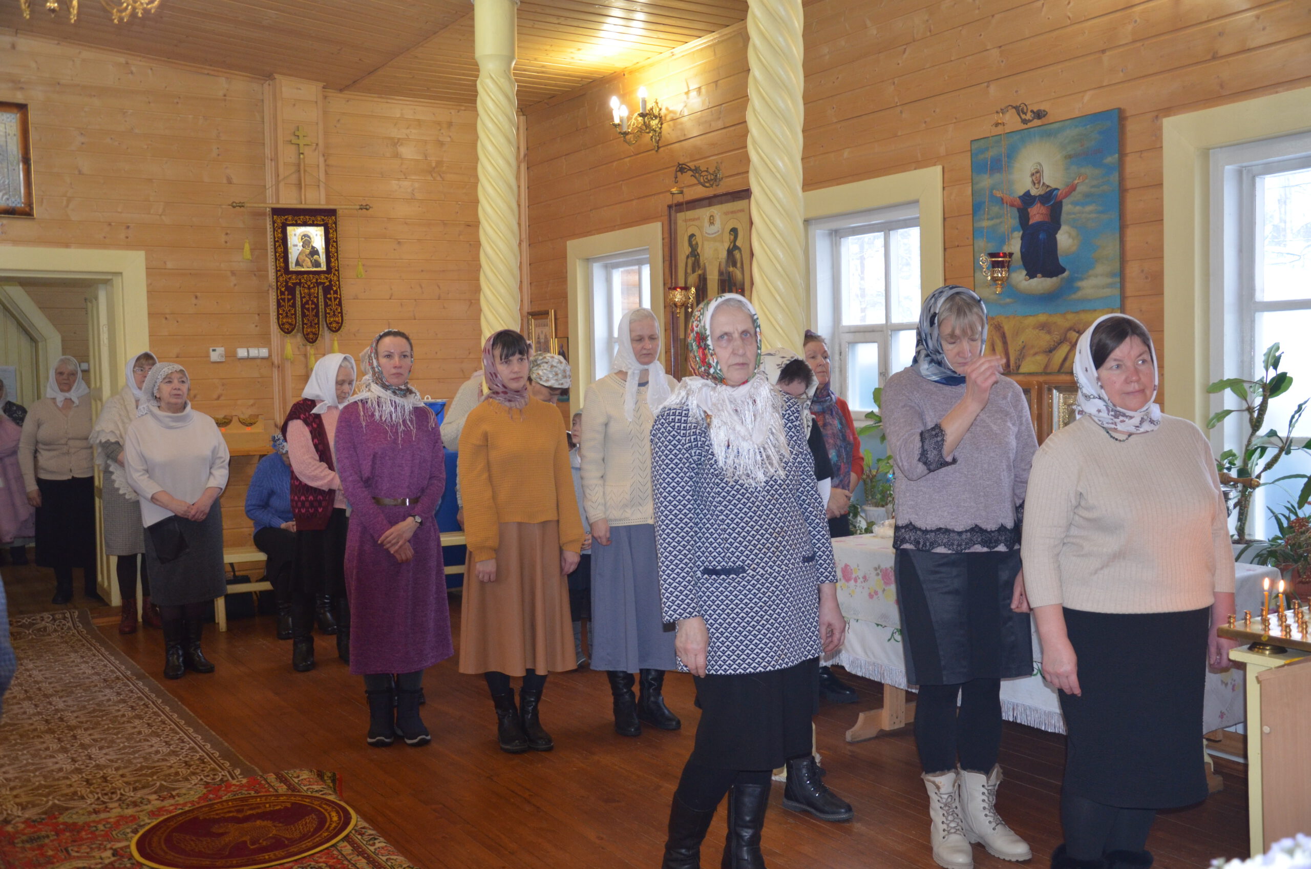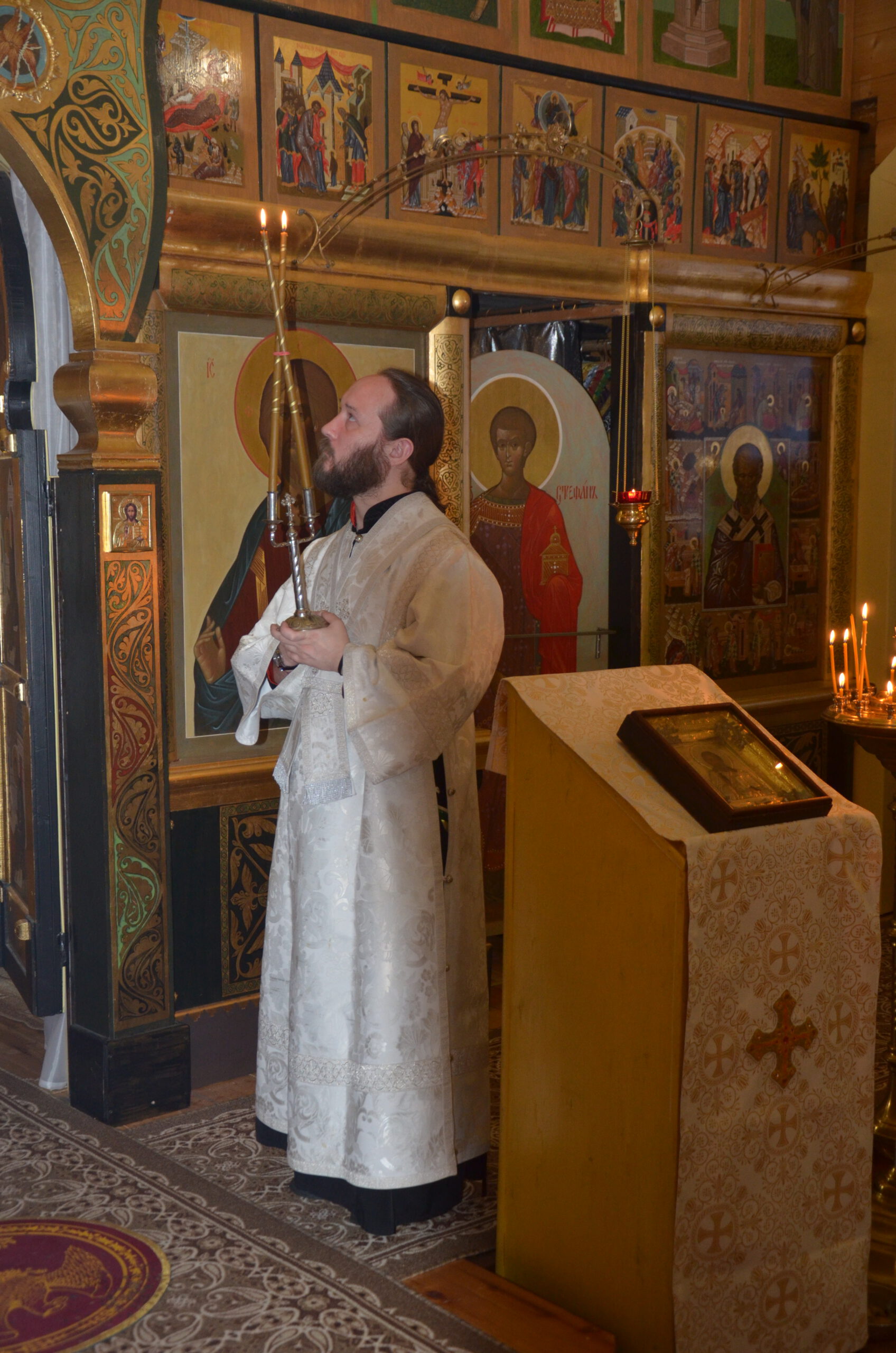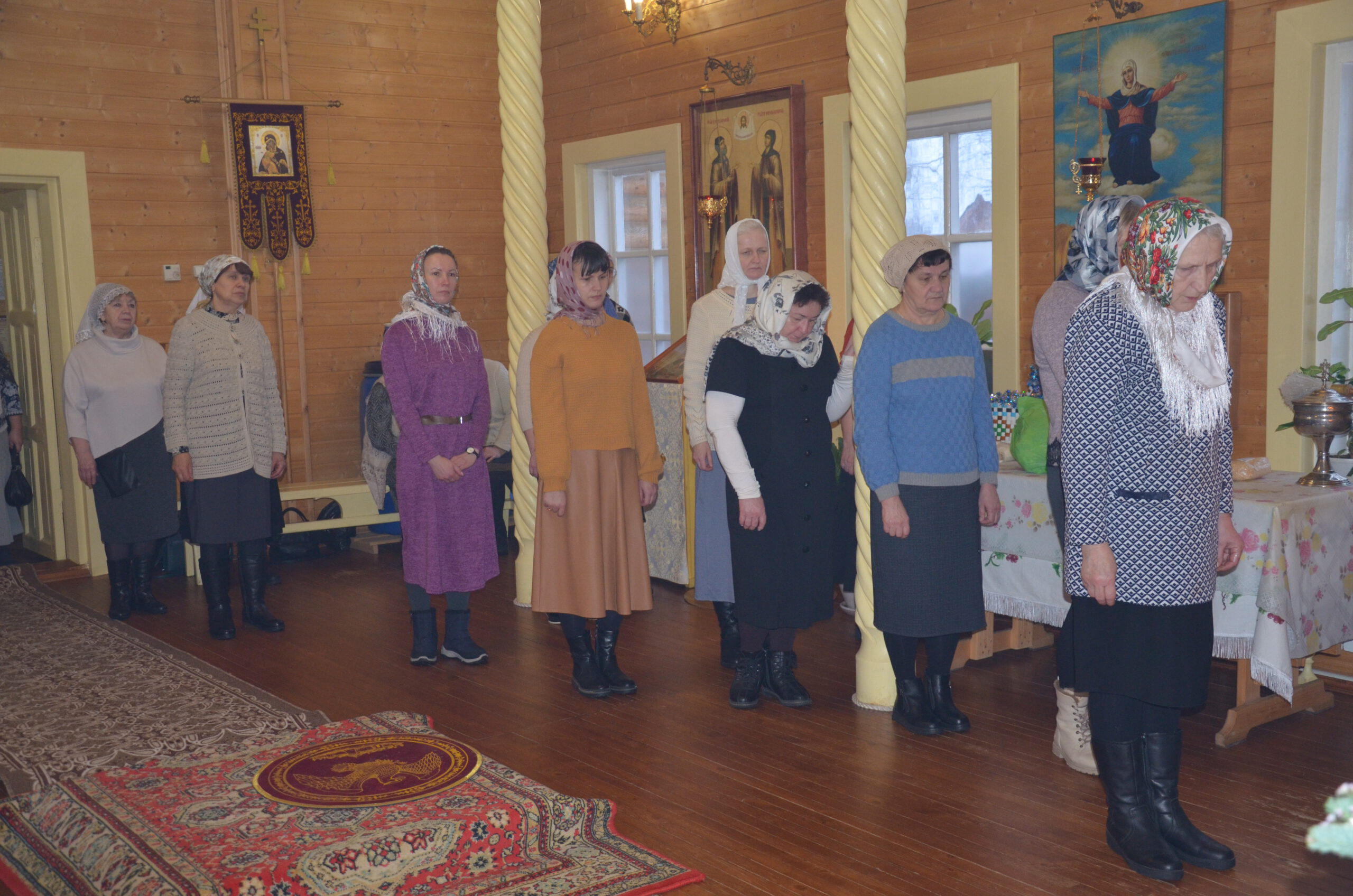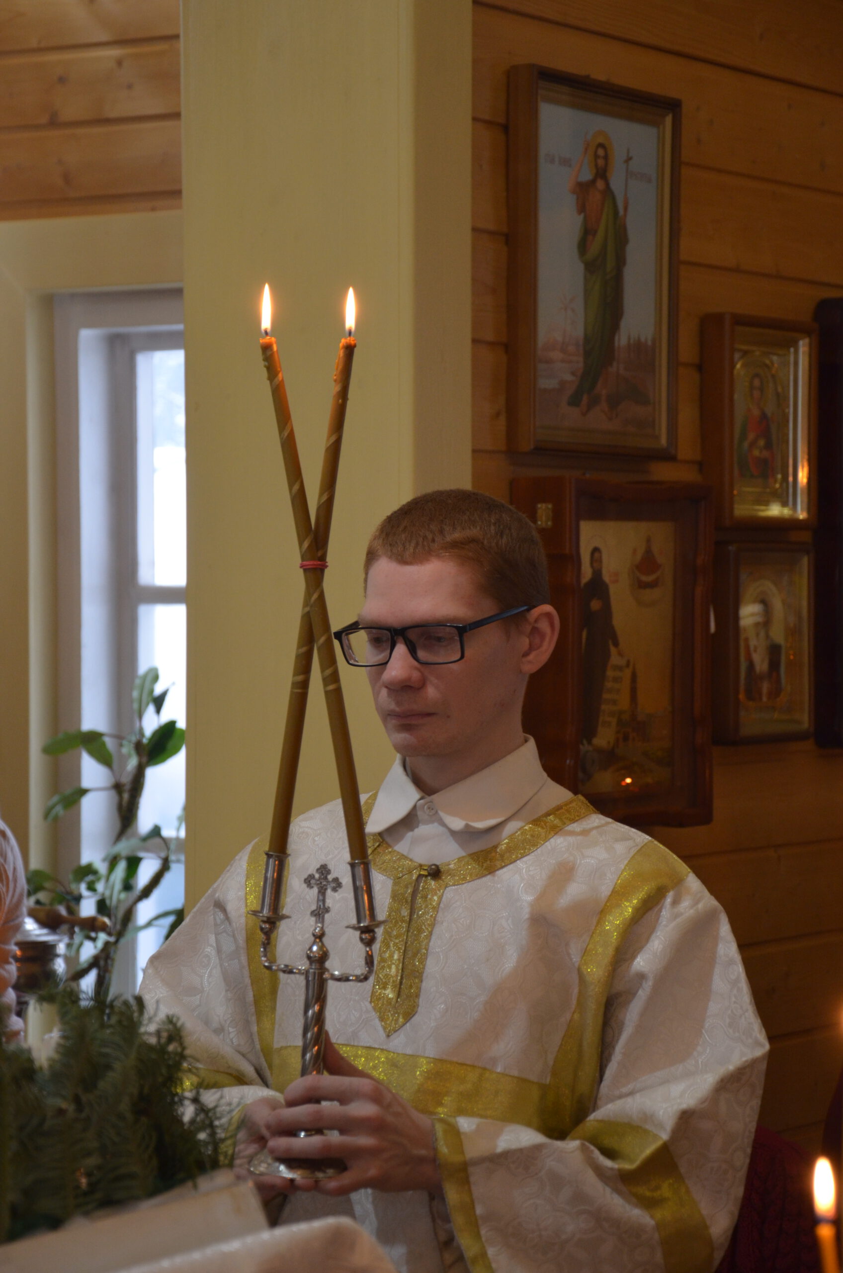 Владыке сослужили: благочинный Тарногского округа протоиерей Николай Кручёных, настоятель храма Агапита Маркушевского в Нюксенице иерей Максим Кривошанов , настоятель храма Богоявления Господня в Городишне иерей Александр Чудинов.