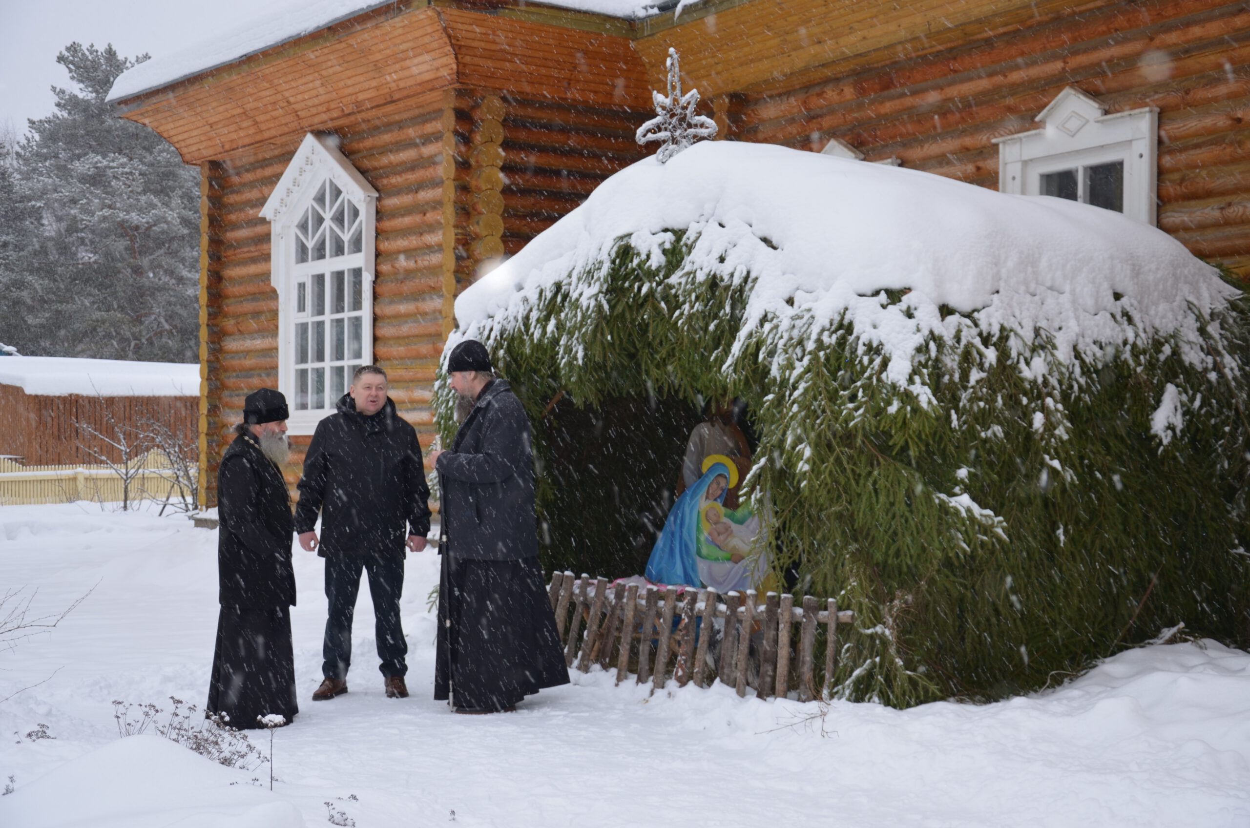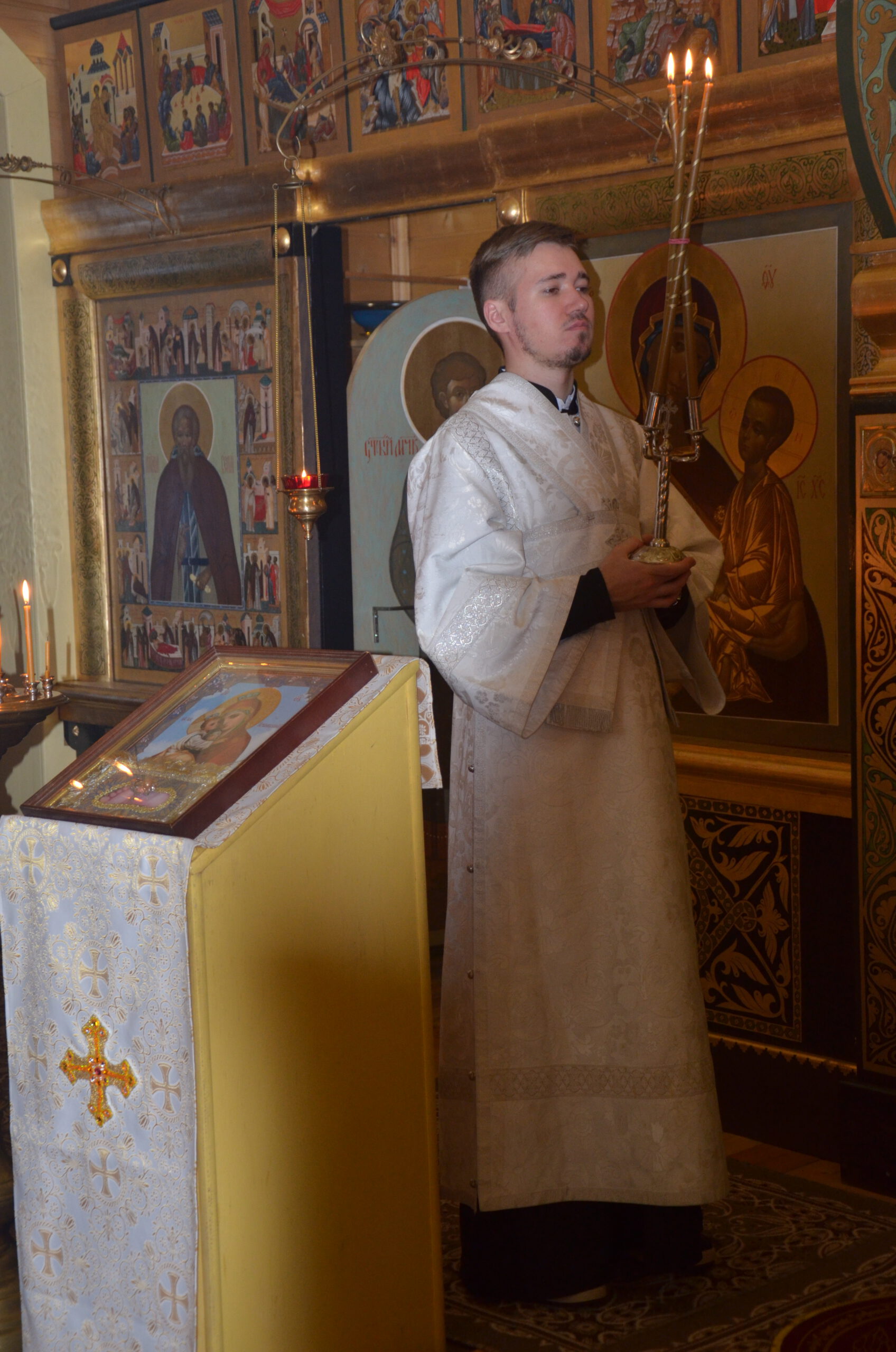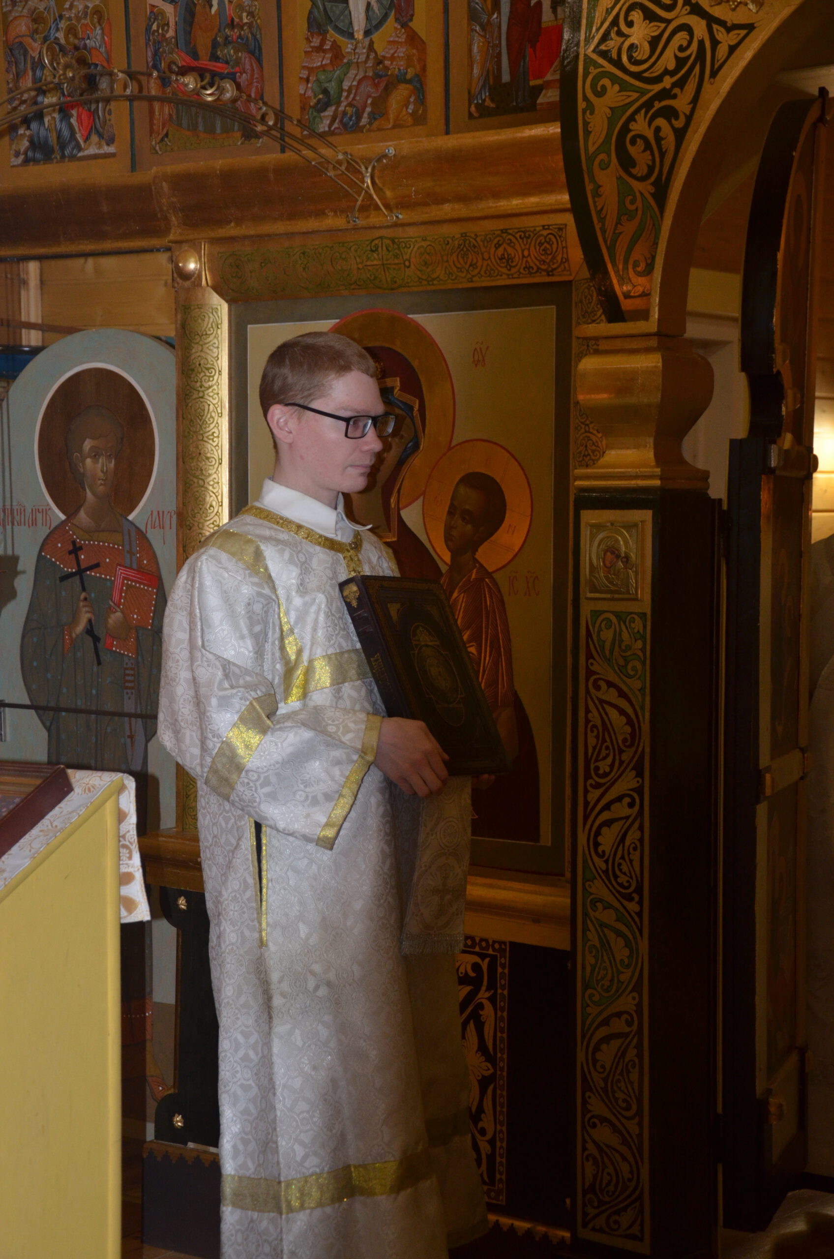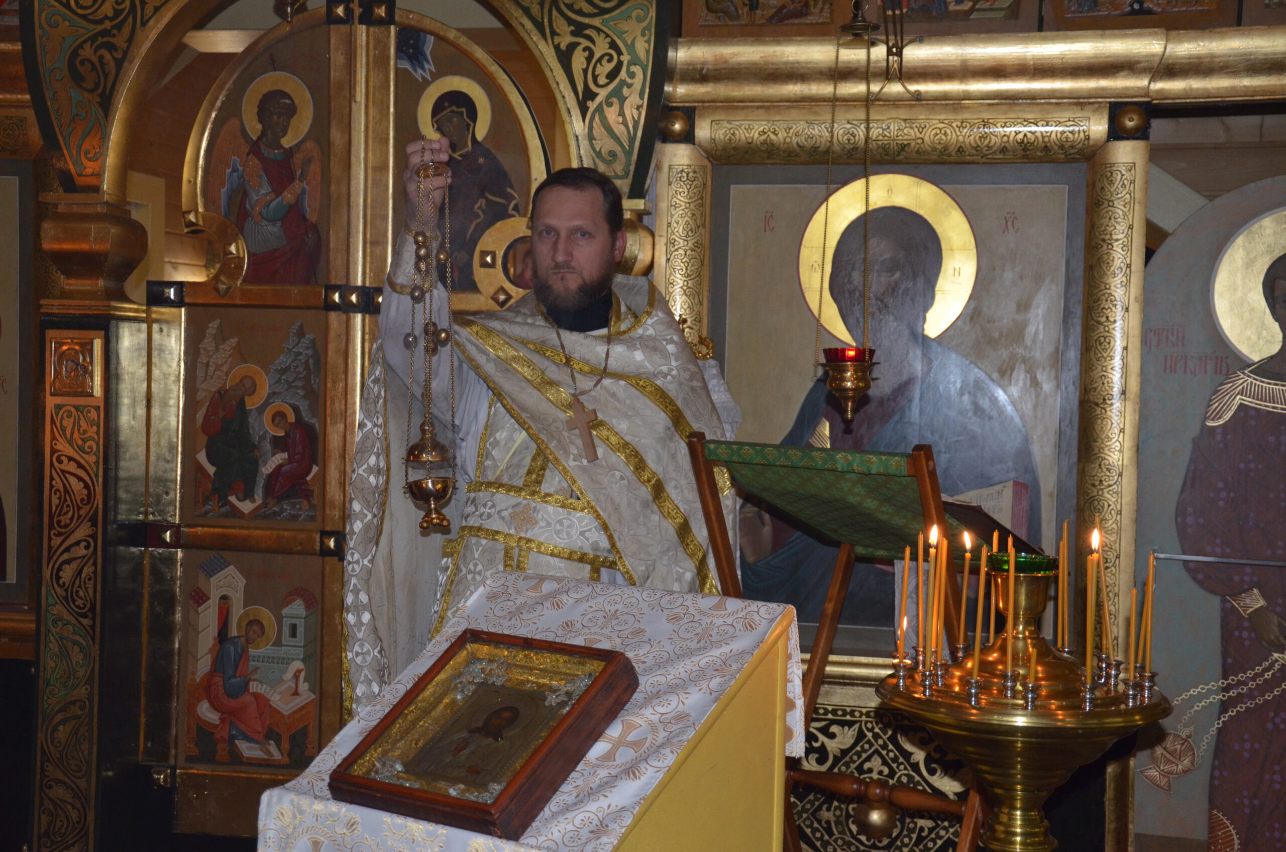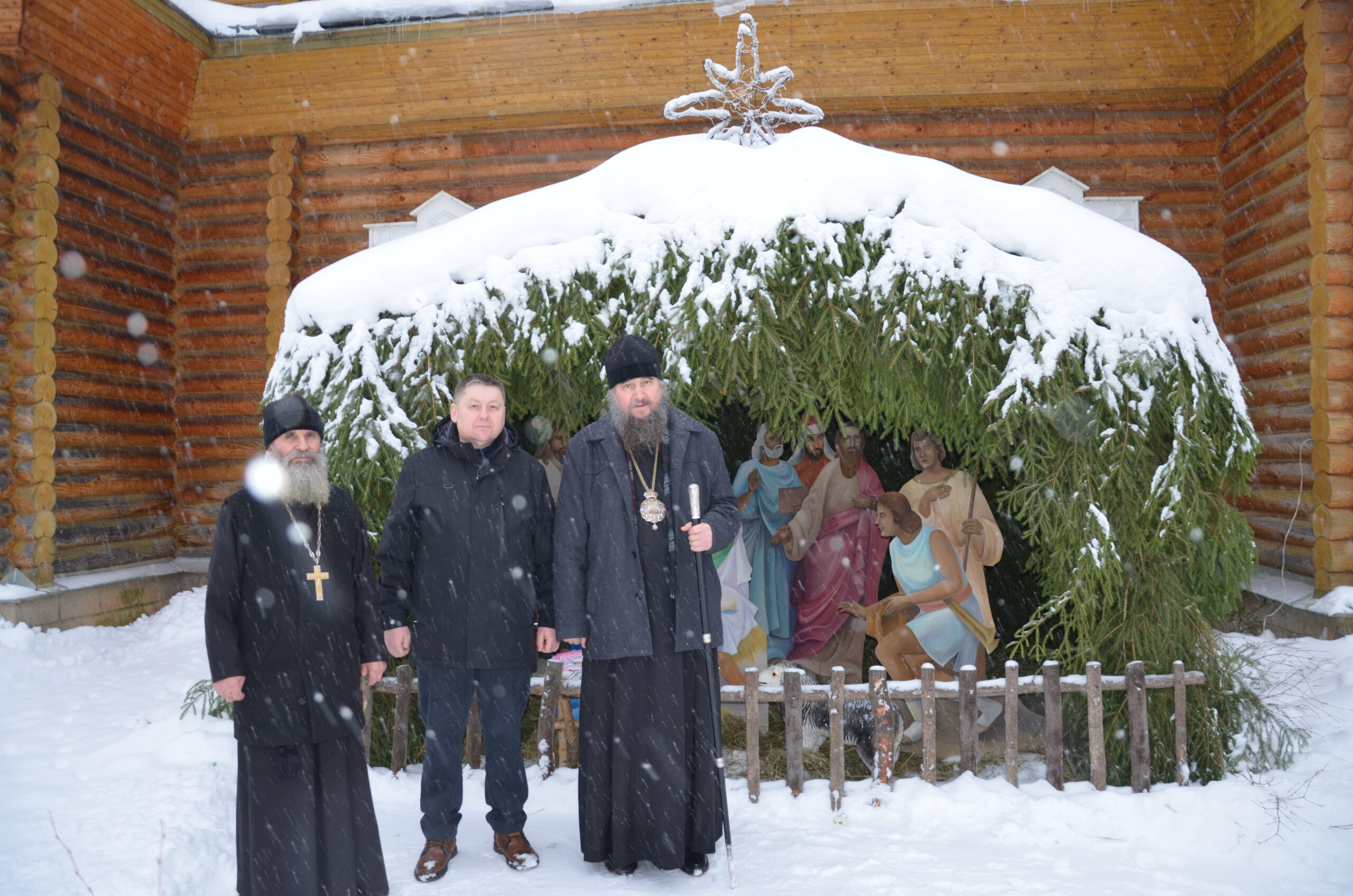 Владыке сослужили: благочинный Тарногского округа протоиерей Николай Кручёных, настоятель храма Агапита Маркушевского в Нюксенице иерей Максим Кривошанов , настоятель храма Богоявления Господня в Городишне иерей Александр Чудинов.